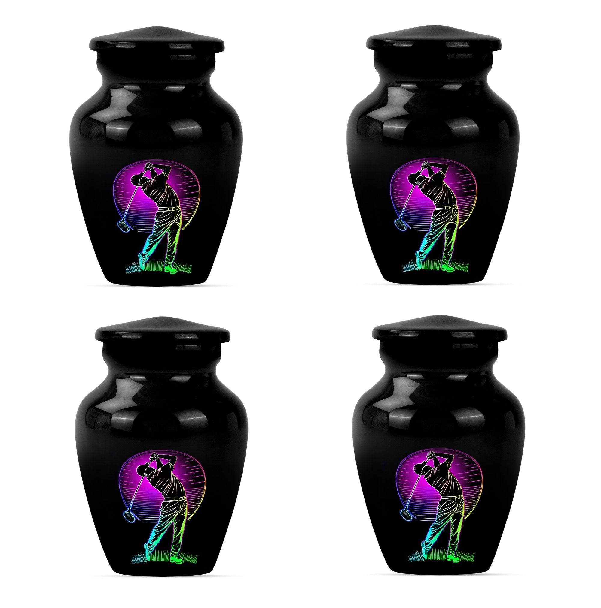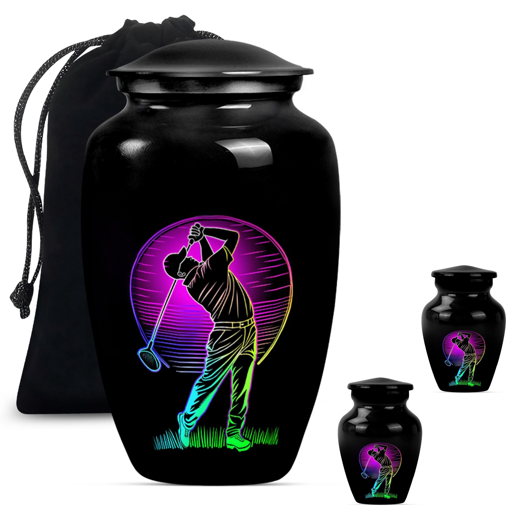 Designed with compassion and meticulous attention to detail, this 'Classic Urn' offers a dignified and beautiful resting place for your beloved one. Built with lasting Aluminium, this 10-inch 'Golf Urn' exhibits a subtle abstract theme, reflecting tranquility and timeless elegance. The urn has a weight of 3.3 pounds and dimensions of a stately 10 inches in height, ensuring an ideal choice for large urns or burial urns for adult women to commemorate their lives. With a capacity of 200 cubic inches, it comfortably houses the ashes, providing a serene embrace in the velvet pouch included. An opportunity to personalize with engraved names adds a unique touch to each urn, making it not only a memorial piece but also a lasting memento. Search for 'memorial urns' or 'large double cremation urn for two adults' to discover this piece. Avoid the mainstream and opt for this stunning, premium-quality piece.