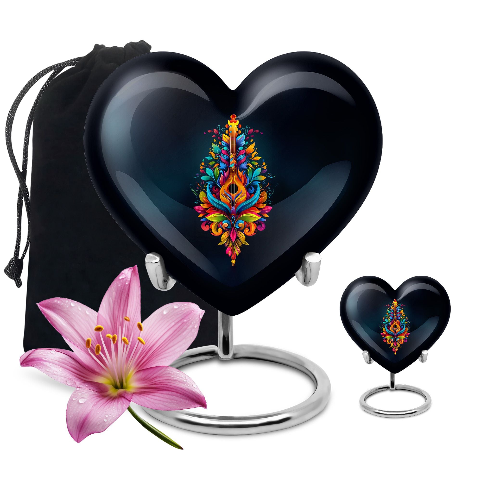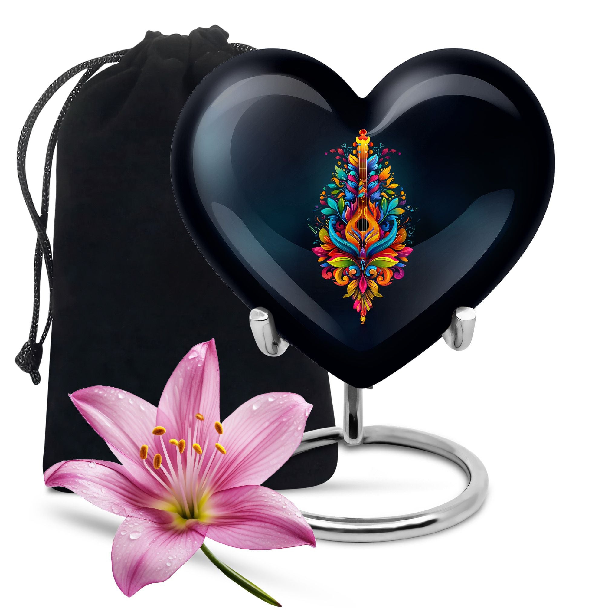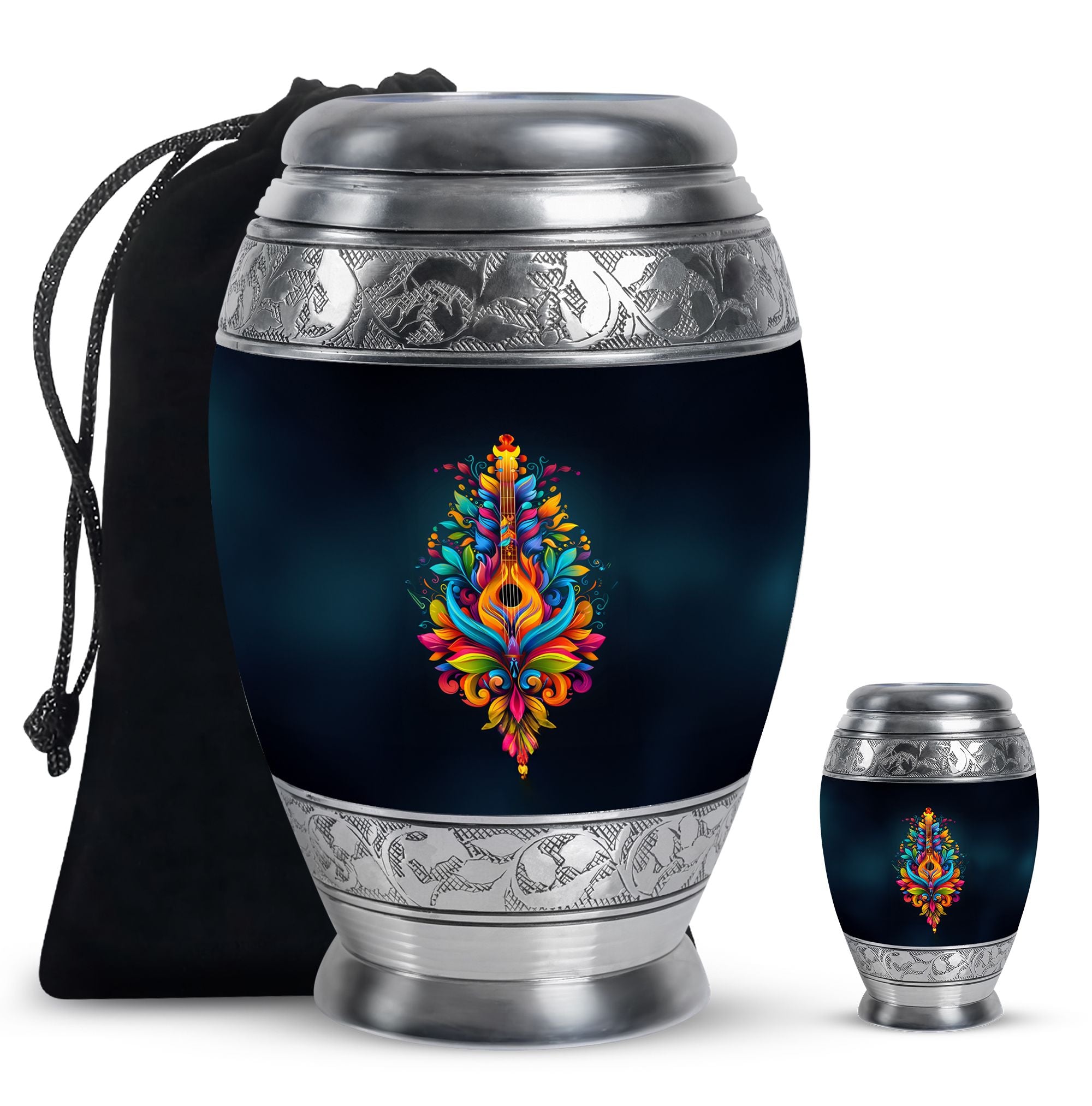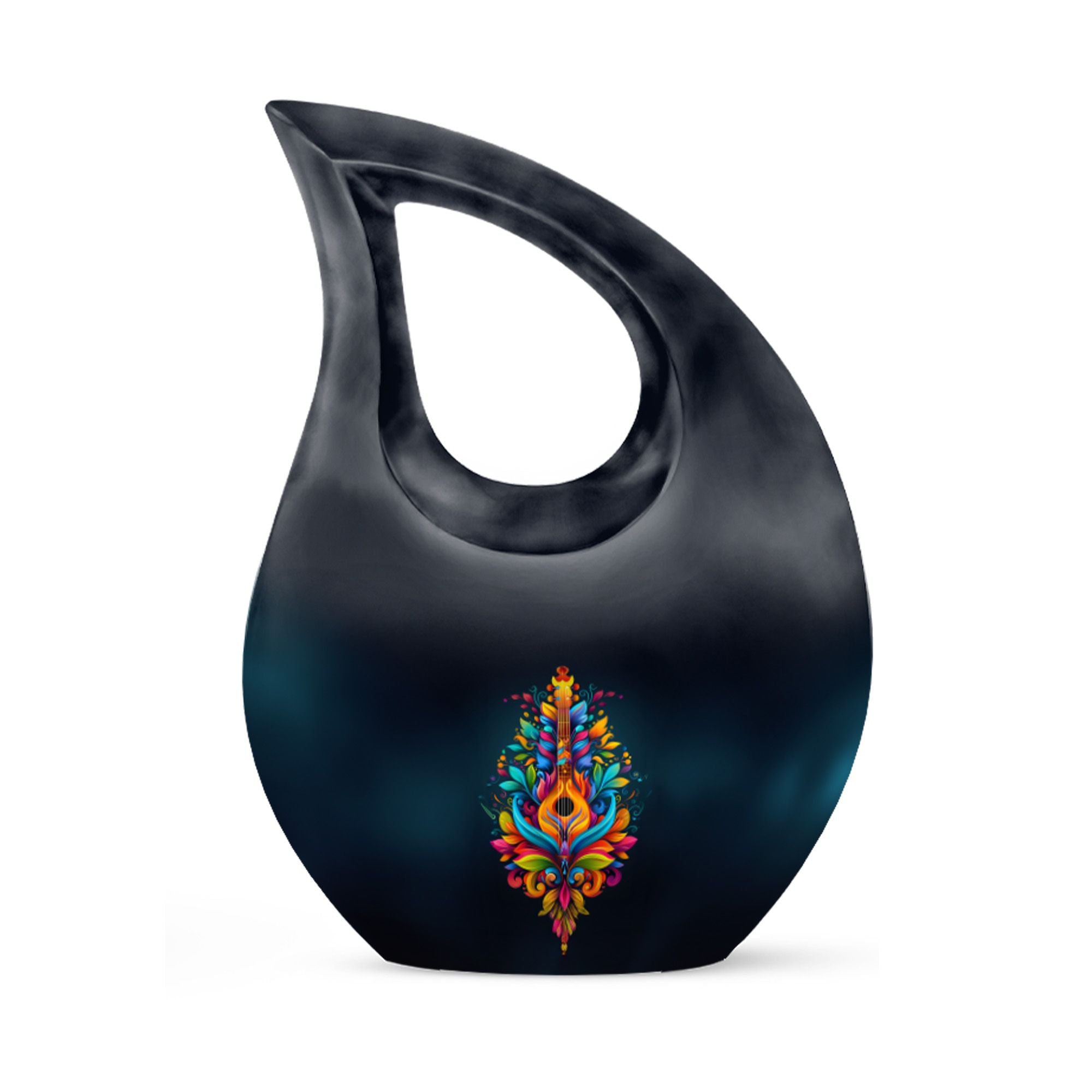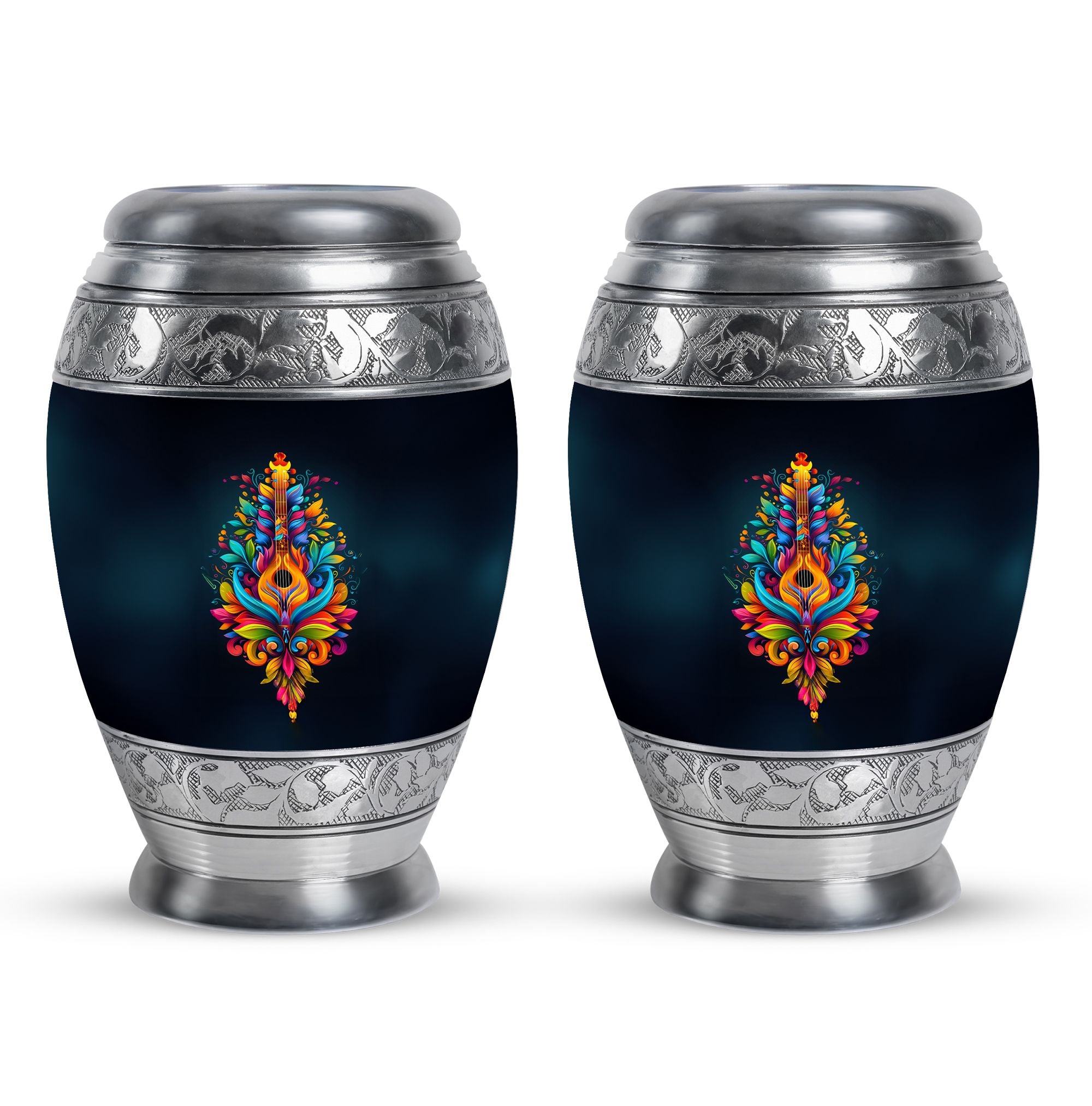 The Guitar Cremation Medium Size Urn – Colorful Artwork Adult Urns Women is a dignified and artistic memorial, ideal for honoring the life of a loved one with music, creativity, and beauty. Designed with a vibrant guitar motif, this urn represents harmony, peace, and cherished memories.