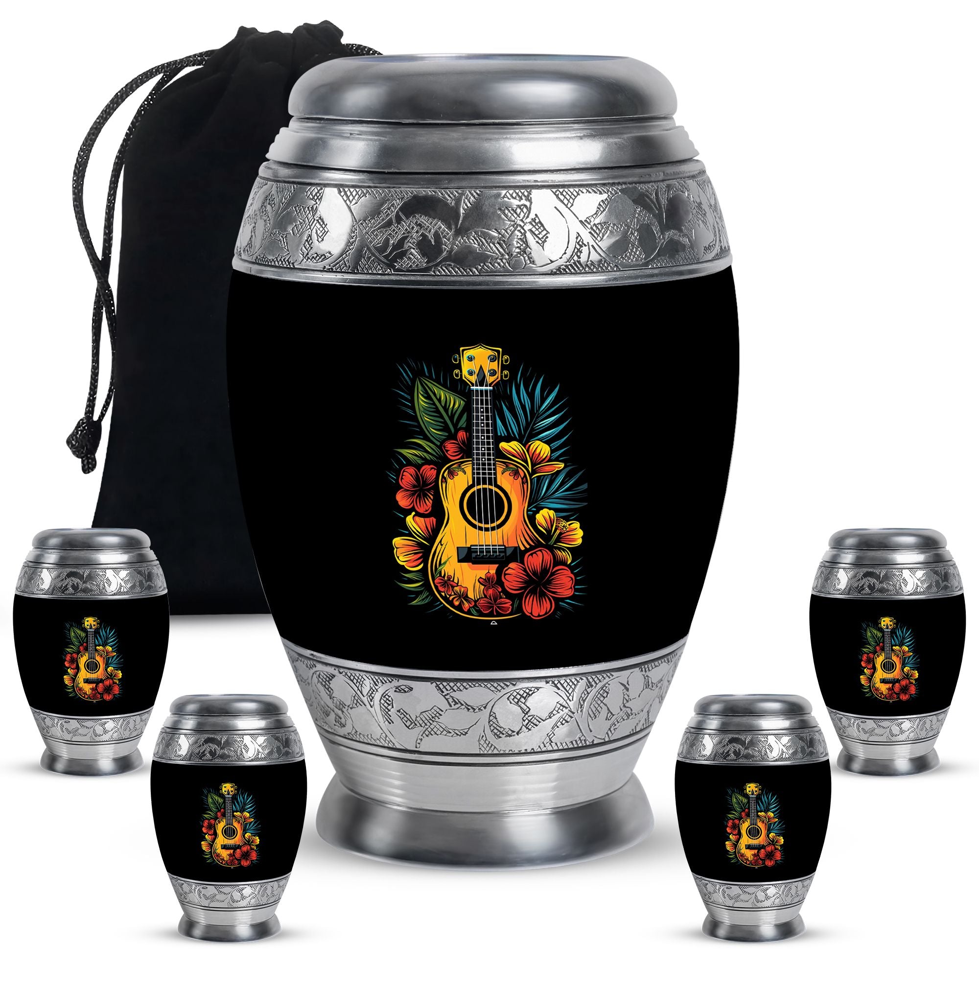 The Guitar Cremation Memorial Urns For Human Ashes – Floral Urns For Adult Female are designed to honor a loved one with grace and individuality. Featuring a beautiful floral guitar motif, these urns provide a touching tribute for those who cherished music and art, while offering families a lasting vessel of remembrance.