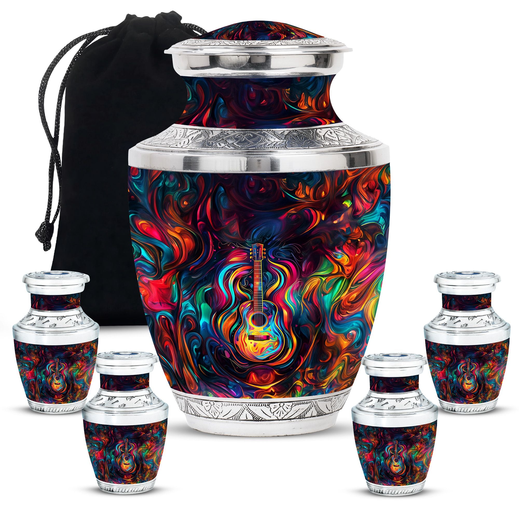 The Guitar Cremation Mini Keepsake Urns – Colorful Artistic Funeral Urn is a heartfelt tribute for those who lived with passion and harmony. Designed with a vibrant artistic guitar motif, this urn symbolizes the rhythm of life, creativity, and everlasting love.