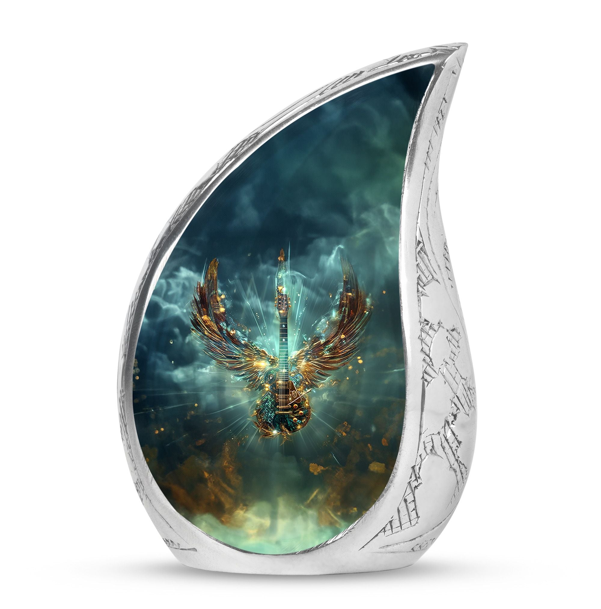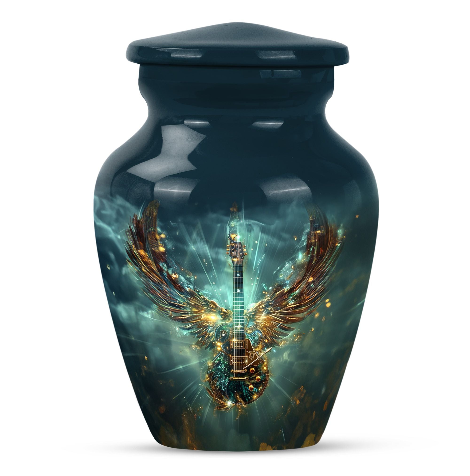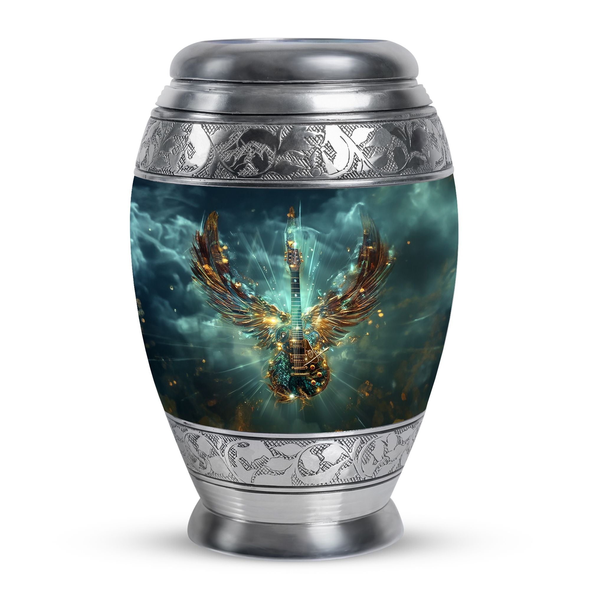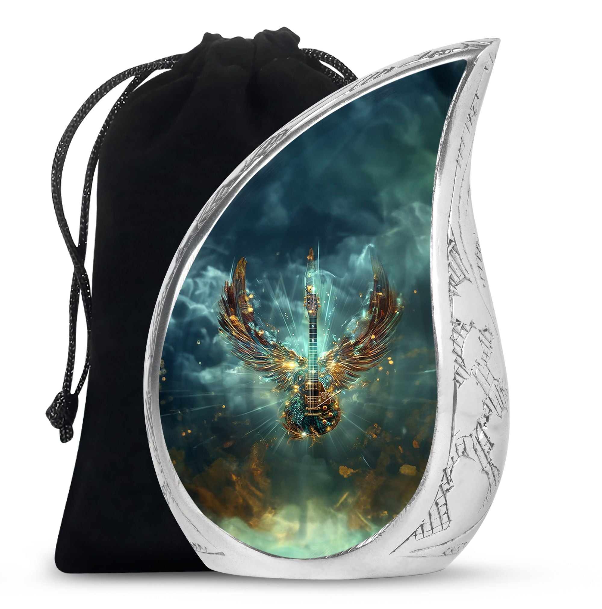 Whether placed at home, in a columbarium, or chosen as a burial urn, the Guitar Wings Urn serves as a lasting memorial of music, hope, and love.