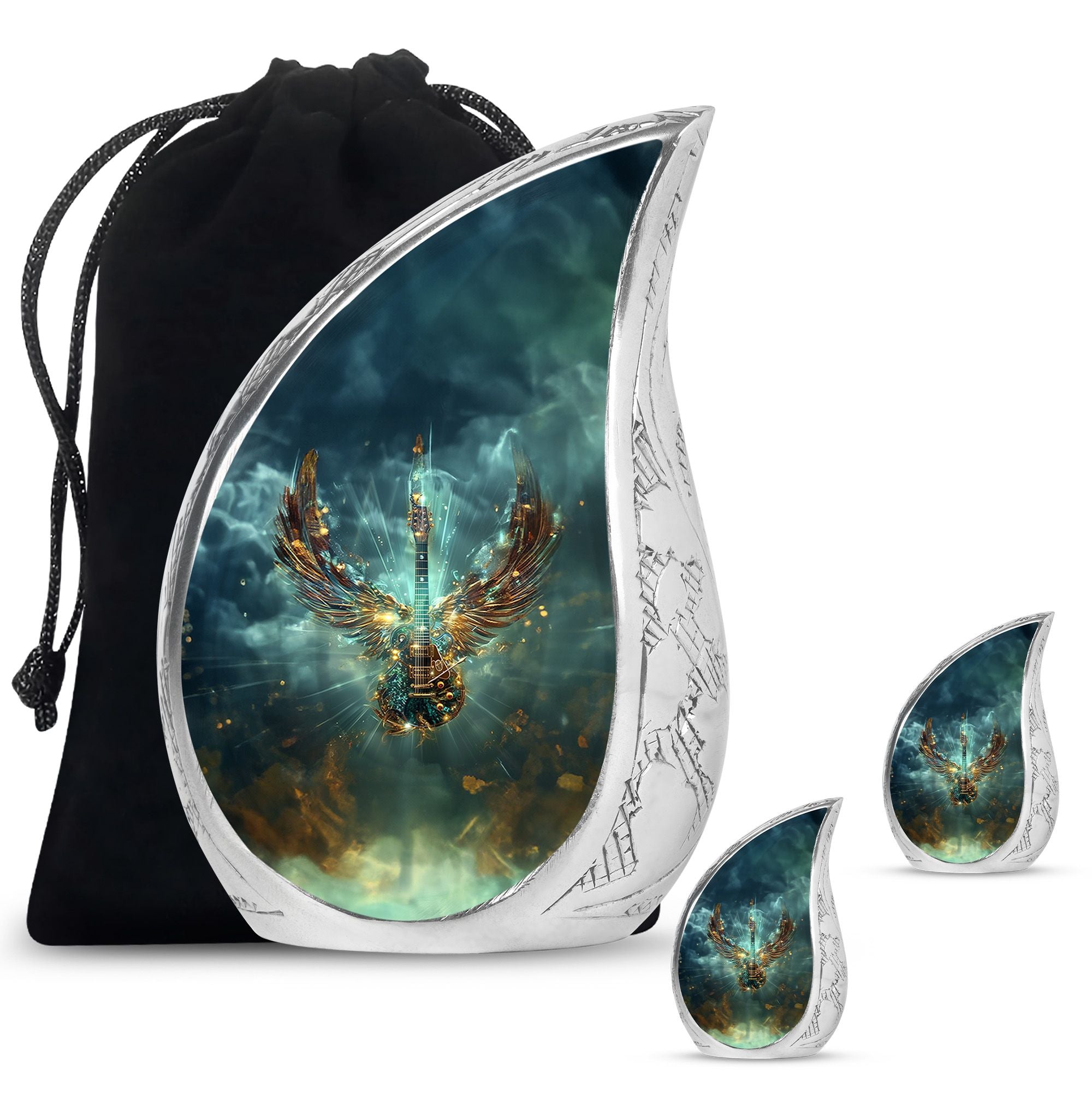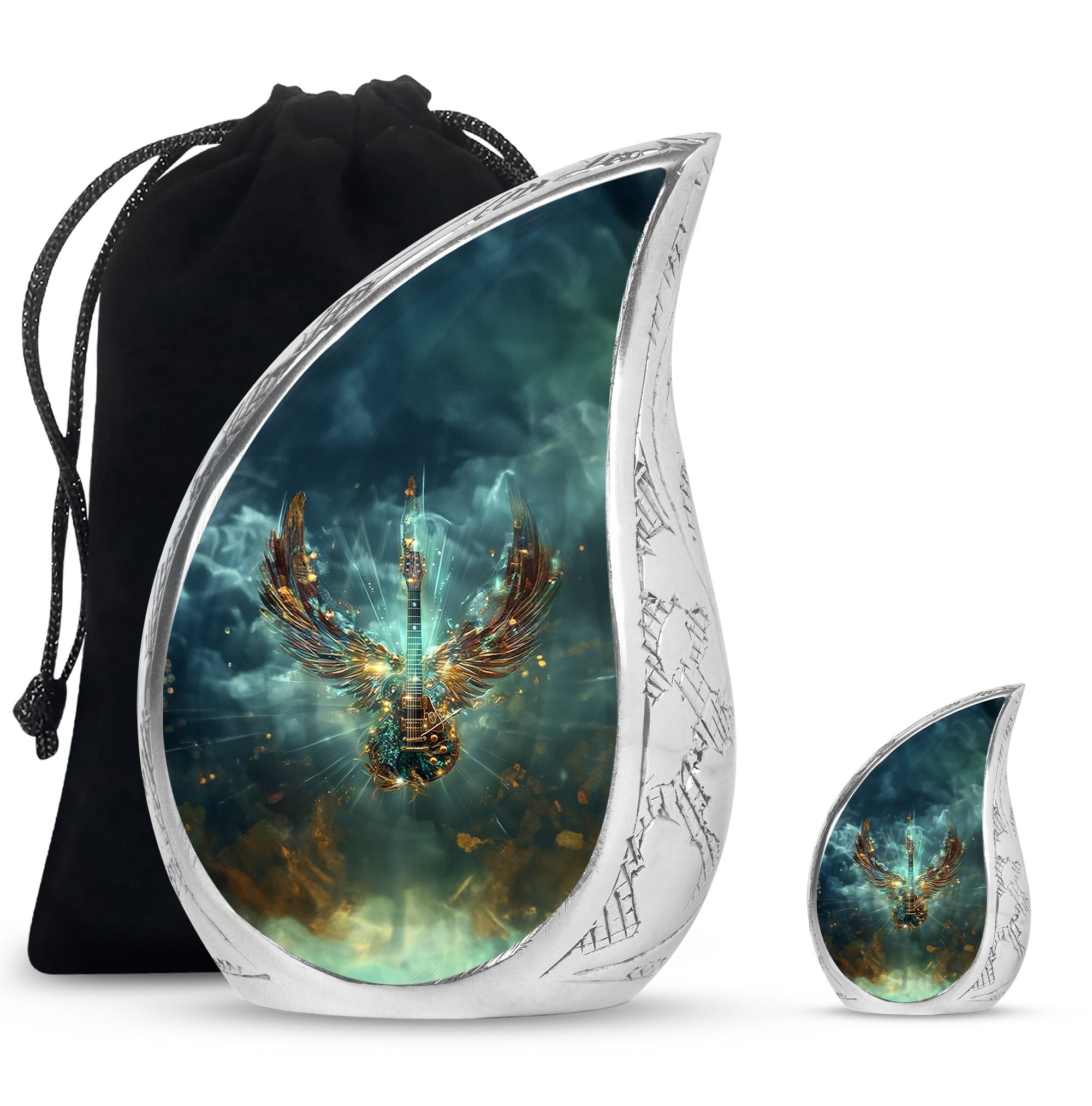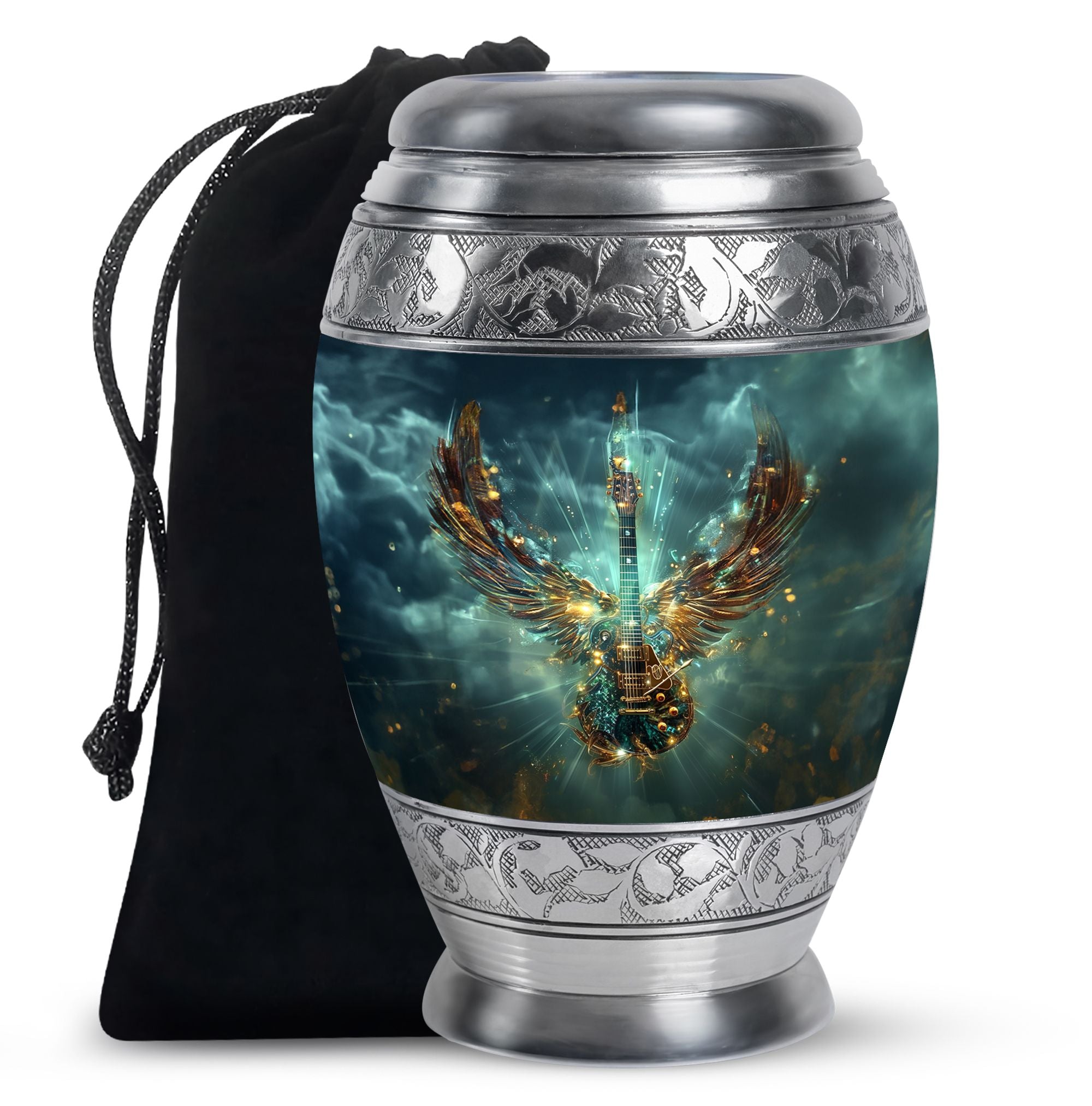 Whether placed at home, in a columbarium, or chosen as a burial urn, the Guitar Wings Urn serves as a lasting memorial of music, hope, and love.