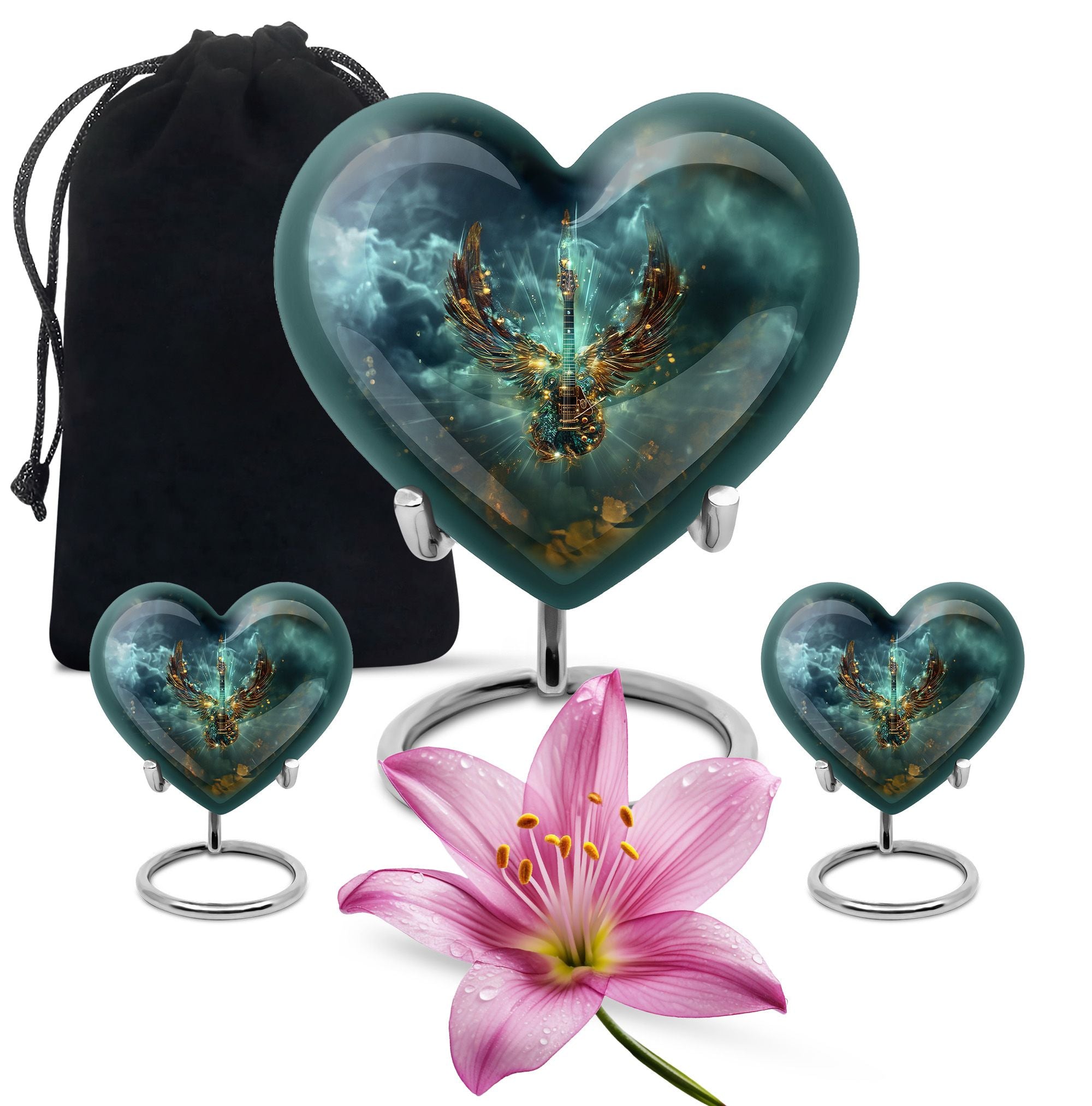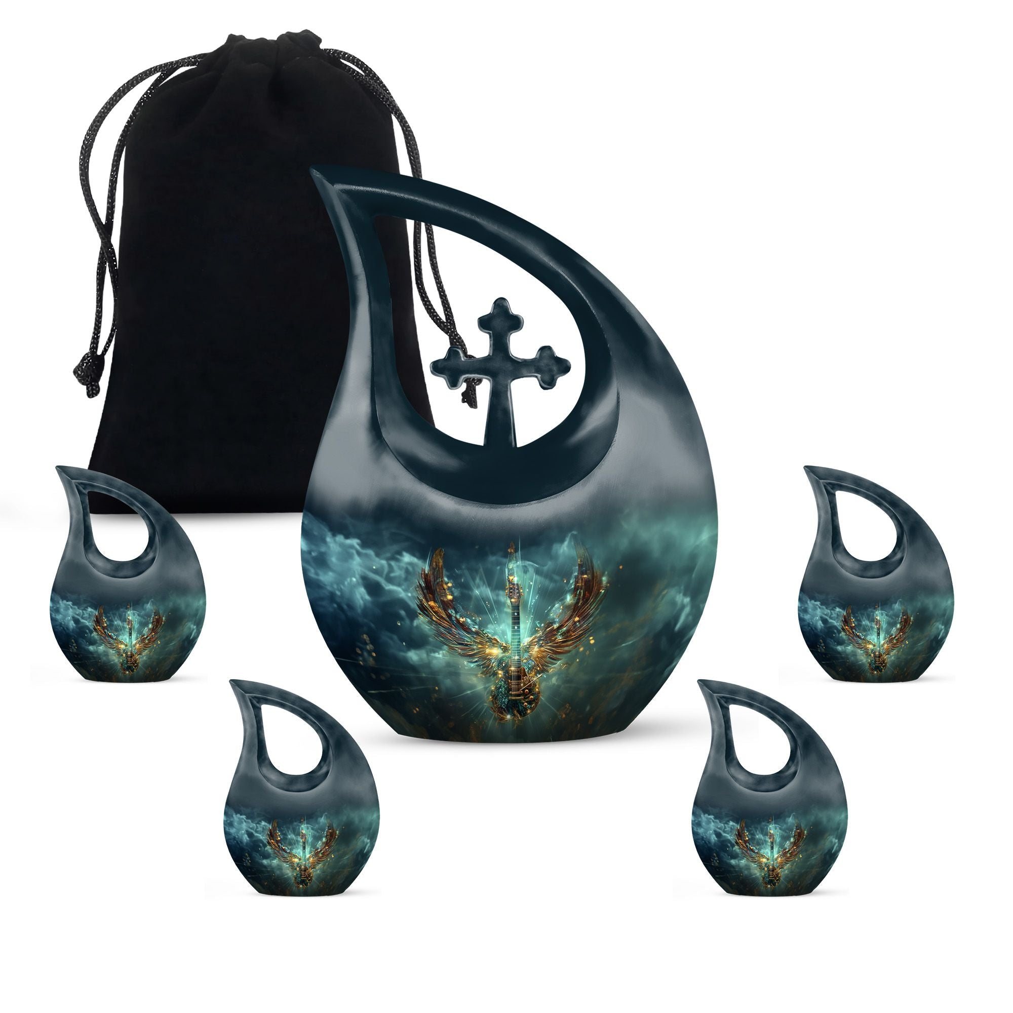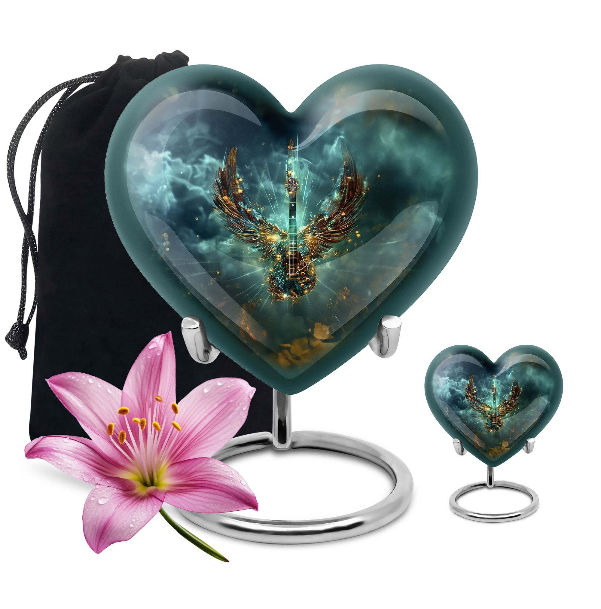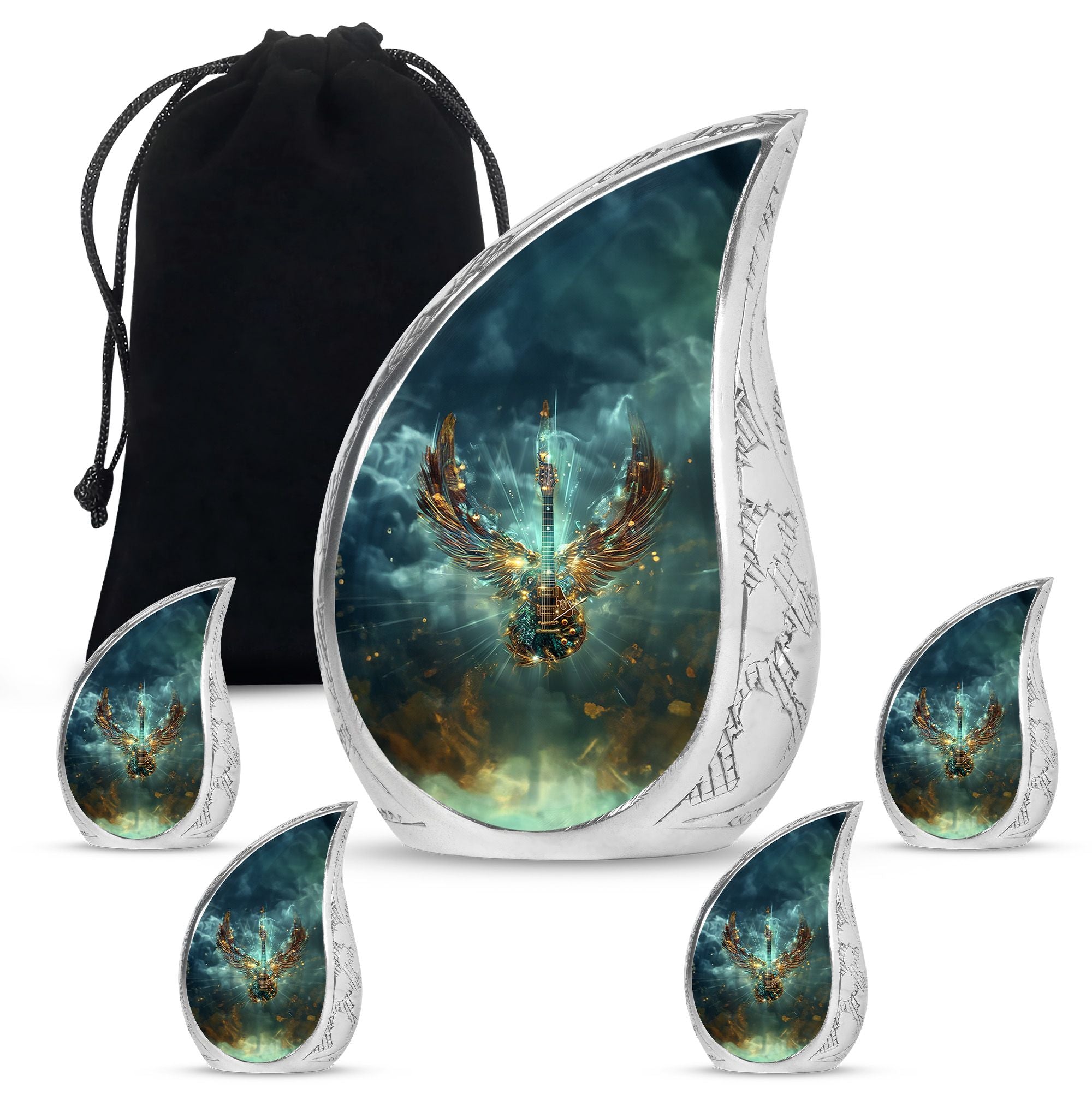 Whether placed at home, in a columbarium, or chosen as a burial urn, the Guitar Wings Urn serves as a lasting memorial of music, hope, and love.