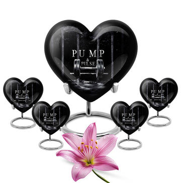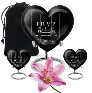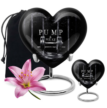 Add a touch of reverence to your memorial ceremony supplies with our remembrance 'Dumbles Urn'. Crafted meticulously from durable aluminium, this cremation medium urn is designed for lasting endurance. Its generous size measures 10 inches in height and can hold up to a substantial 200 cubic inches in capacity. Weighing at a solid 3.3 pounds, this burial urn for adult ashes conveys stability and prestige. For added convenience, it comes with a silky velvet pouch, posing as a dignified containment for ashes. The standout feature of the 'Heart Urn' allows you to personalize it with engraved names, making this an intimate and sentimental choice for both adult male and female ashes. As part of our large urns collection, the 'Dumbles Urn' seamlessly combines tradition with a contemporary edge. Unlike common memorial urns, this selection speaks volumes about your distinctive choice and profound emotions.