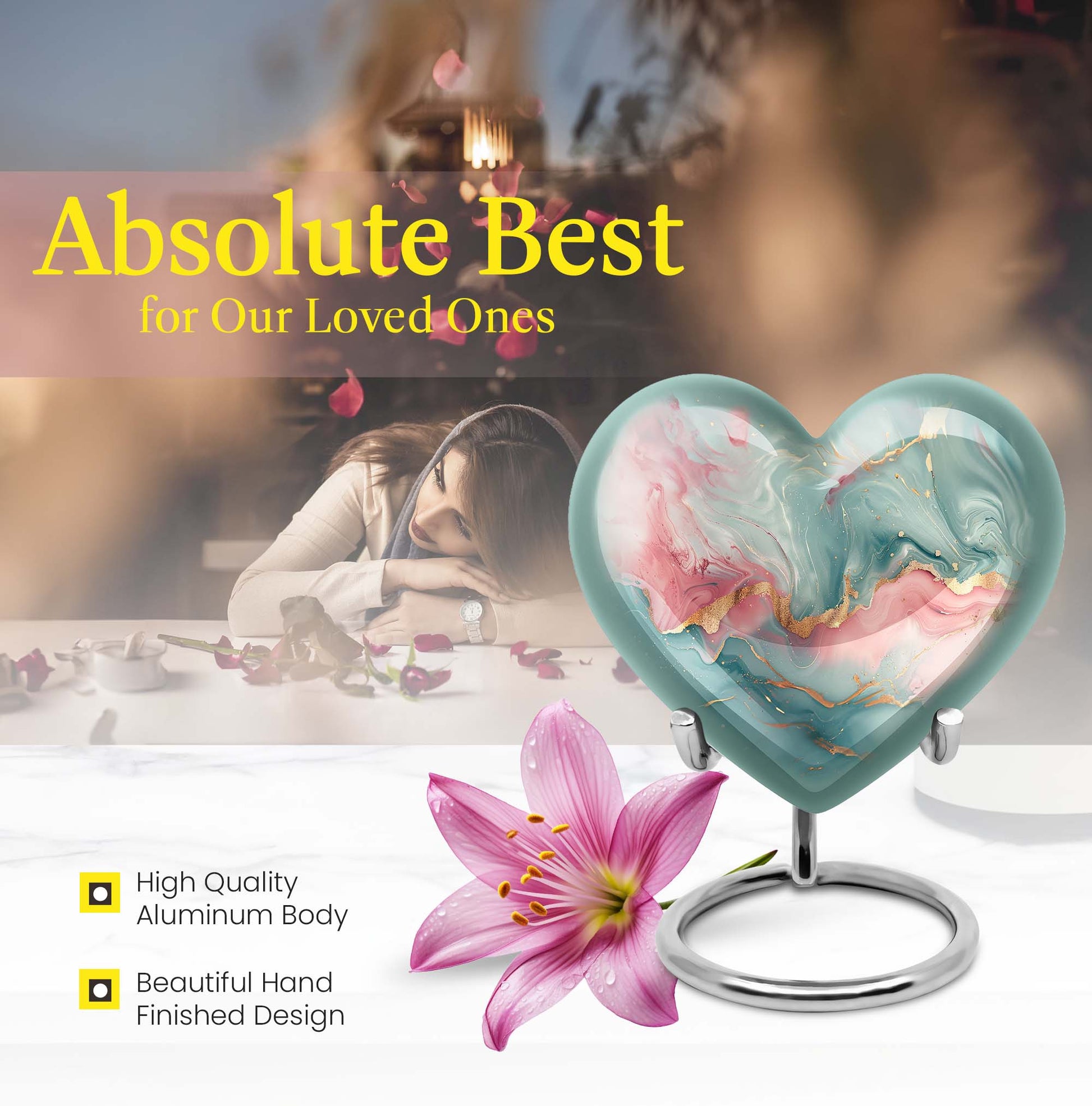 Discover the heartfelt way to cherish your dearly departed with our Abstract Urn. This singular, 10-inch cremation urn, specifically suited for adult males, offers a sensitive and beautiful way to preserve the memories of your loved ones. Weighing at 3.3 pounds, this large urn manifests a sense of robust durability and permanence, perfect for safeguarding the ashes of your loved one. The urn's materials are meticulously crafted from aluminium, ensuring its longevity and stability whether it is for burial in-ground or to be kept securely at home. Boasting a capacity of 200 cubic inches, the urn is accompanied by a soft velvet pouch for effortless containment of ashes. Moreover, customization options are available, allowing for personalization such as engraved names - adding an intimate touch to the urn. Whether you're looking for burial urns for men or women ashes, considering a funeral metal urn, or interested in a large urn for adults, our Abstract Urn meets all your needs with sincerity and elegance.