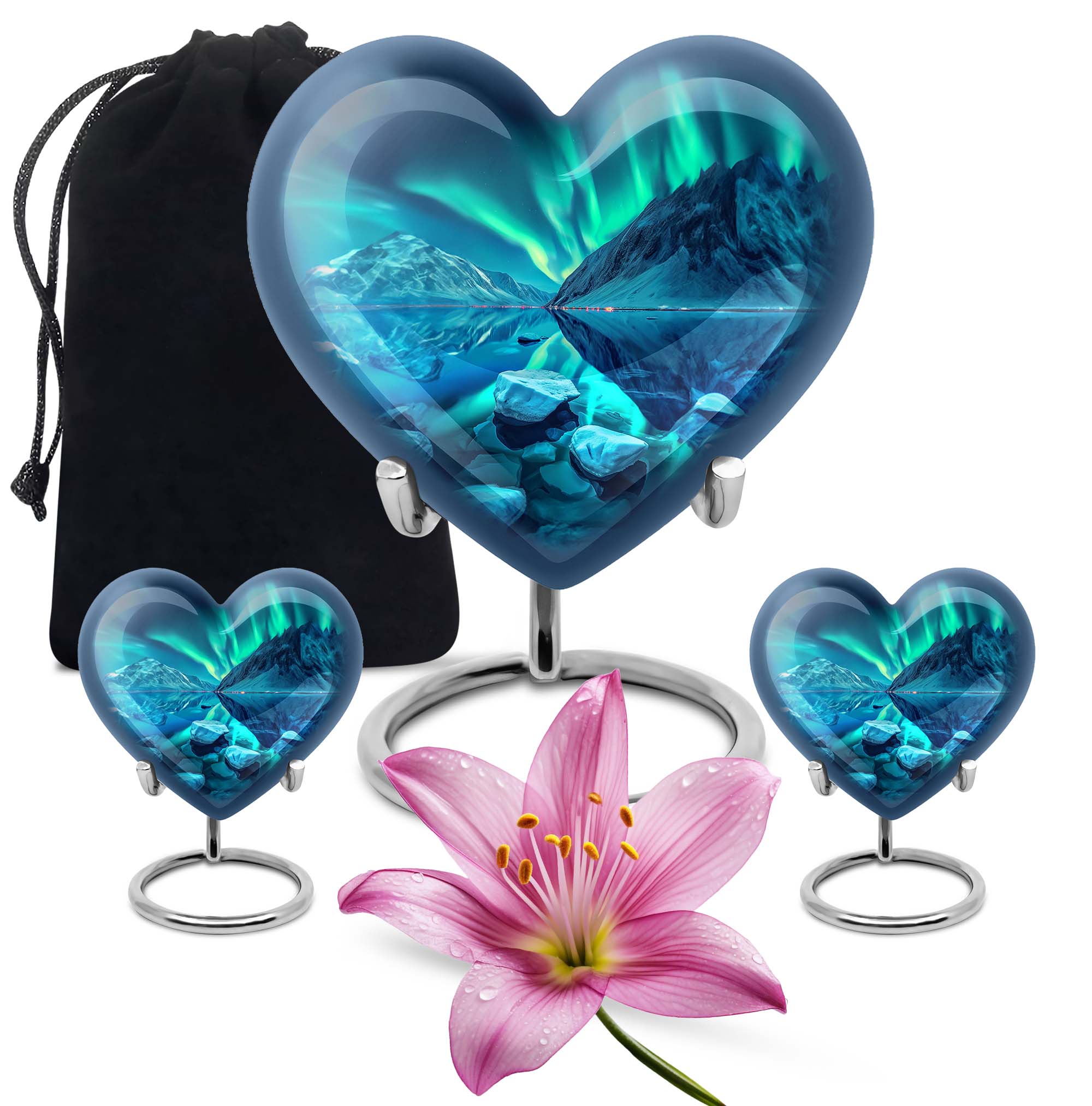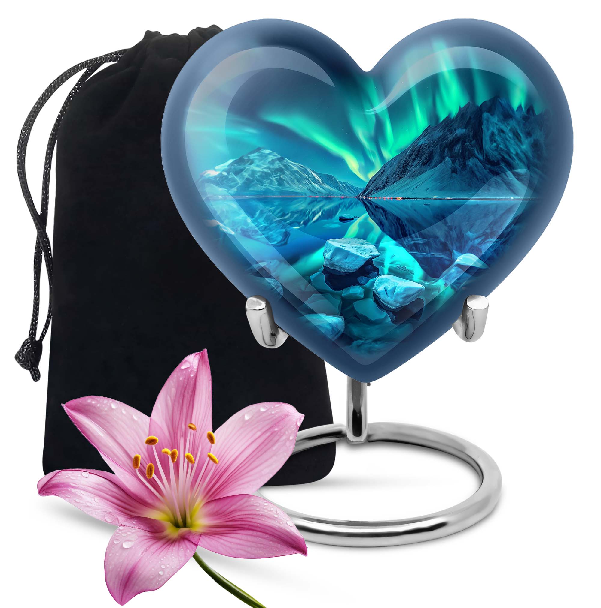 Elevate your memorials with the AURORA Urn, an exquisite and sentimental large cremation urn designed to honor loved ones. With an abstract theme mirroring the complexities of love and life, this urn is not just a container but a symbol of remembrance and respect. Made from high-quality aluminium, it boasts durability and a timeless aesthetic appeal. Its 10-inch stature and weight of 3.3 pounds bestow just the right heft and prominence, symbolic of the significant role the departed soul played in your life. This memorial urn has a capacity of 200 cubic inches, providing ample containment for ashes. The package includes a velvet pouch for tasteful and discreet storage. Offering an option for personalization, this urn can be engraved with the name of your loved one, adding a unique final touch. Ideal for memorial, burial ceremonies, or as a poignant keepsake, the AURORA urn offers a fitting homage and a memorable tribute.