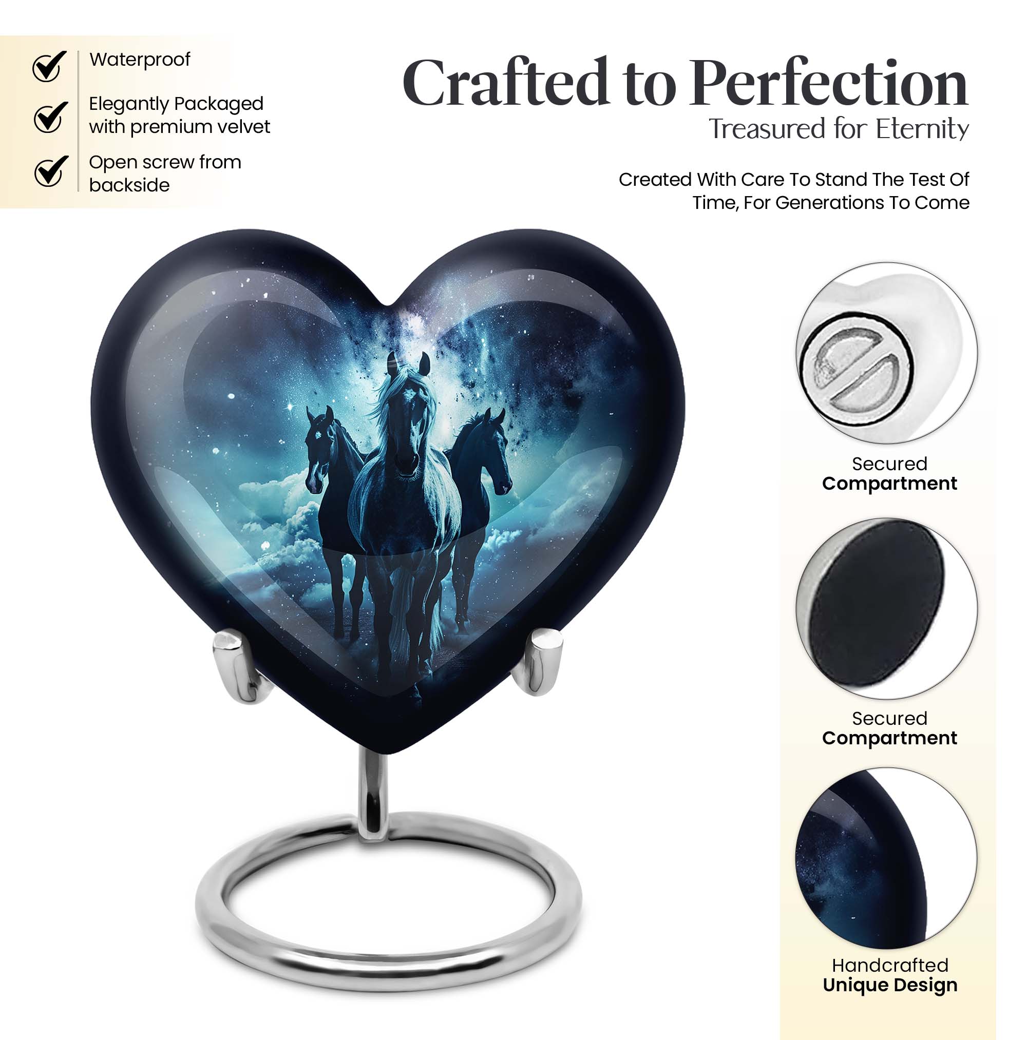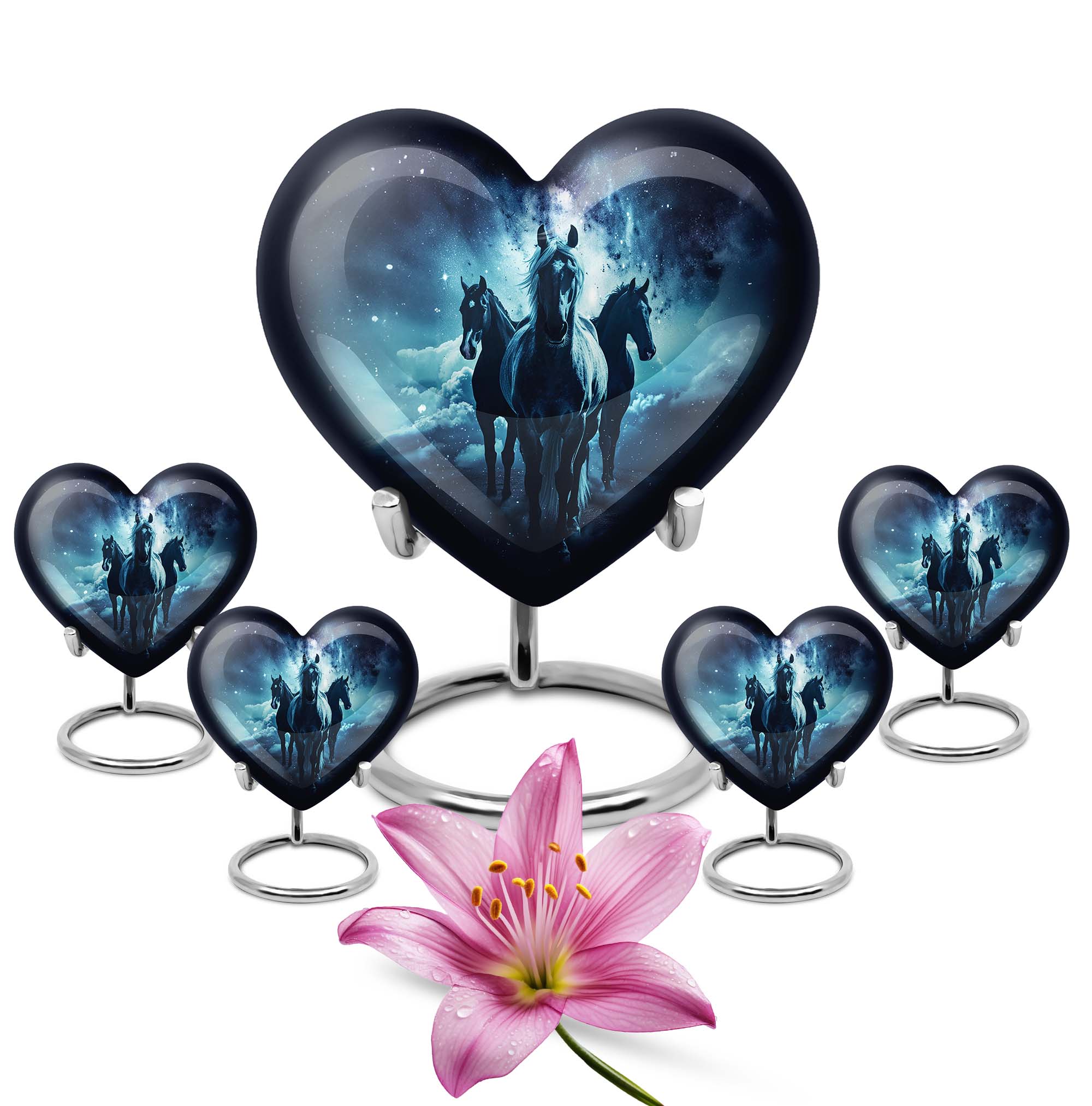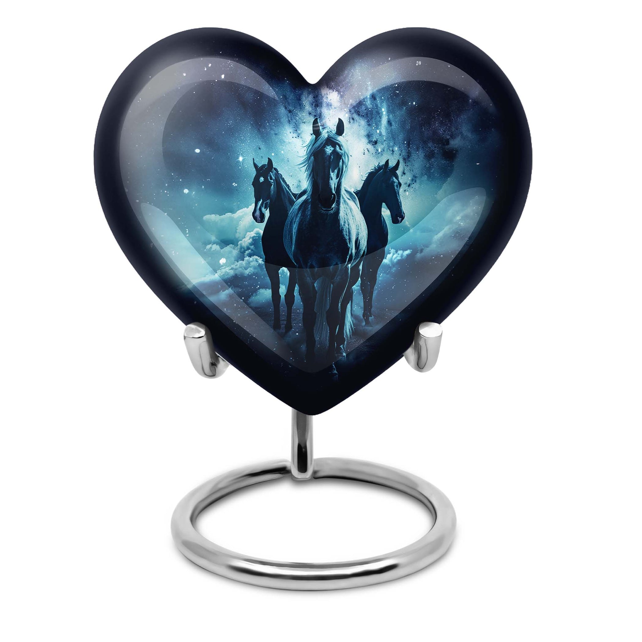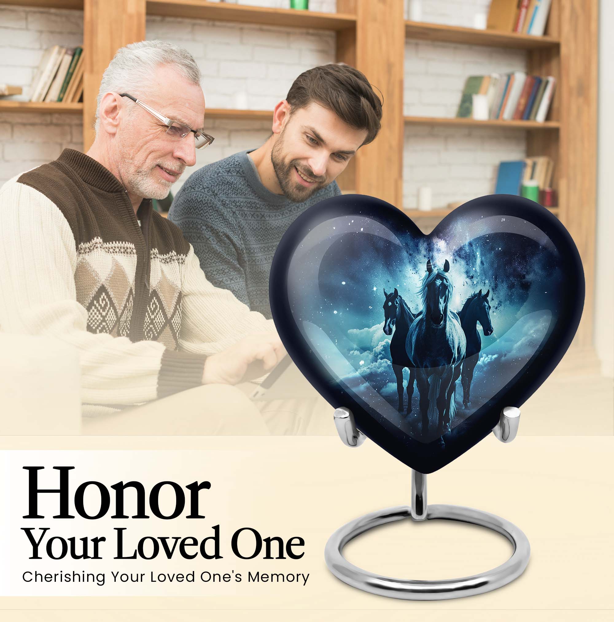 Commemorate your loved one with this unique, abstract-themed Horse Urn that speaks to the heart. This large urn, with a tasteful abstract theme, meticulously crafted from robust aluminium, stands 10 inches tall and possesses a notable capacity of 200 cubic inches - a fitting receptacle for memorial ashes. Weighing at a substantial 3.3 pounds, it's a tangible testament to the presence your loved one had in your life. Sized at perfection, this 10-Inch Cremation Urn promises to safely harbor the ashes, with a complimentary velvet pouch that provides an additional layer of containment. Offering personal touch, add engraved names to customize the urn and make it uniquely yours. Search phrases such as 'Funeral Urn for Men's ashes, Adult Ashes Men, Elegant Urns, Memorial Urns,' make this item particularly easy to locate. Honor your beloved with an urn that resonates with the love held for them.