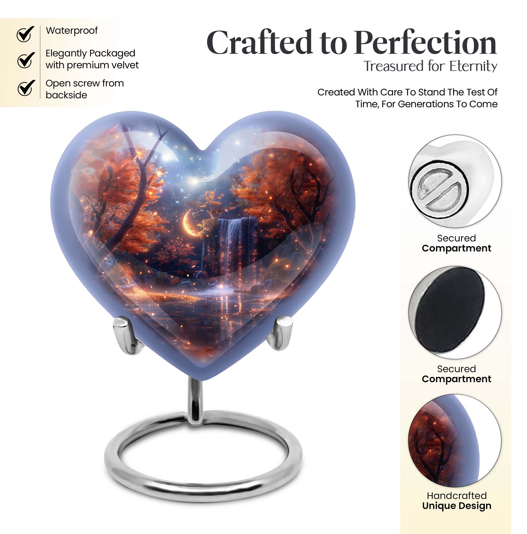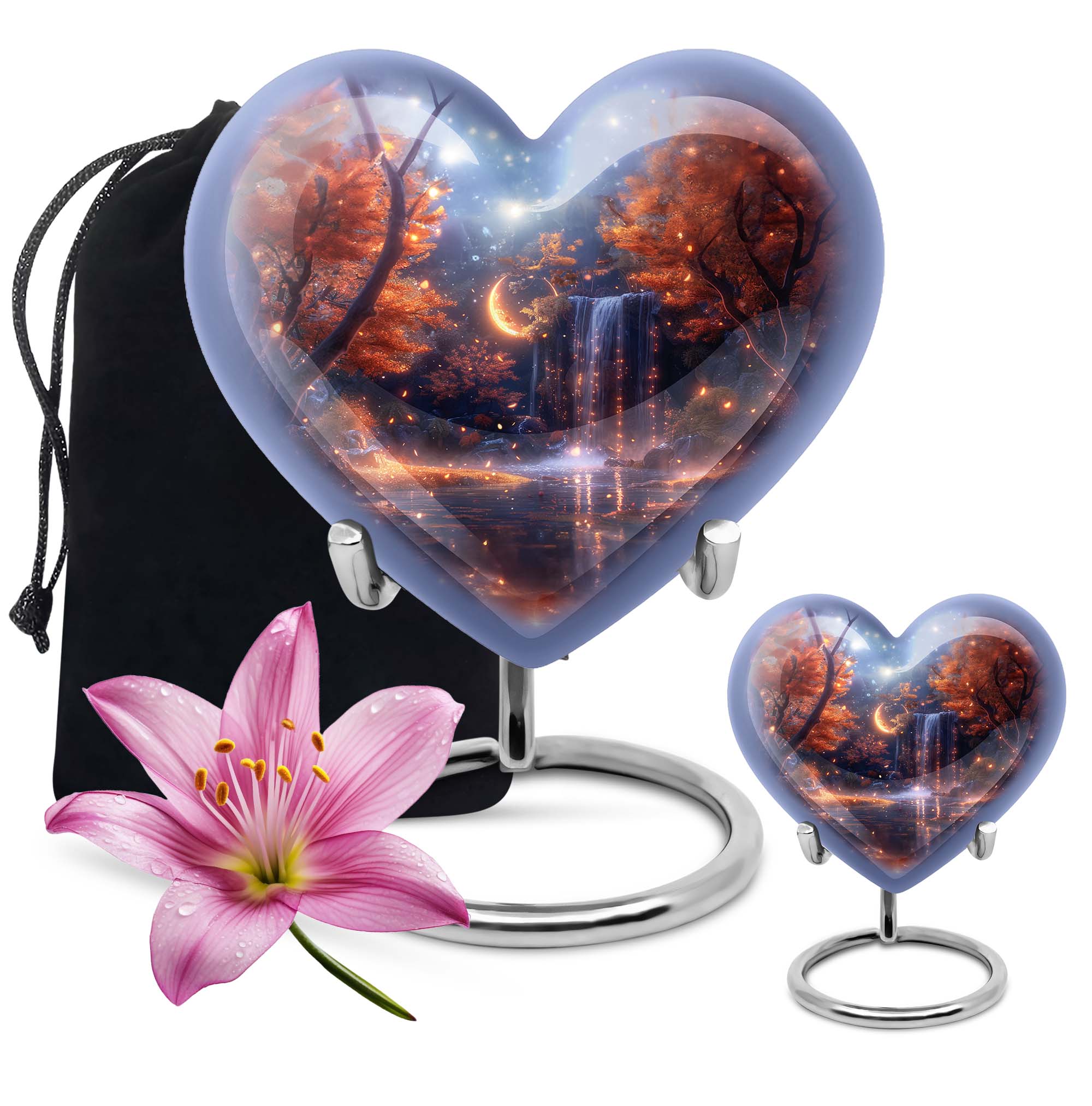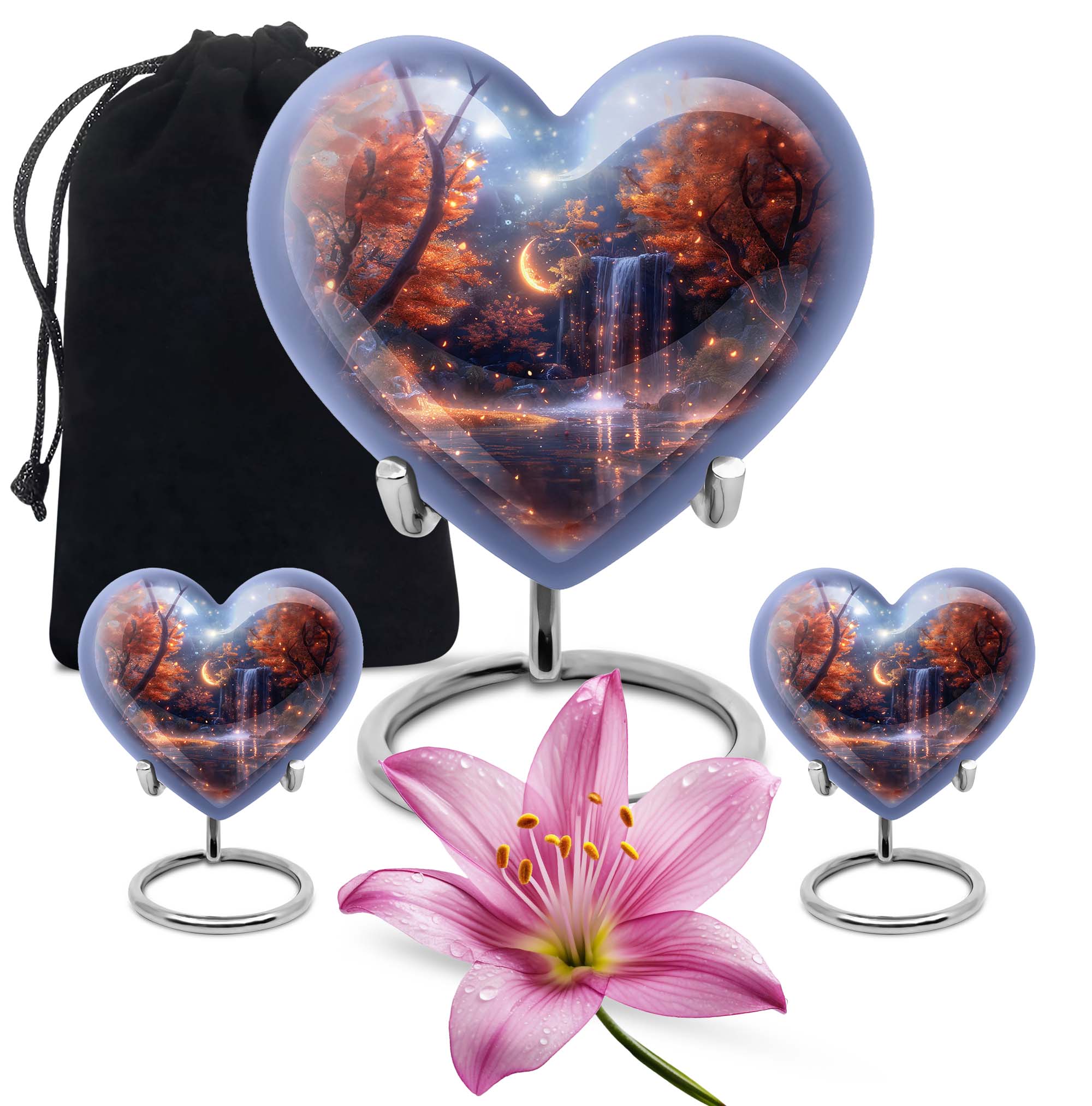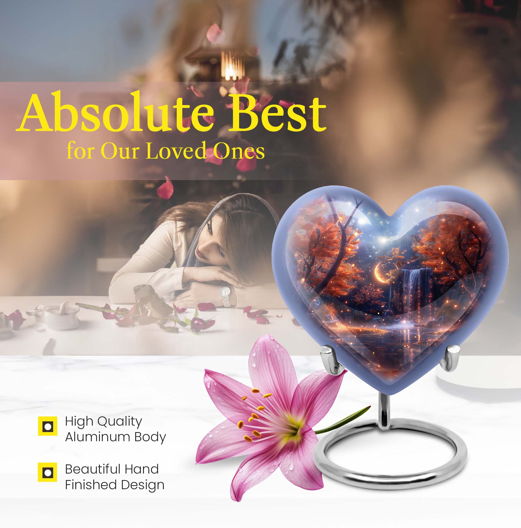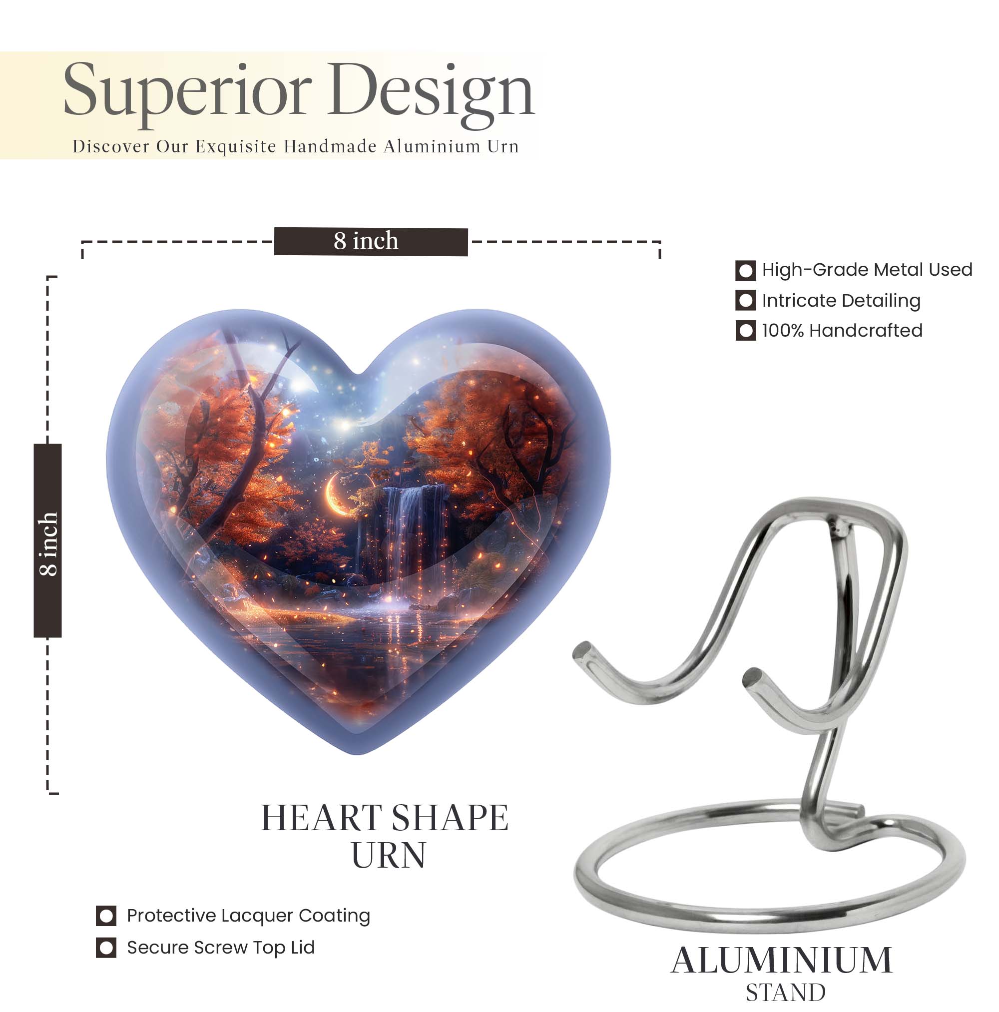 Cherish the final tribute to your loved ones with the artistic Lunar Urn, a masterful blend of abstract and heart-warming design, carved explicitly in the solemn memorial category. This 10-inch, large-size aluminium urn is sturdy and weighs 3.3 pounds. Its 200-cubic inch capacity can compassionately hold the ashes of your dear ones. This piece of art stands out in the crowd of memorial funeral urns for ashes, adding elegance to an unforgettable remembrance. The package includes a velvet pouch for the containment of ashes, ensuring the preservation of integrity in a dignified manner. Make it even more personal by engraving names on it, subtly remembering the person it is dedicated to. Whether it's for your mother or father, the Lunar Urn ensures a serene, unique remembrance. Perfect for those searching for memorial urns, funeral unique urns or decorative urns for human ashes.