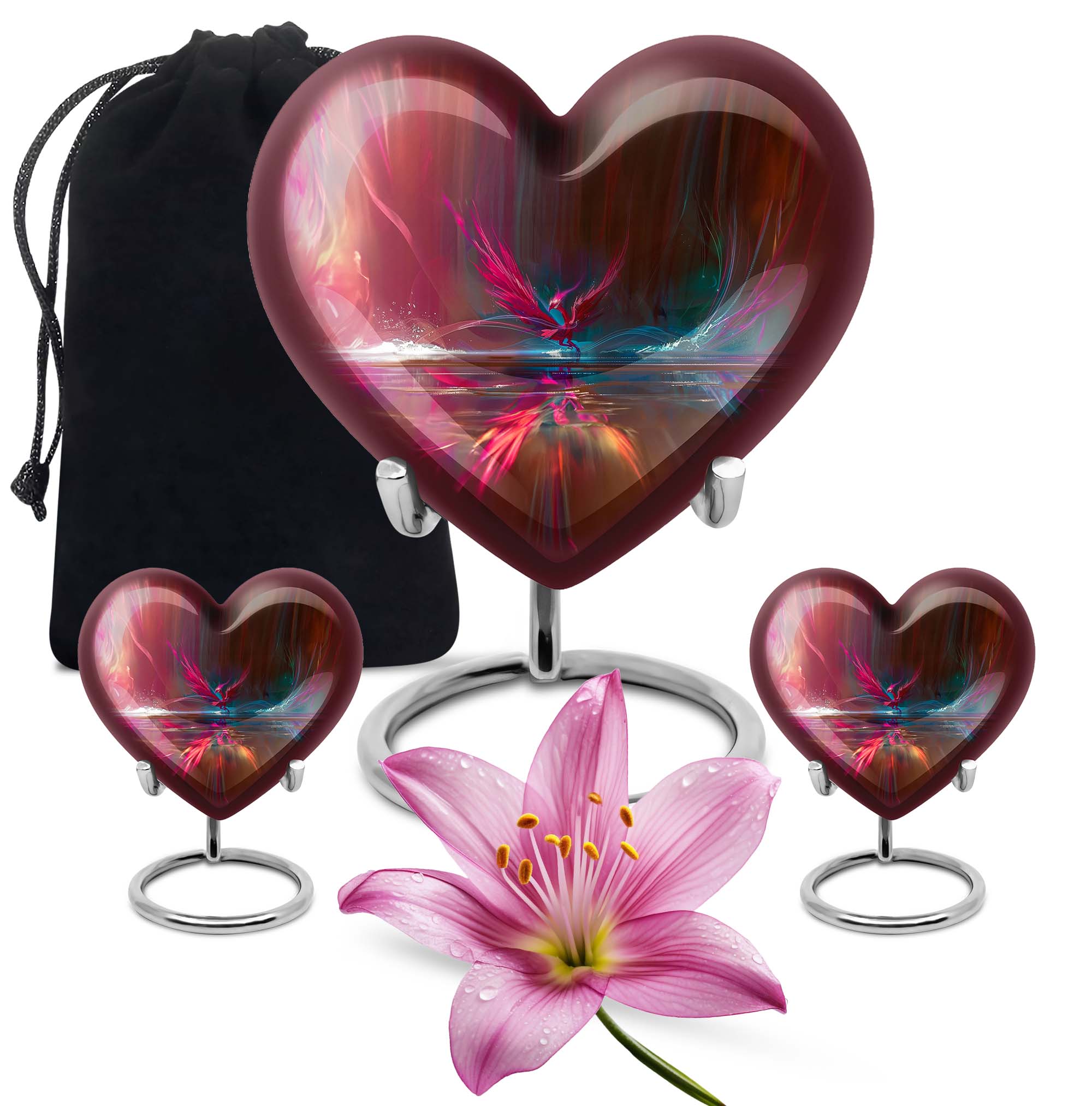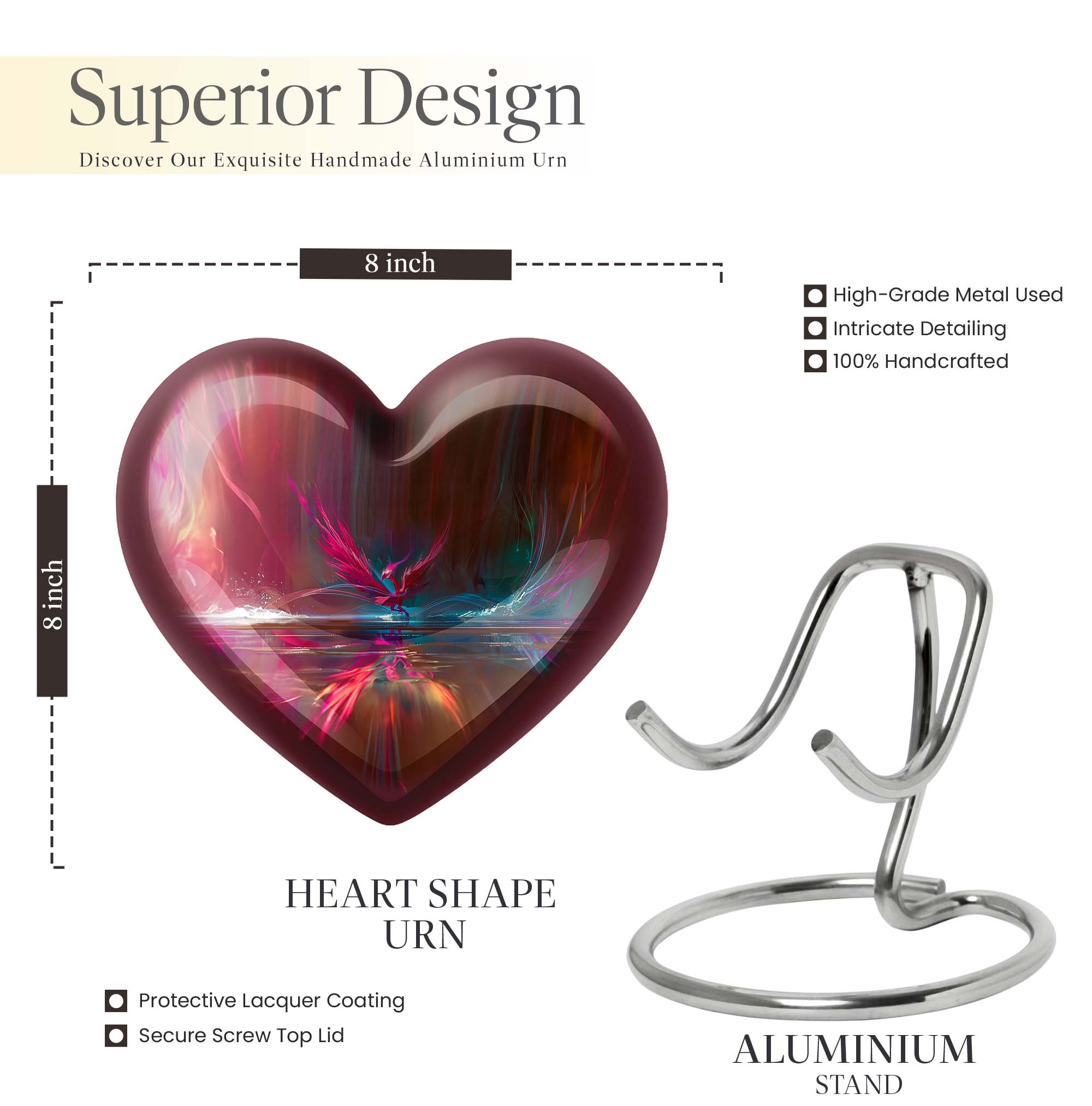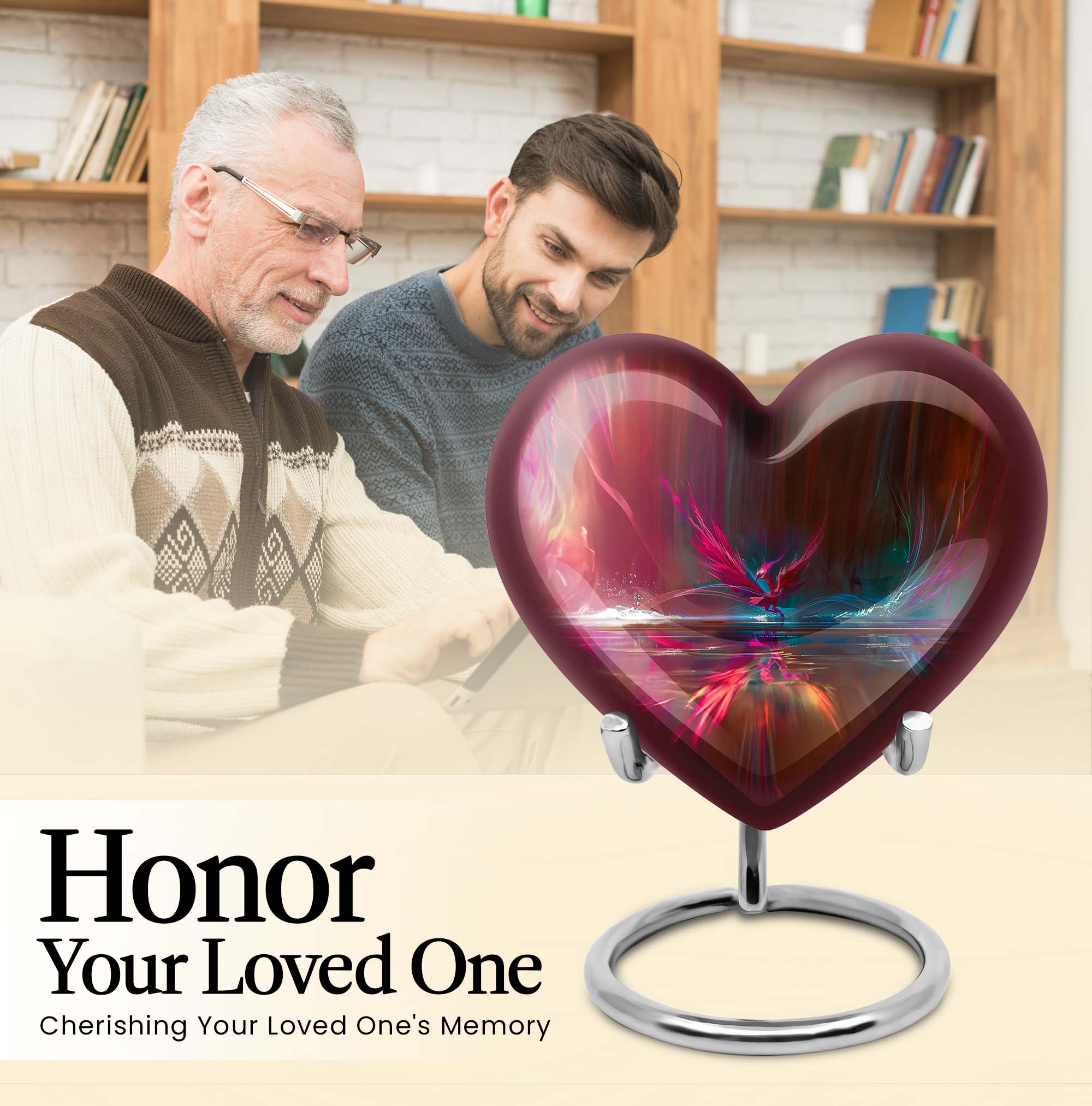 Embodying a unique fusion of heartfelt sentiment and artful craftsmanship, this phoenix urn serves as a touching tribute to commemorate beloved family and friends. This large, aluminium cremation urn for ashes, especially appropriate for adult males, displays abstract theme which exudes a serene aura and profound respect. At a size substantial of 10 inches with a weight of just 3.3 pounds, it has an impressive capacity of 200 cubic inches, testament to its profound purpose and function. You can also personalize this phoenix urn with engraved names, adding a customized touch. Along with the urn, the package comes with a velvet pouch, providing a dignified containment for the ashes that can be easily transported during travels, adding a touch of convenience. Whether you're searching for 'memorial urns' or 'urns for male', this 'phoenix Urn' stands out in its capacity to provide solace and comfort in remembrance. This amalgamation of form and function renders it as an optimal choice in the category of Memorial Ceremony Supplies.