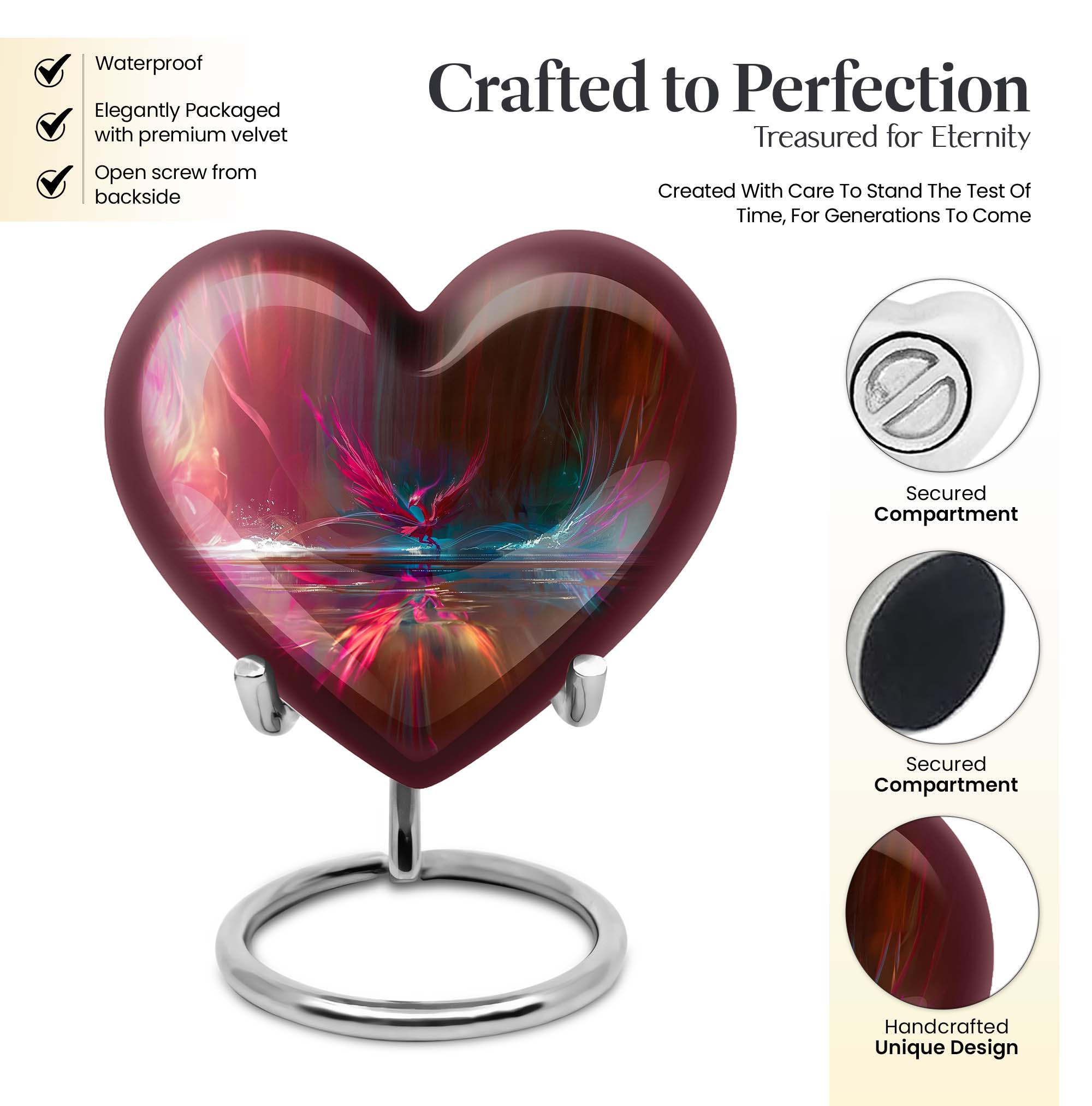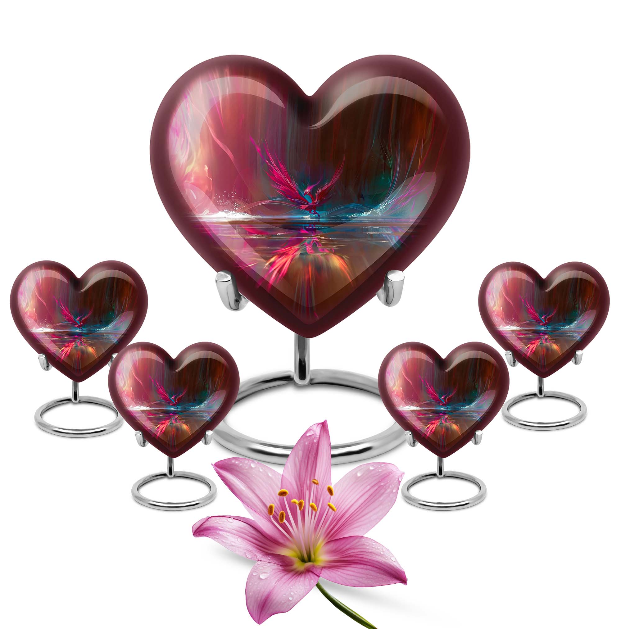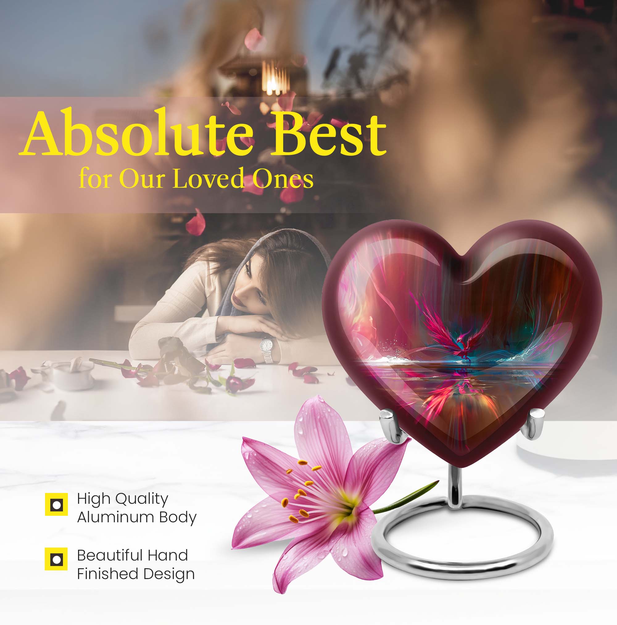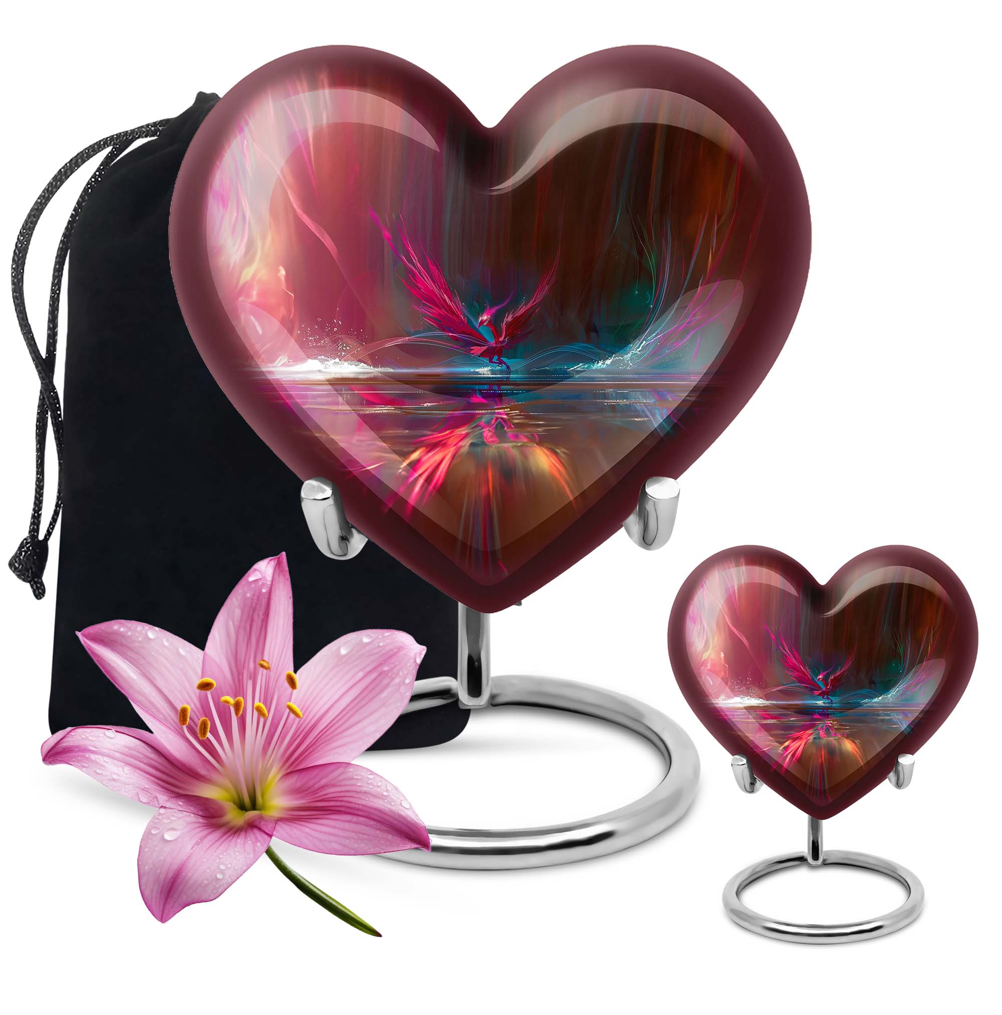 Embodying a unique fusion of heartfelt sentiment and artful craftsmanship, this phoenix urn serves as a touching tribute to commemorate beloved family and friends. This large, aluminium cremation urn for ashes, especially appropriate for adult males, displays abstract theme which exudes a serene aura and profound respect. At a size substantial of 10 inches with a weight of just 3.3 pounds, it has an impressive capacity of 200 cubic inches, testament to its profound purpose and function. You can also personalize this phoenix urn with engraved names, adding a customized touch. Along with the urn, the package comes with a velvet pouch, providing a dignified containment for the ashes that can be easily transported during travels, adding a touch of convenience. Whether you're searching for 'memorial urns' or 'urns for male', this 'phoenix Urn' stands out in its capacity to provide solace and comfort in remembrance. This amalgamation of form and function renders it as an optimal choice in the category of Memorial Ceremony Supplies.