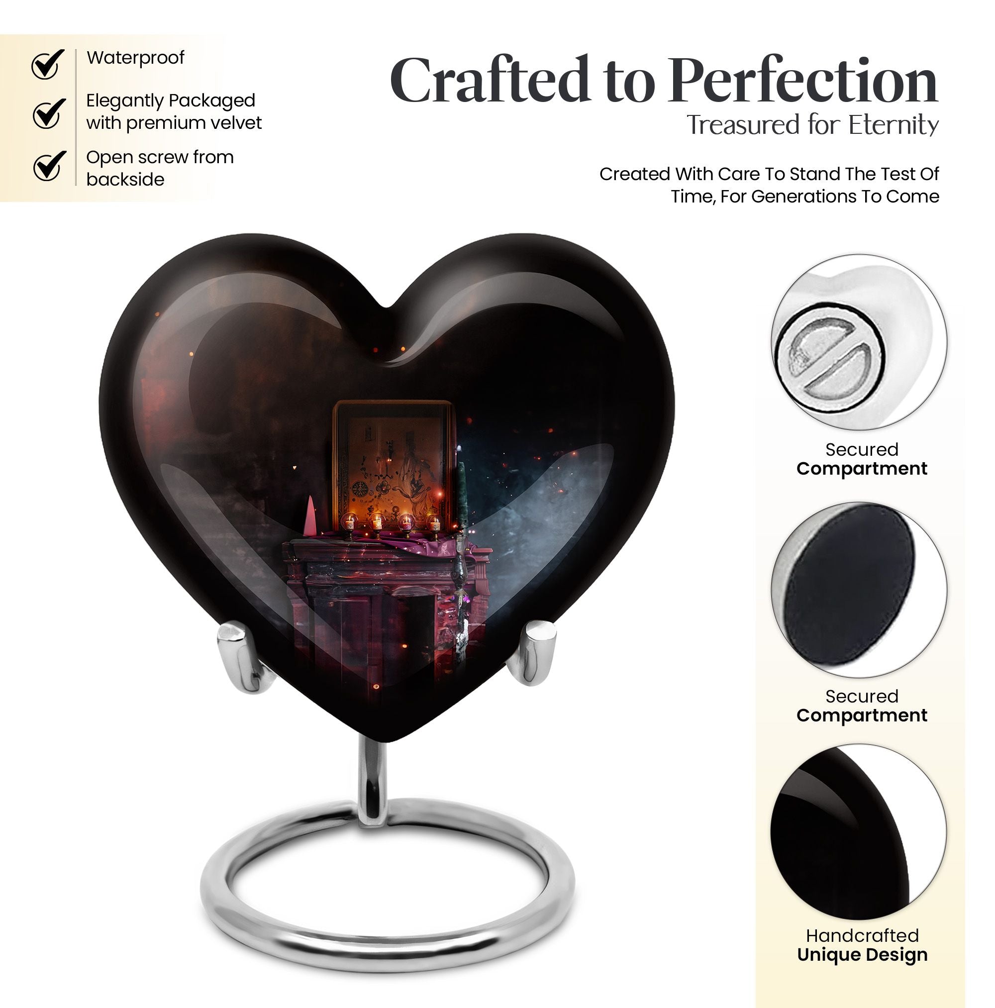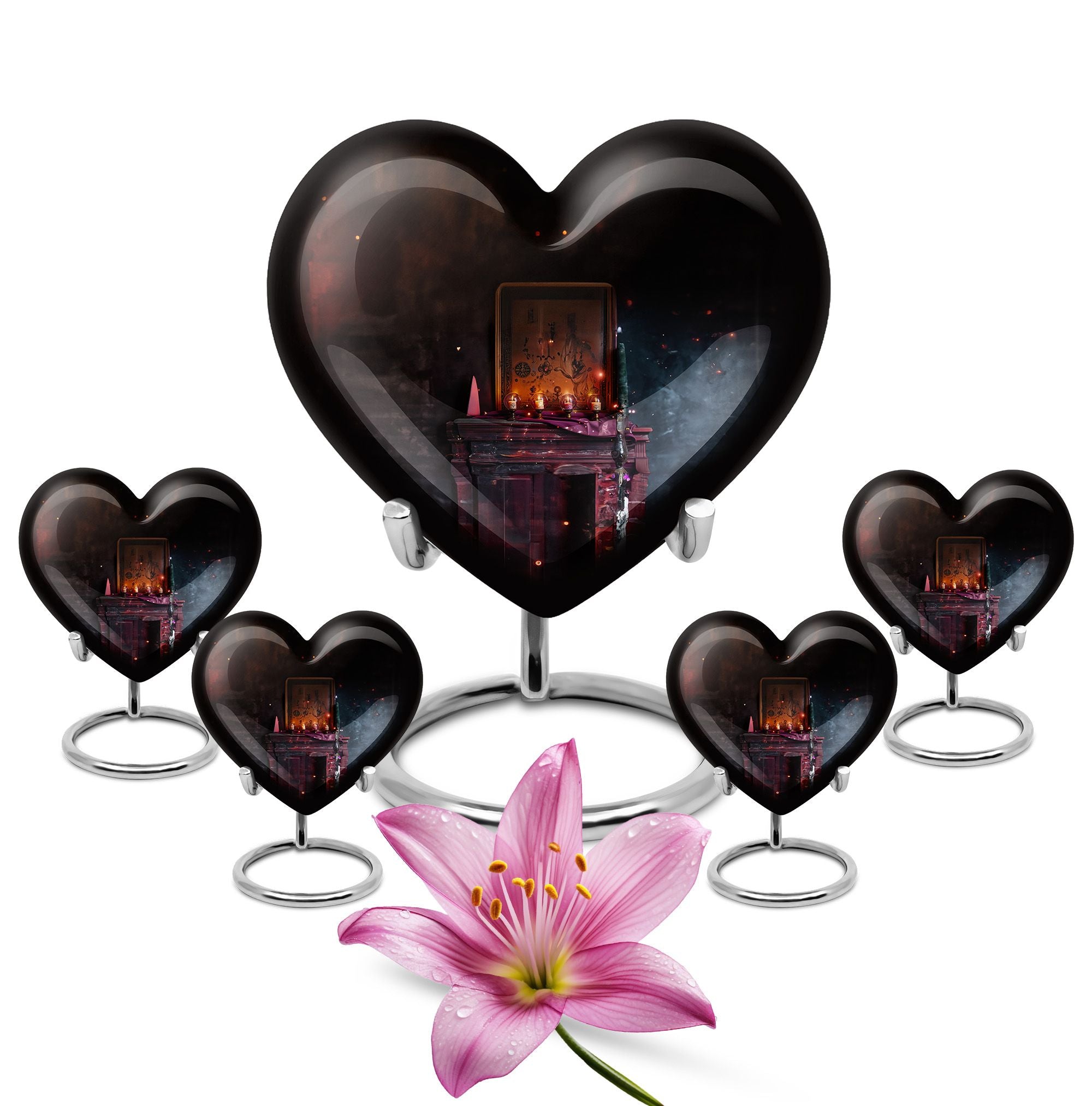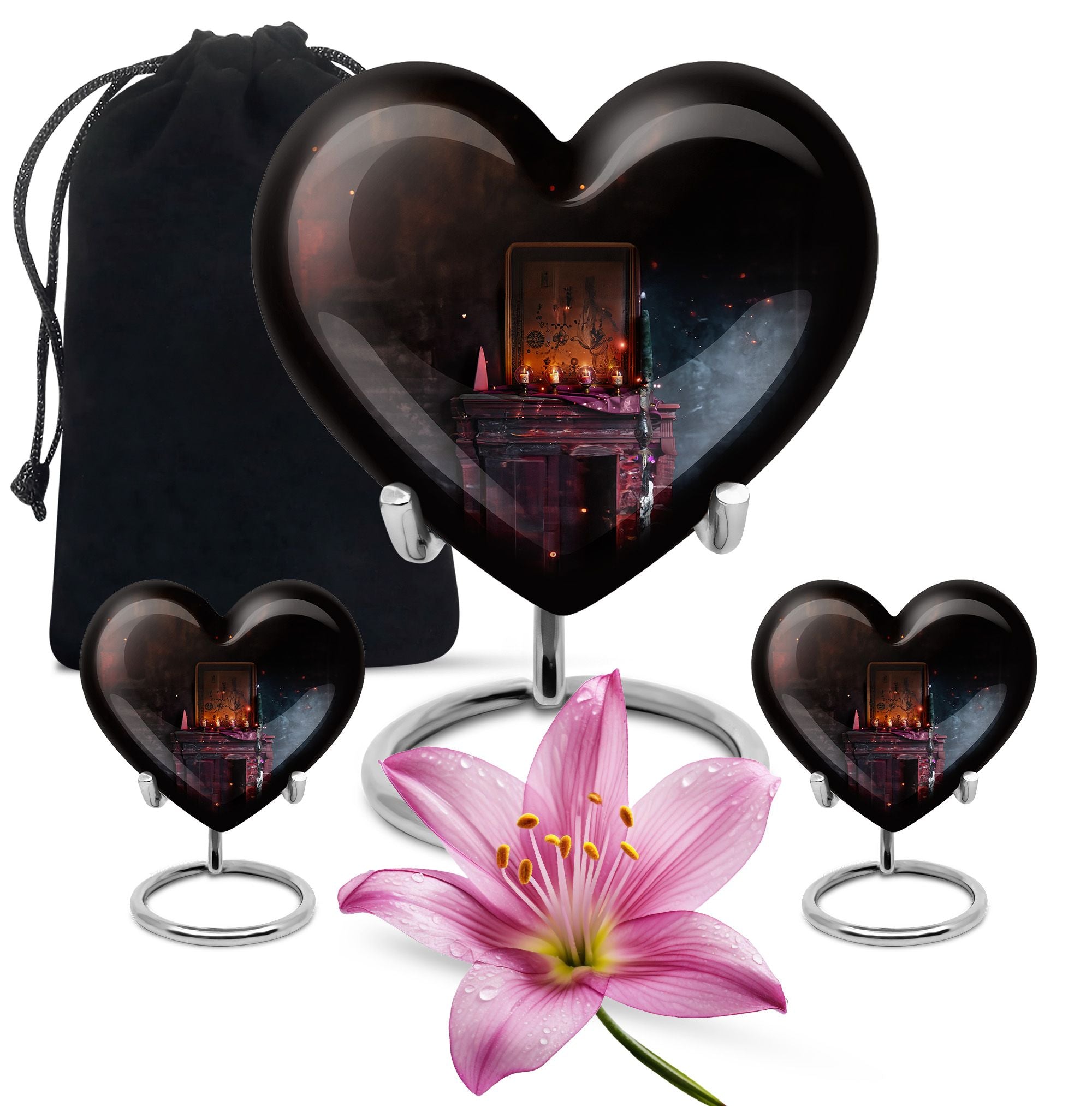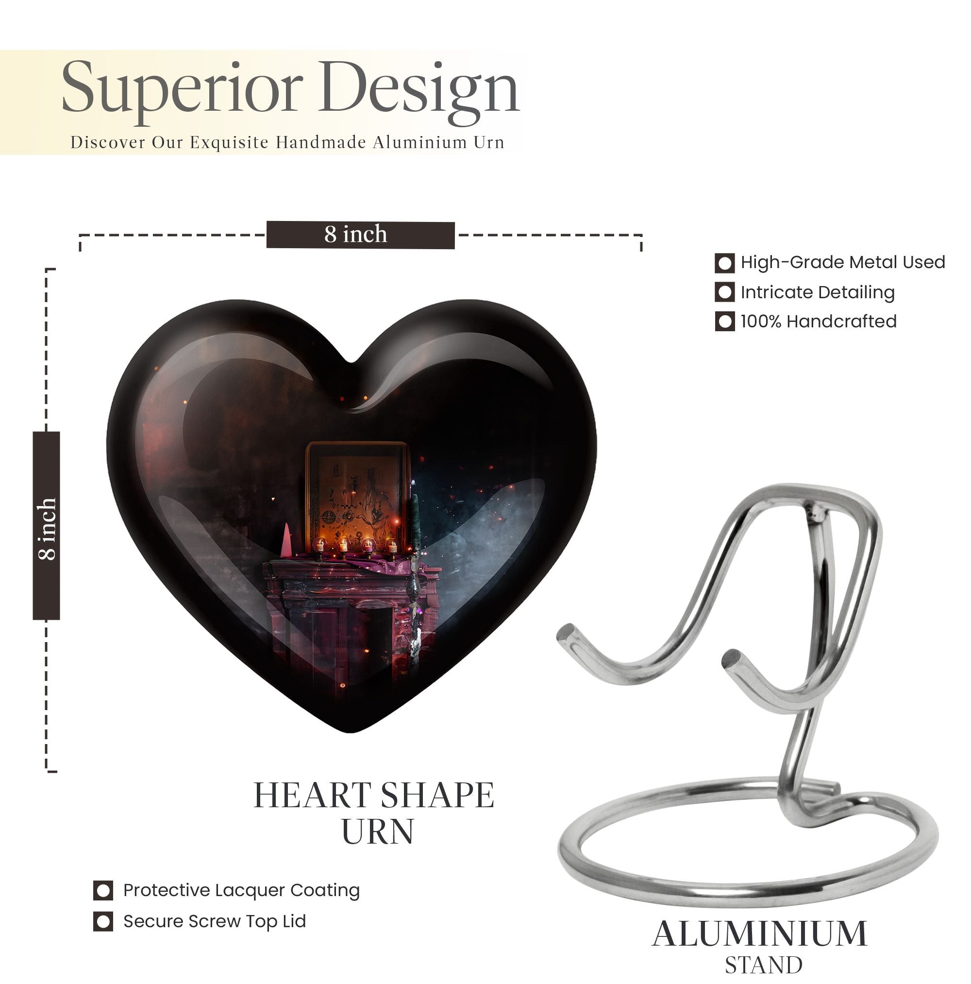 Discover the embodiment of serene reverence with our Abstract Tarot Urn, a meticulously crafted tribute to your dearly departed. This cremation dad urn, forged from a sturdy aluminium, showcases intriguing heart designs, exuding a blend of tenderness and resilience that resonates with your sentiments. Standing at a grand 10 inches, this large urn can generously accommodate up to 200 cubic inches of ash. Weighing 3.3 pounds, its robust structure is designed to withstand the test of time. For a touch of personal sentiment, avail our customization feature to engrave names and make this token truly your own. We also provide a plush velvet pouch, ensuring a dignified containment for the ashes. This urn perfectly suits those seeking a balance of affordability and quality. Whether you're in need of burial urns for adult men ashes or general human urns, our Abstract Tarot Urn emerges as a superior choice in your hour of remembrance.