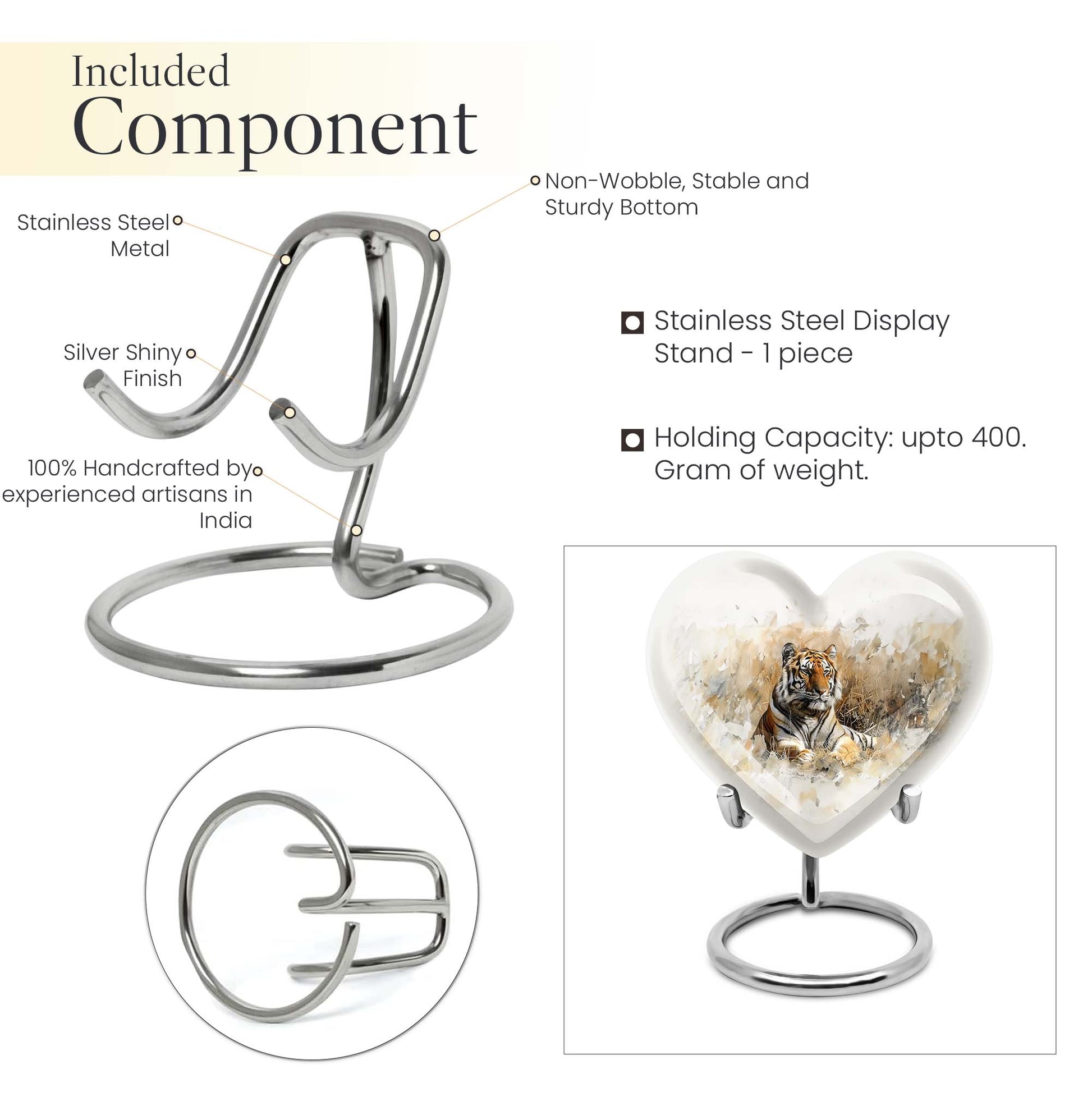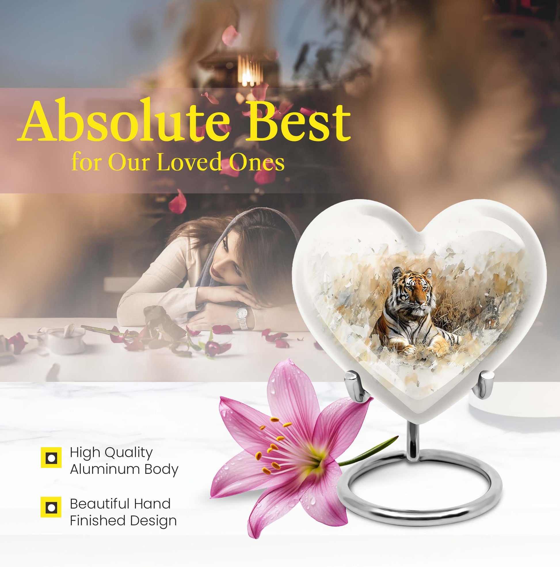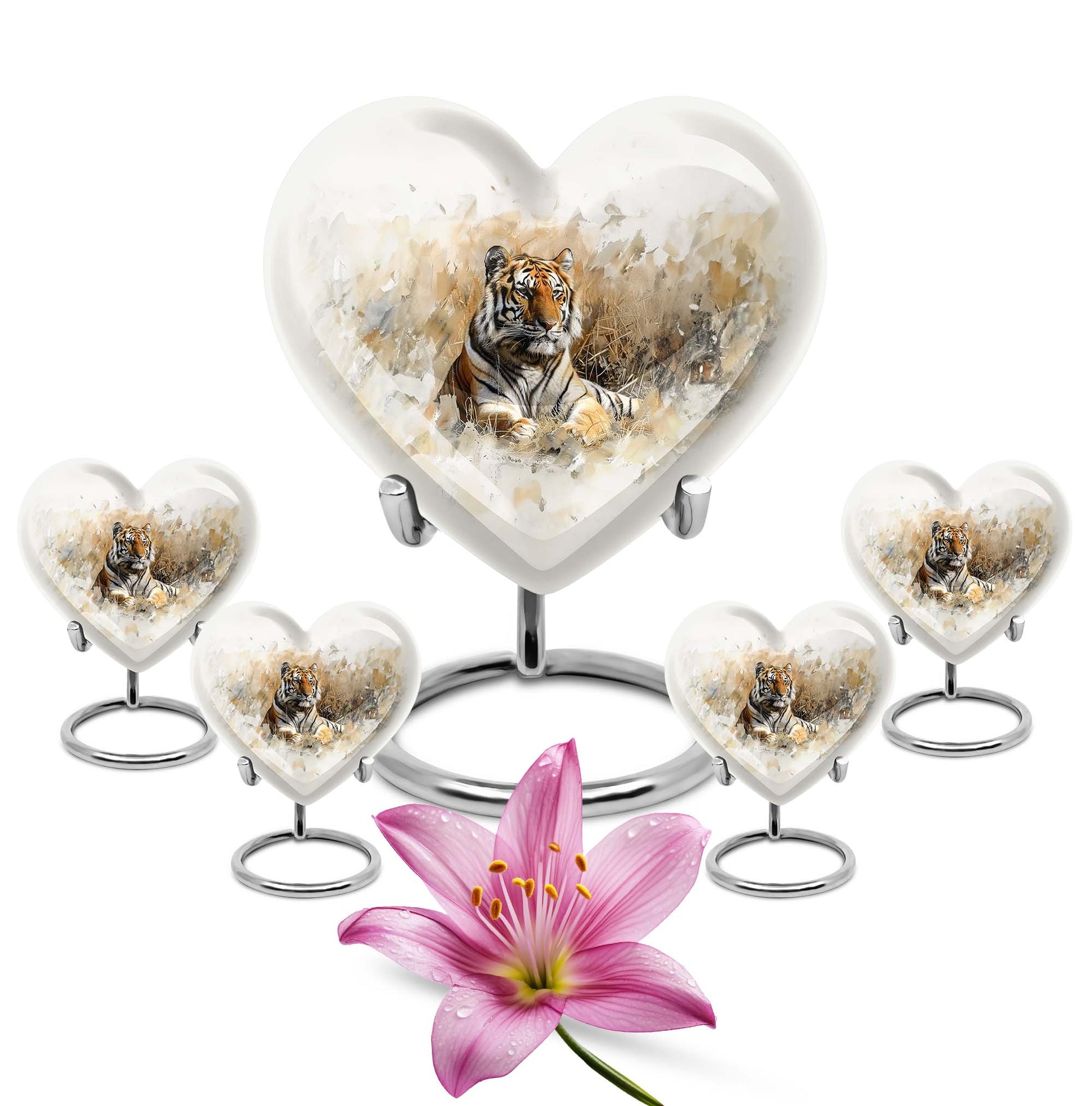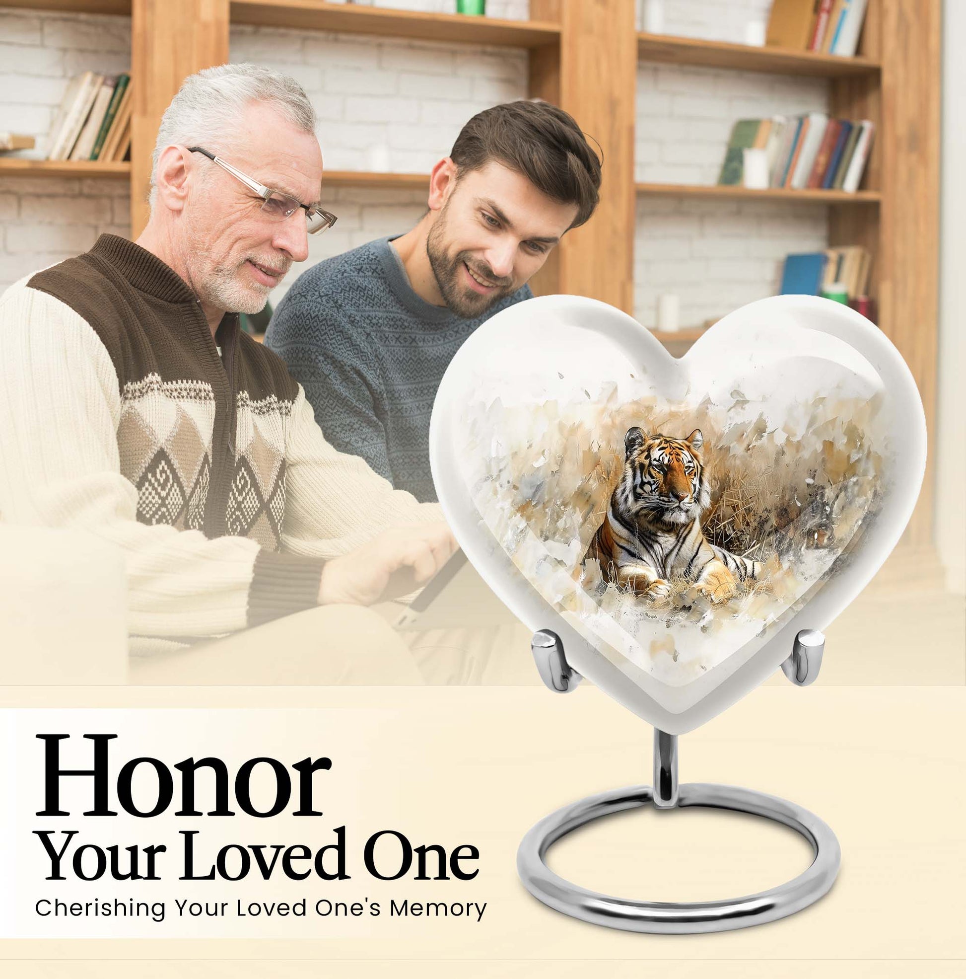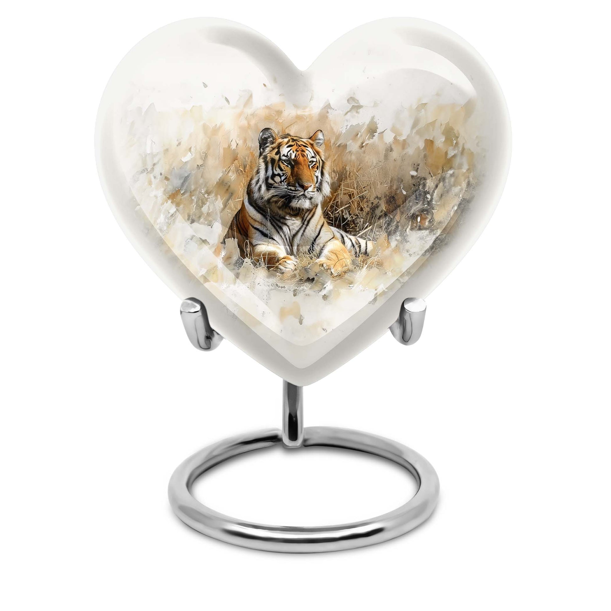Explore the superior quality, uniquely crafted tiger urns, an essential piece in Memorial Ceremony Supplies. Sized at 10 inches, this large burial urn is perfect for keeping the remembrances of your loved ones close to you. The urn's design mimics the beauty and tranquility of nature with an engraved floral theme, offering peace and solace. Surface made from durable aluminium, it weighs 3.3 pounds, promises longevity and has a holding capacity of 200 cubic inches. Personalization is available, allowing you to engrave a name, adding that personal touch. This cremation urn for men comes with an elegant velvet pouch for containing and safeguarding ashes. Adorned in every detail, it reminds us of the undying spirit and love for our dear departed ones. Ideal for those in need of funeral cremation urns or urn ash funeral urn box, this heart-shaped urn box stands as the embodiment of never-ending love and memory.