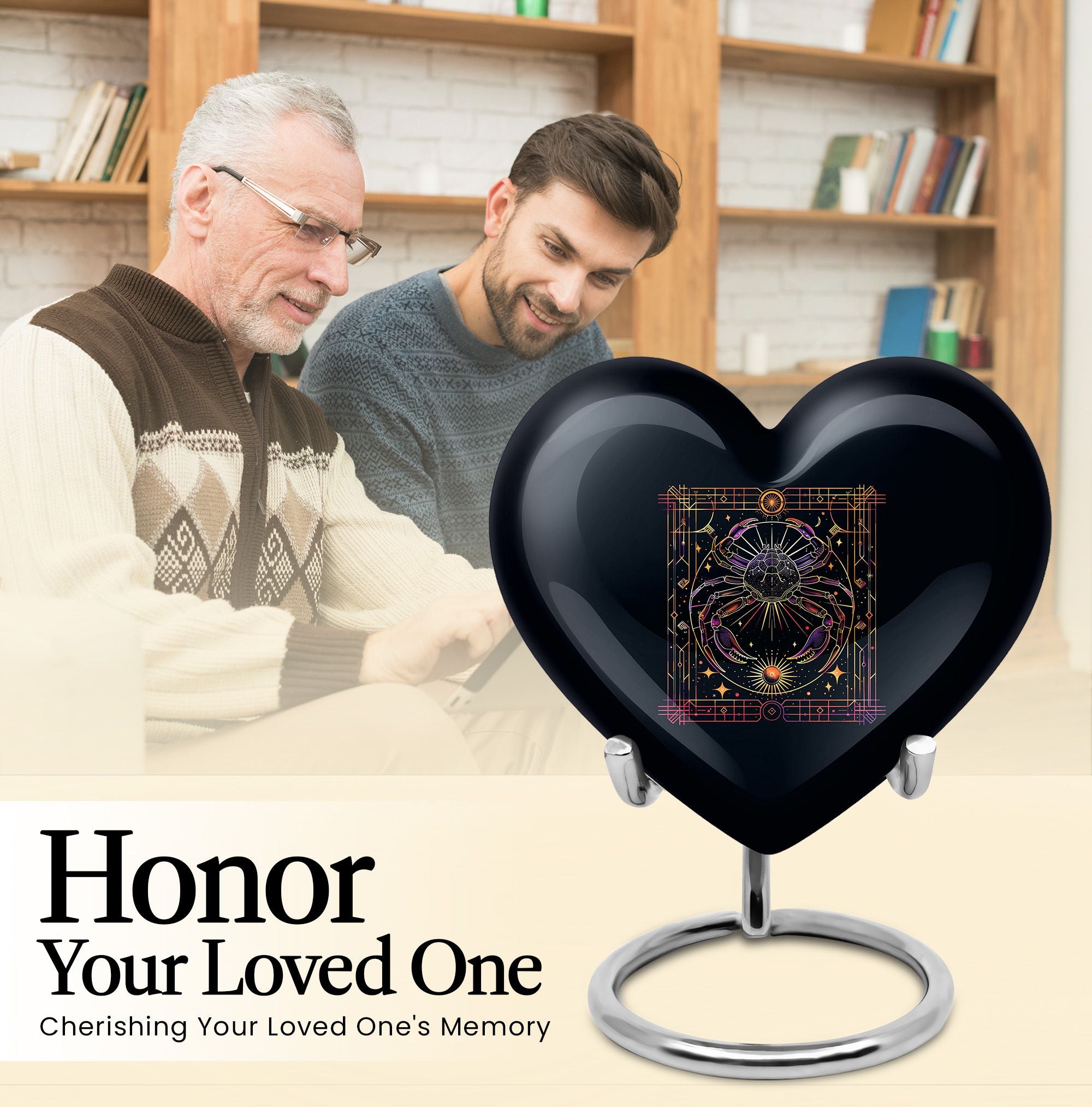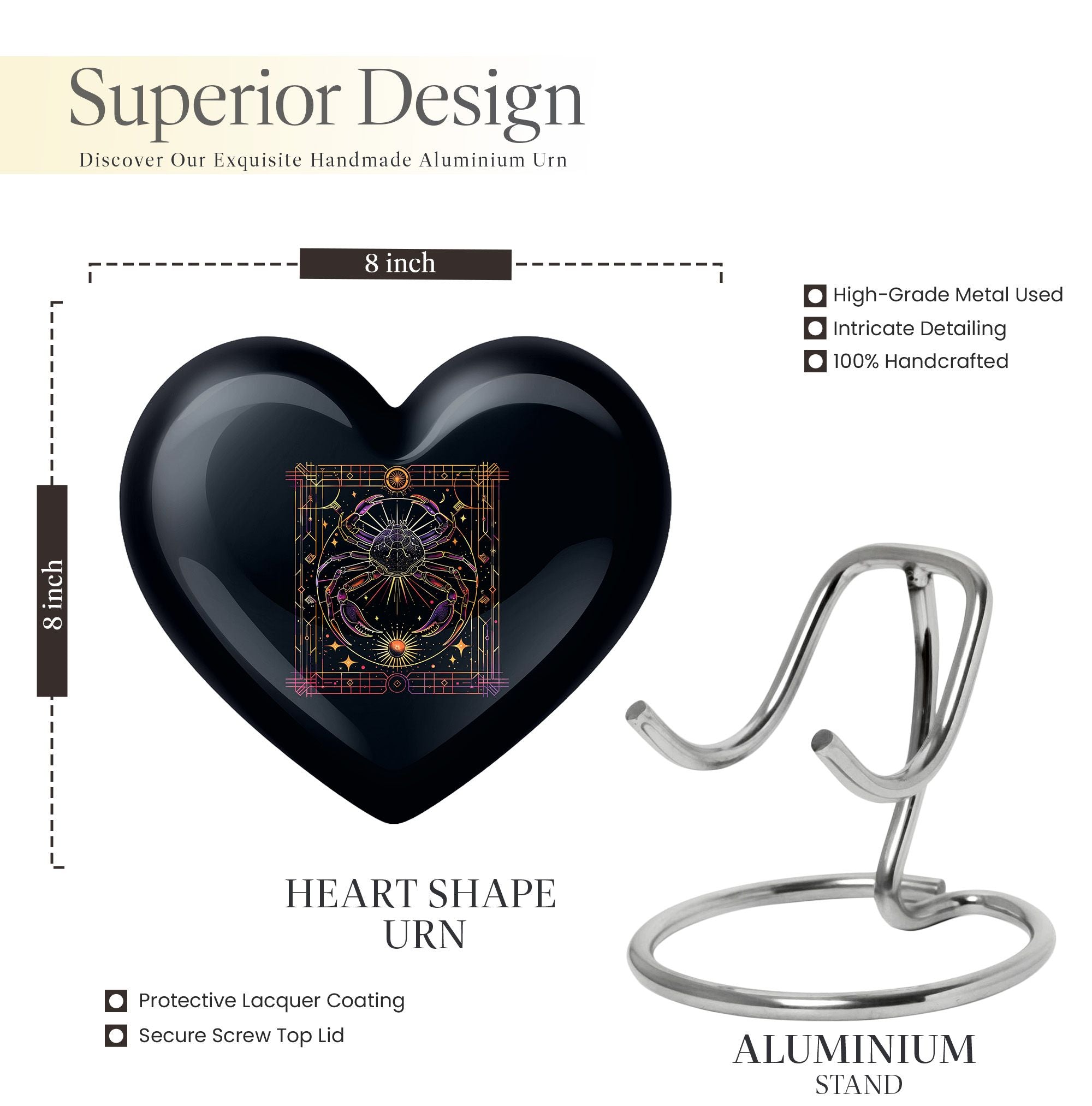 Our large Abstract Zodiac Urn is an exquisite tribute to your loved ones. It mixes originality and a profound respect for traditional funeral rites, making it the perfect choice for memorial urns. Viewers will appreciate the depth of its beautiful 10-inch aluminium heart, capable of holding up to 200 cubic inches of ashes. Weighing at 3.3 pounds, this burial cremation urn defines durability and is well suited for Adult Females. Its distinct ability to be personalized with engraved names allows for an intimate connection with the departed. Without compromising on beauty and quality, the included velvet pouch ensures containment of ashes with the utmost respect. Avoid the ordinary with ou,r Zodiac Urn, an elegant choice for those in search of metal urns for burial. N.B: Keywords for search optimization include: Zodiac Urn, burial, cremation urns, memorial urns, Aluminium, Cremation urns, Adult Female Elegant Urn in Porcelain, metal urn for burial, funeral urns for human ashes adult.