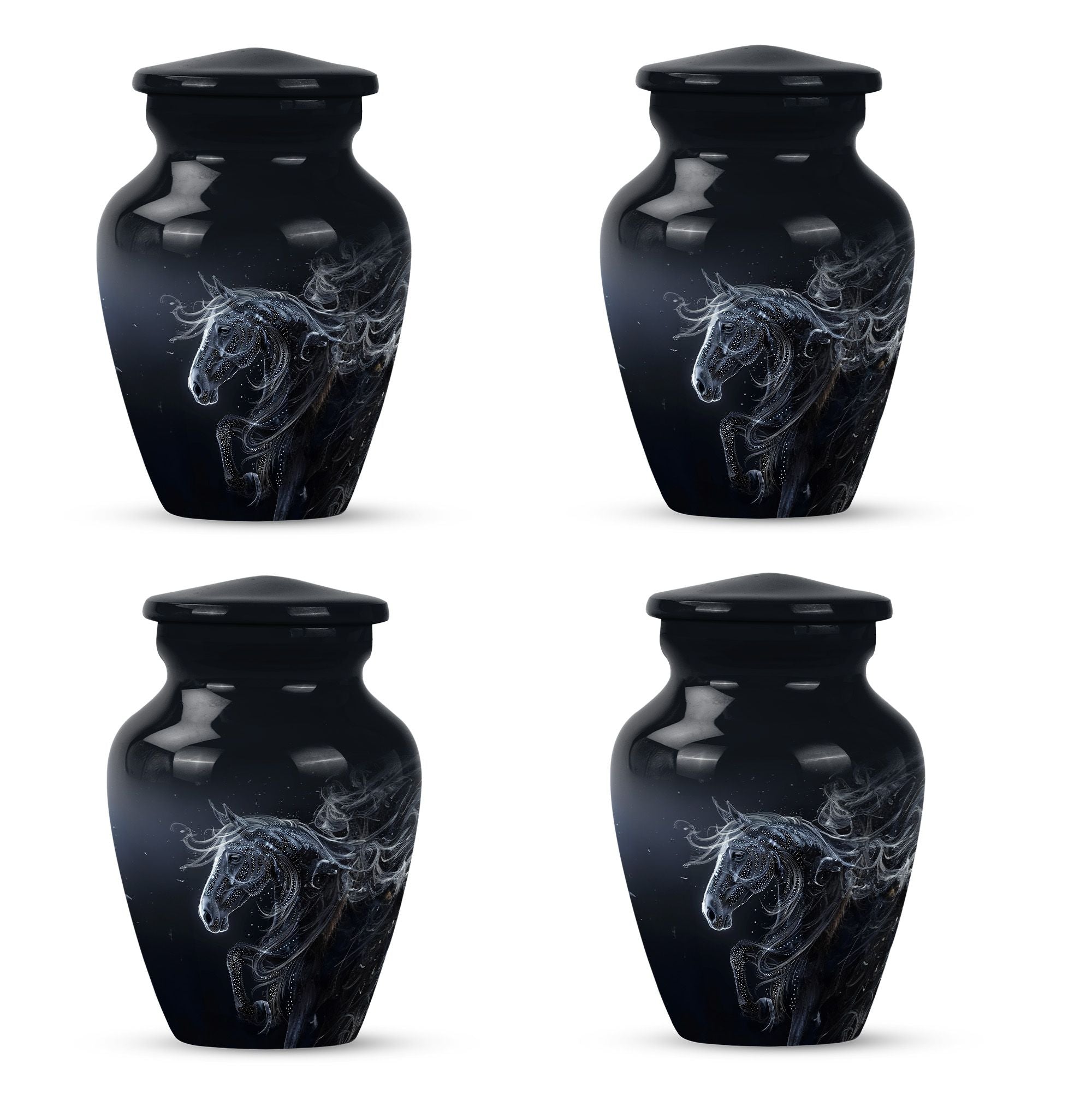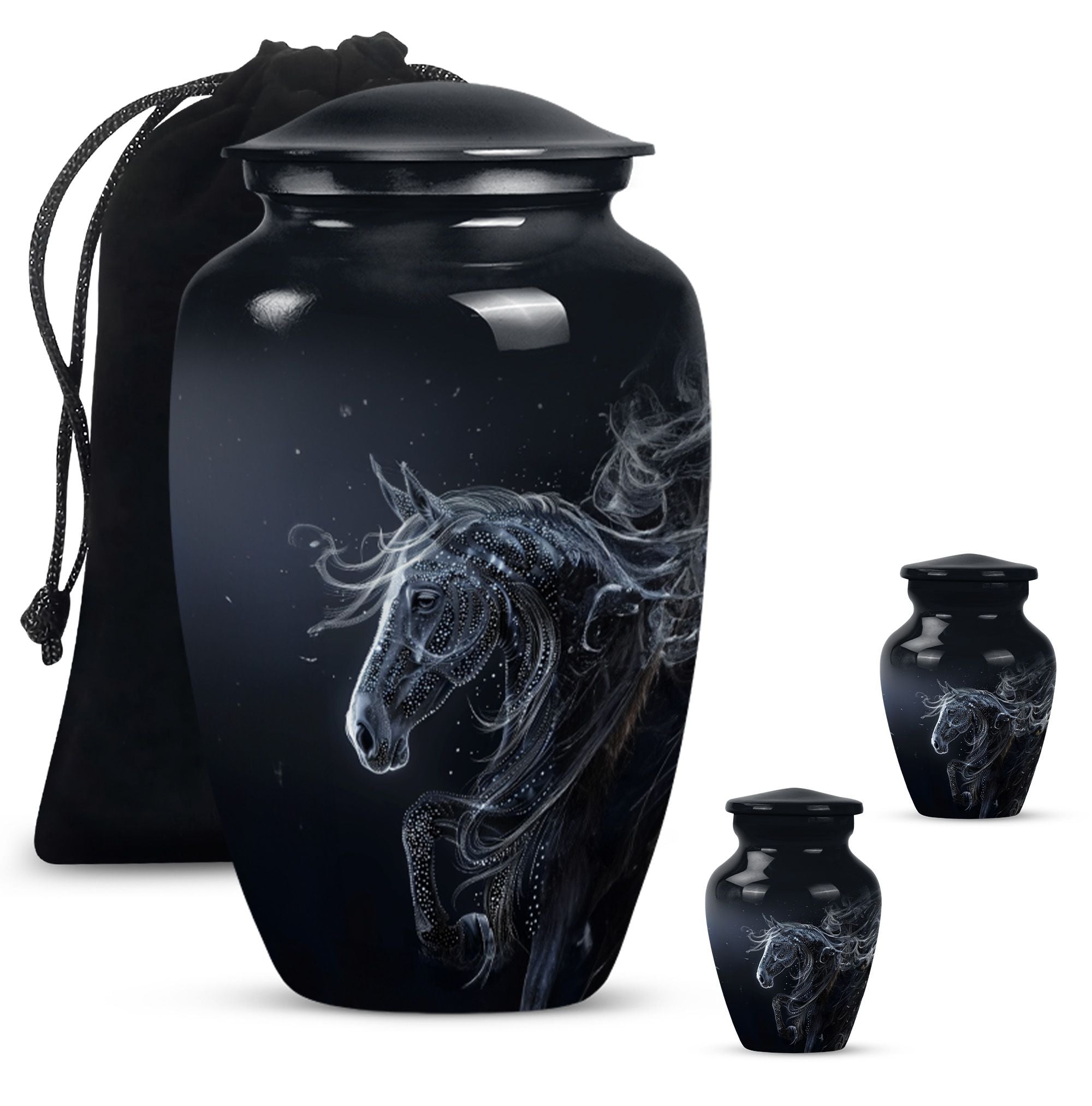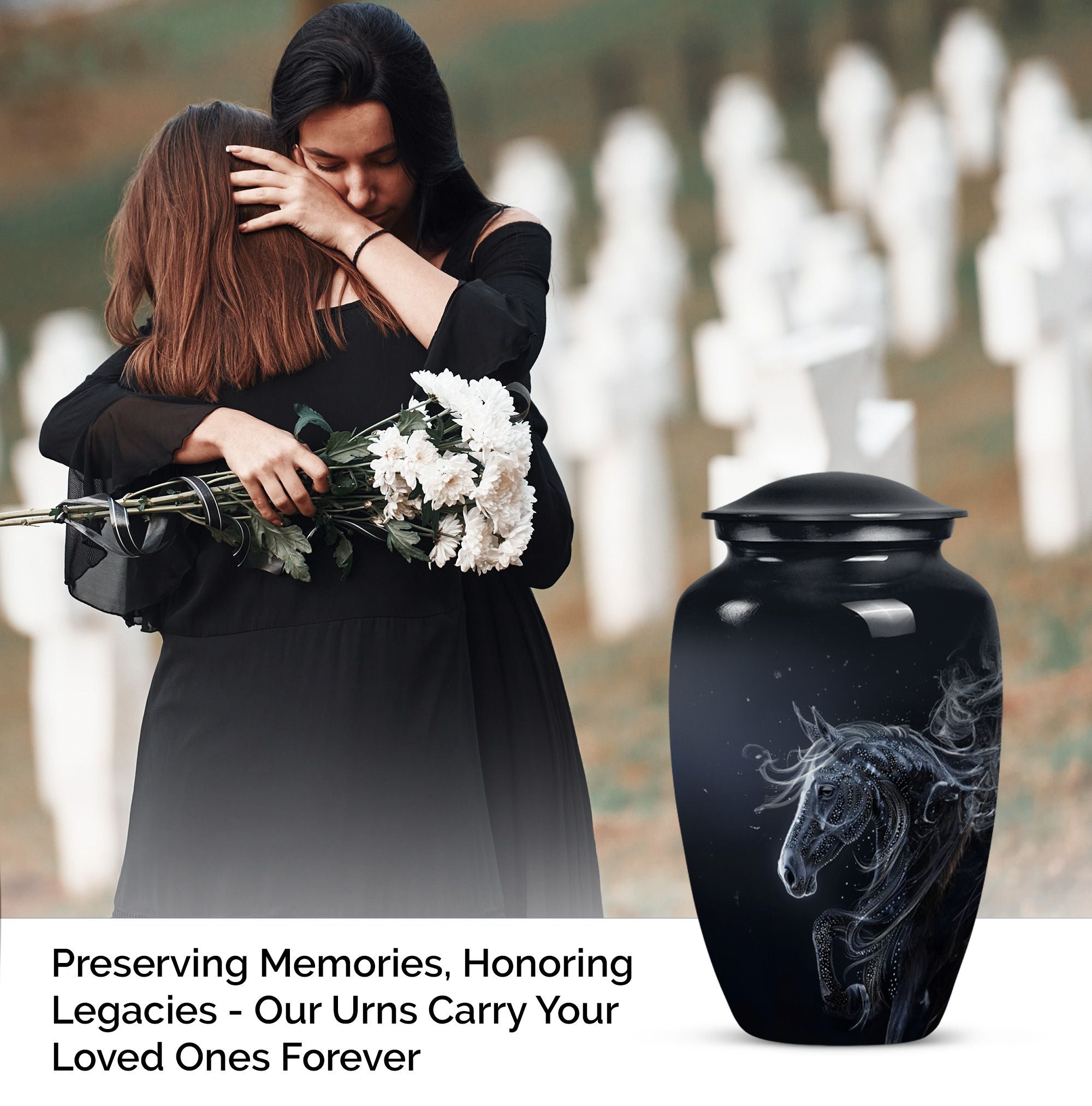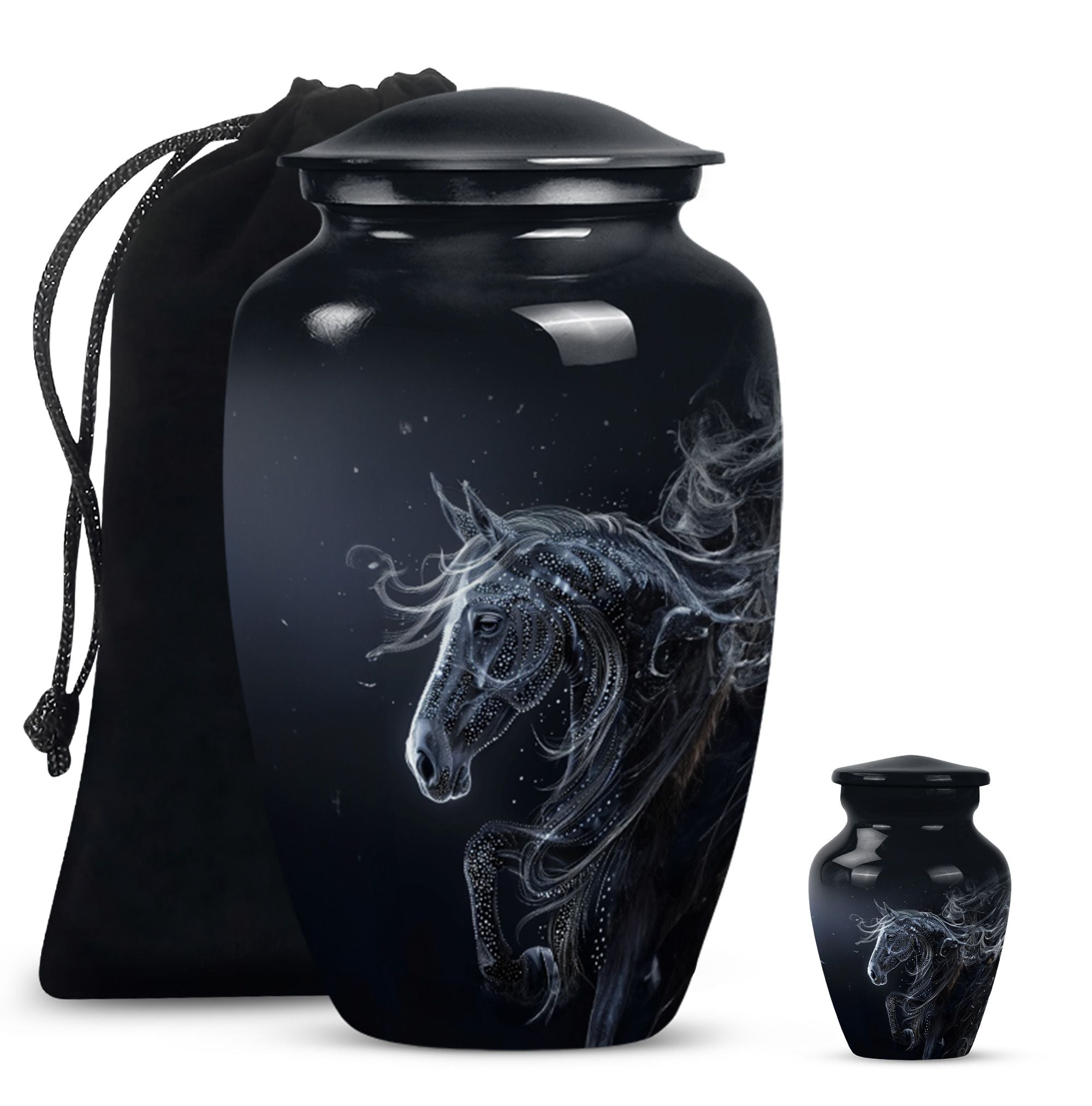 Embark on a tranquil and serene journey towards peaceful remembrance with our Large Urn for Ashes. Perfect for those seeking a Horse Urn or a cremation urn for an adult male, our product fuses reliability and tranquility in a single, seamless experience. Its robust physique, weighing in at 3.3 pounds, and towering 10 inches tall, is a testament to our commitment for quality memorial urns that stand the test of time. Enveloped in a stylish Aluminium exterior, our urn highlights an enchanting abstract theme that connects the departed with the divine. Prepared to hold 200 cubic inches securely, the urn's ample capacity accommodates most needs. For a personalised touch, engrave names on the urn to make it unique. The urn boasts portability, making it an ideal travelling companion for those cherished moments of remembrance on-the-go. Finally, it comes complete with a lovely velvet pouch, offering an undemanding containment solution for the pioneers of the voyage. This urn is not just a product; it is a tribute to life's fleeting yet beautiful moments.