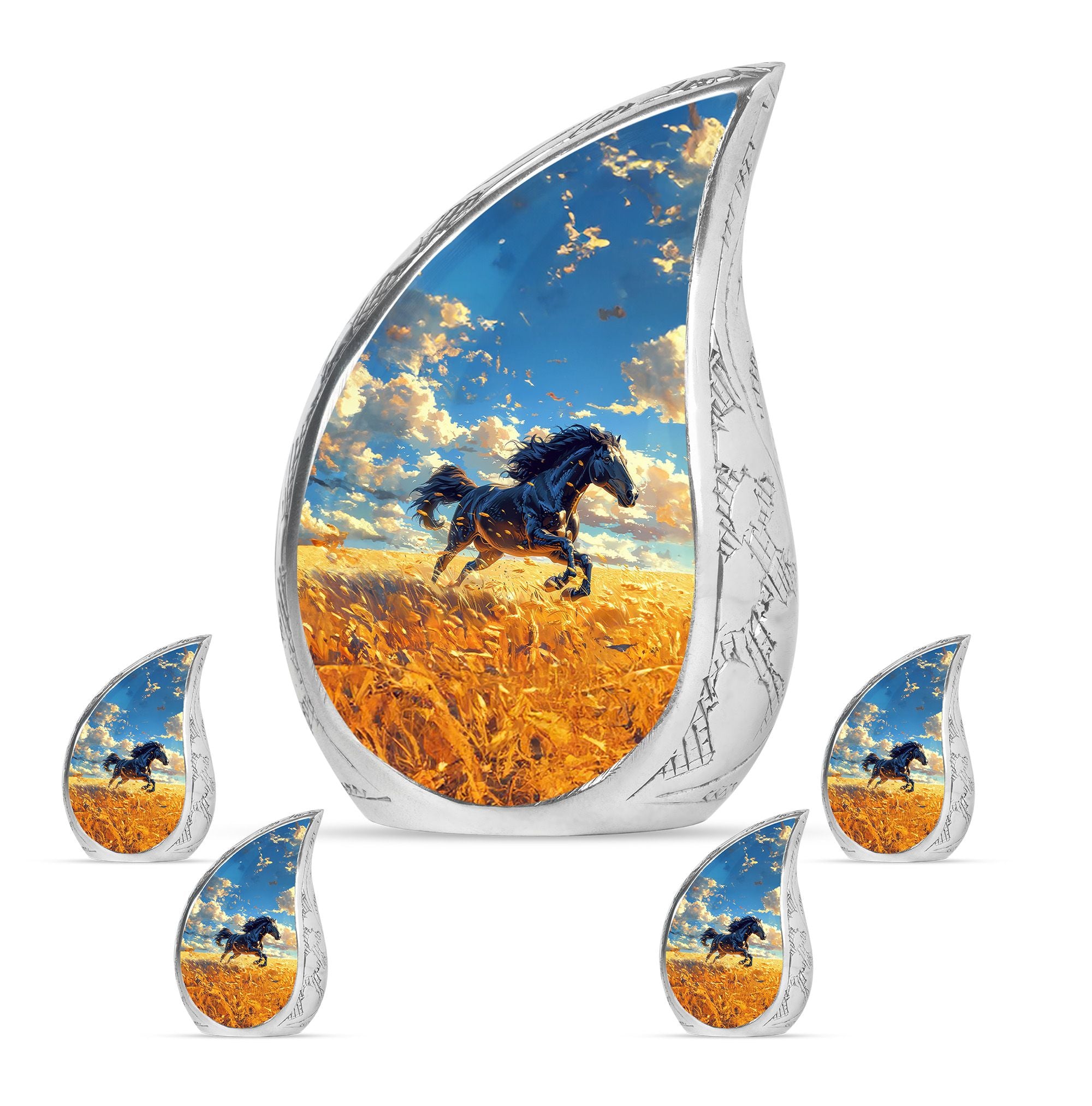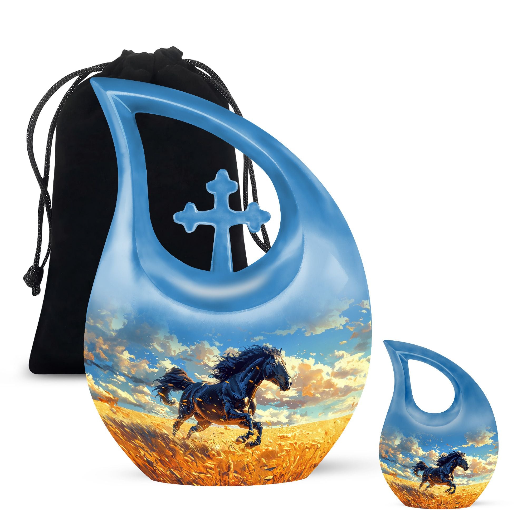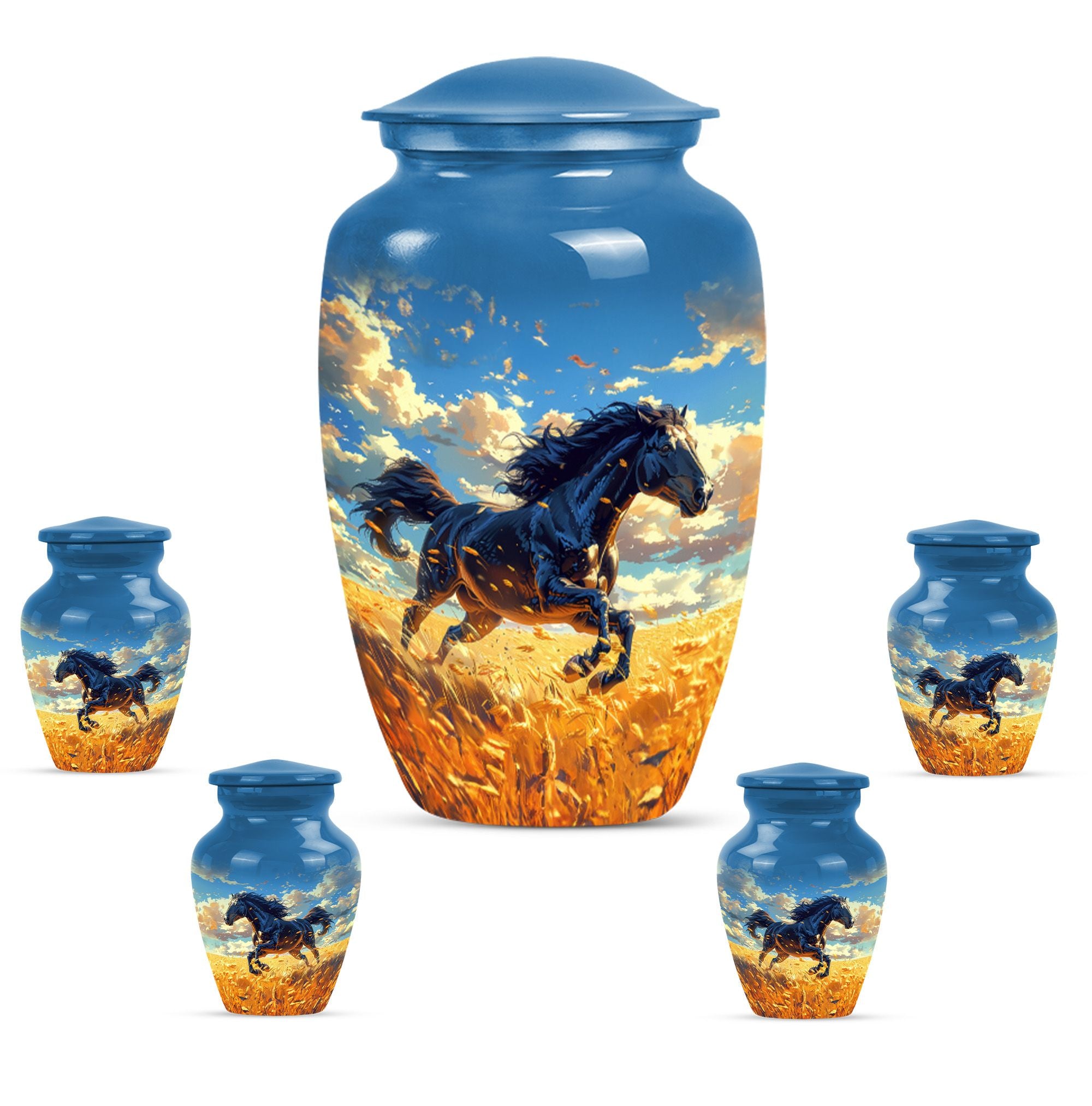 Celebrate cherished memories with the Grainfield Black Horse Memorial Ashes Urn, a compassionate tribute designed to honor your loved one. Perfect as funeral urn ashes, a mini keepsake funeral urn, or a funeral urn adult, it provides a dignified resting place while keeping treasured memories close.