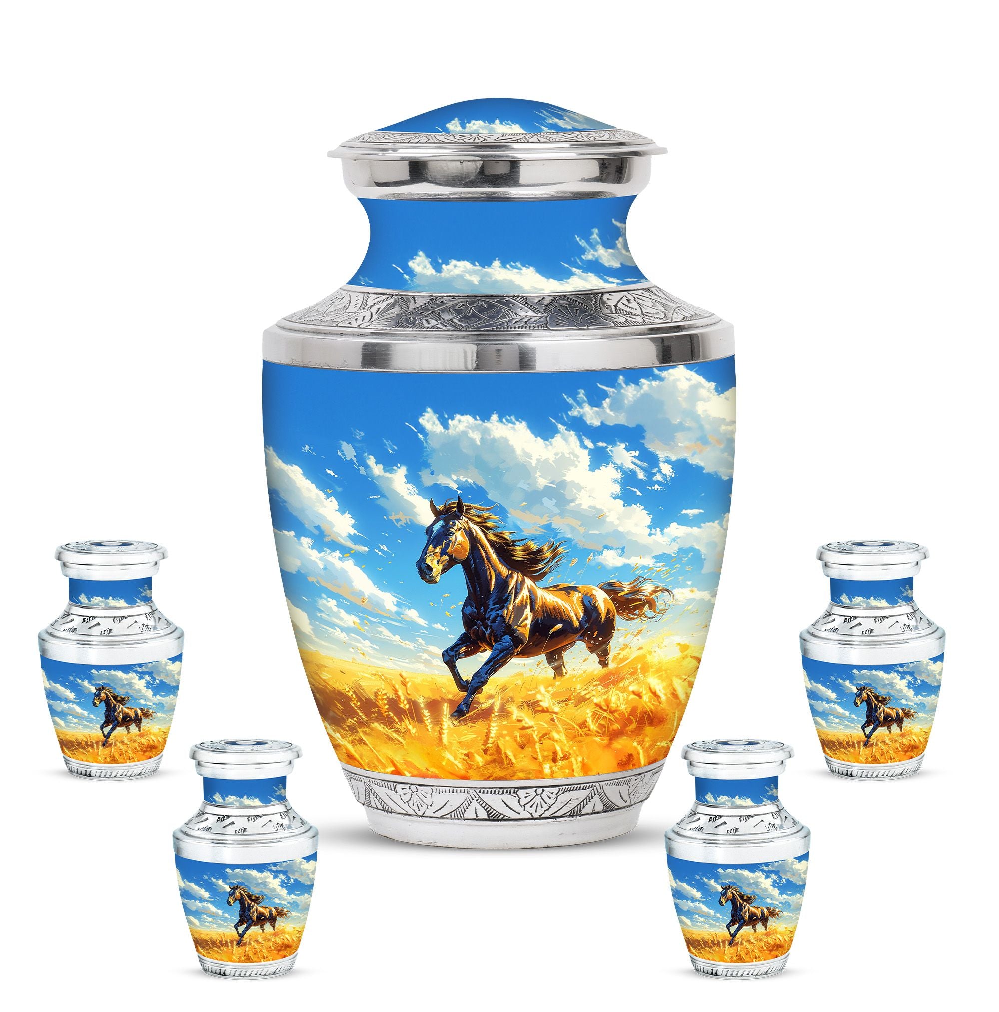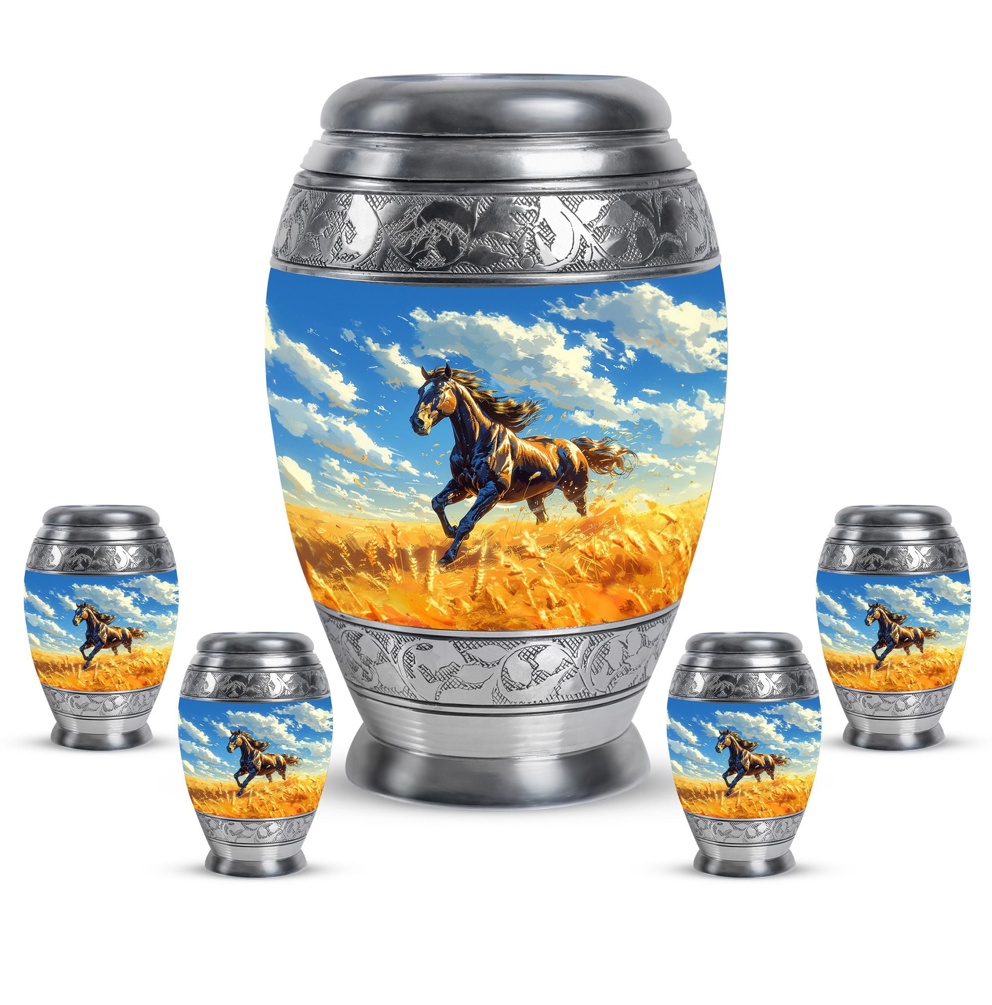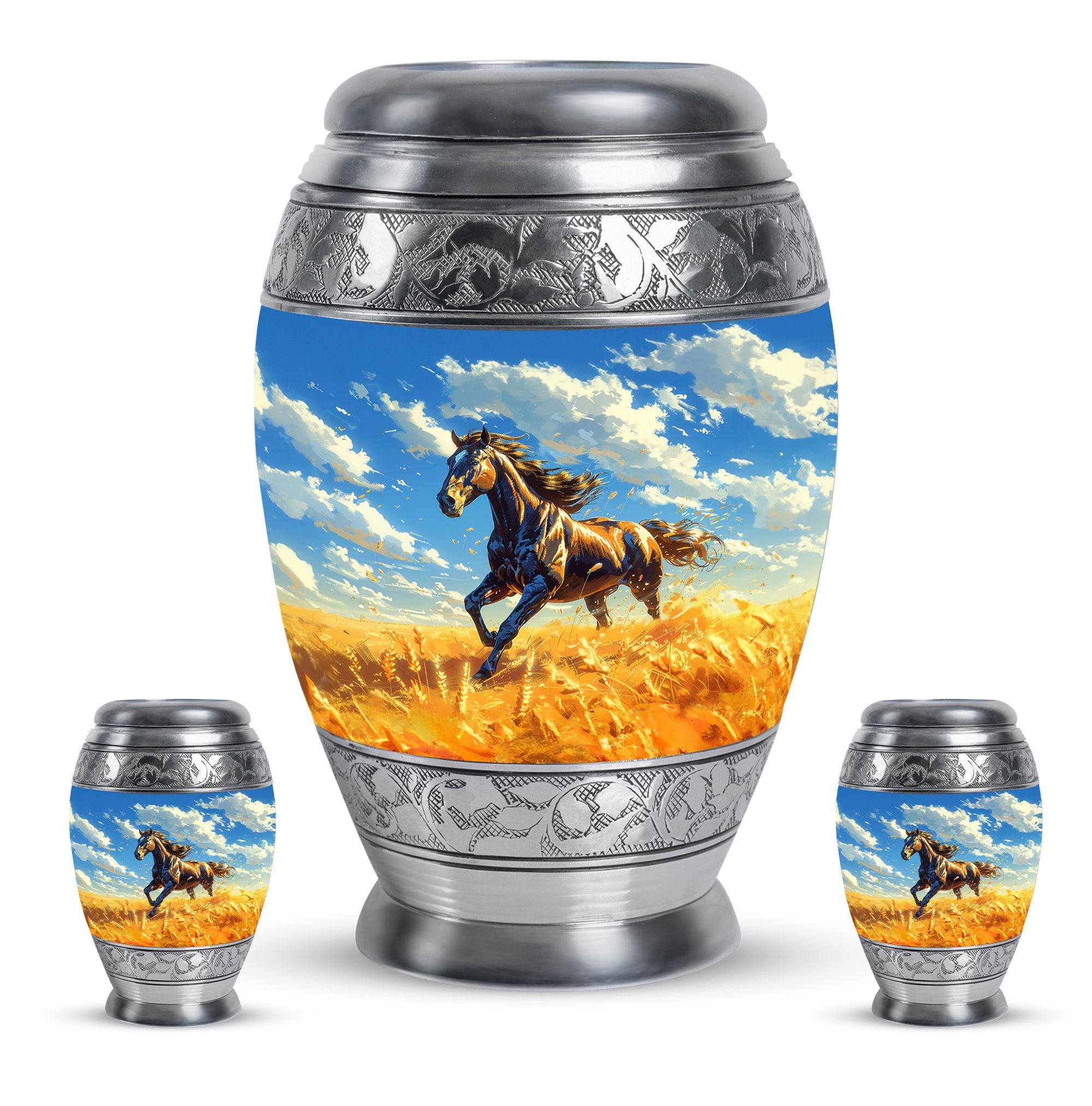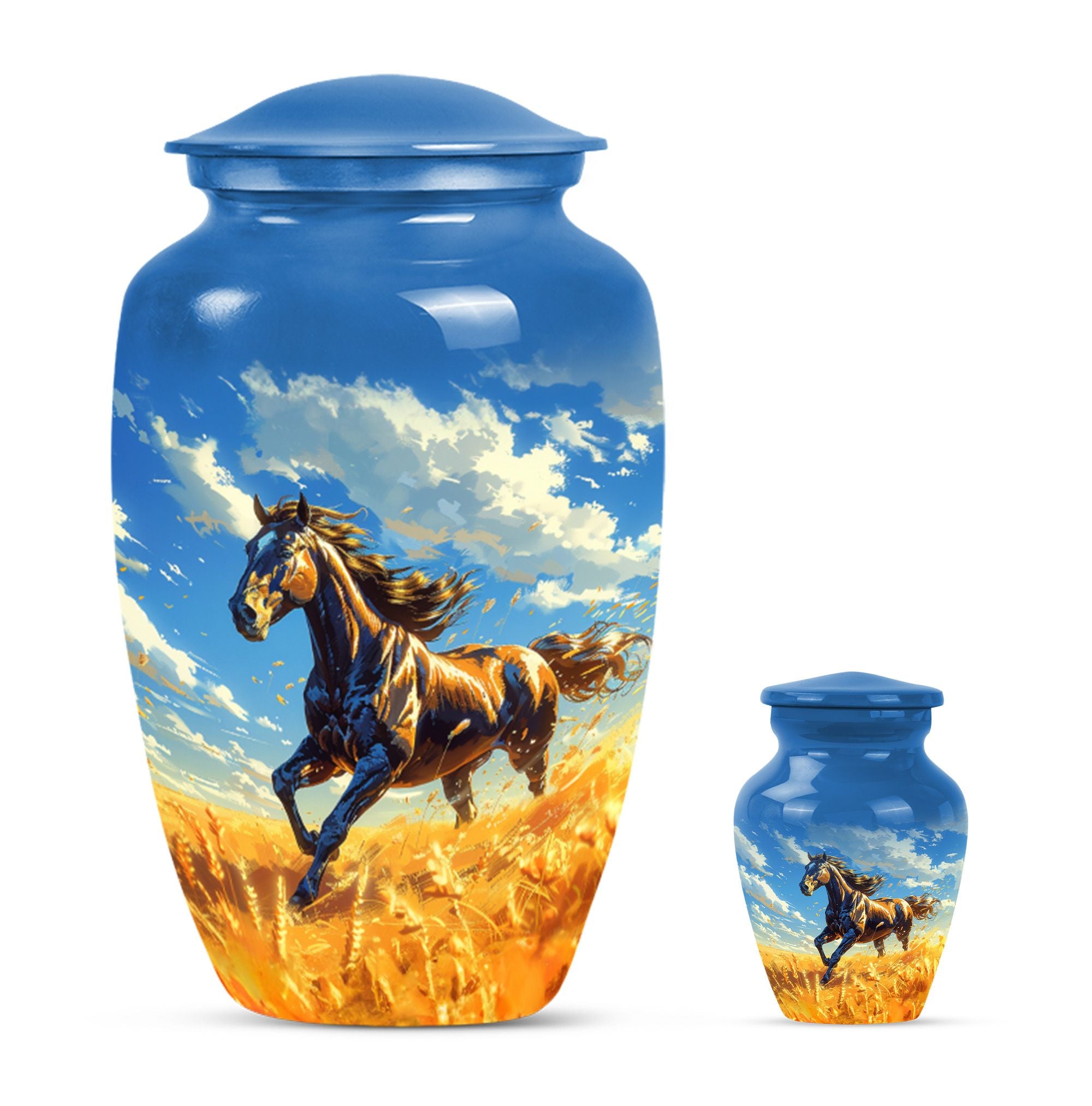 Horse Cremation Medium Urns For Human Ashes - Black Horse Memorial Keepsake