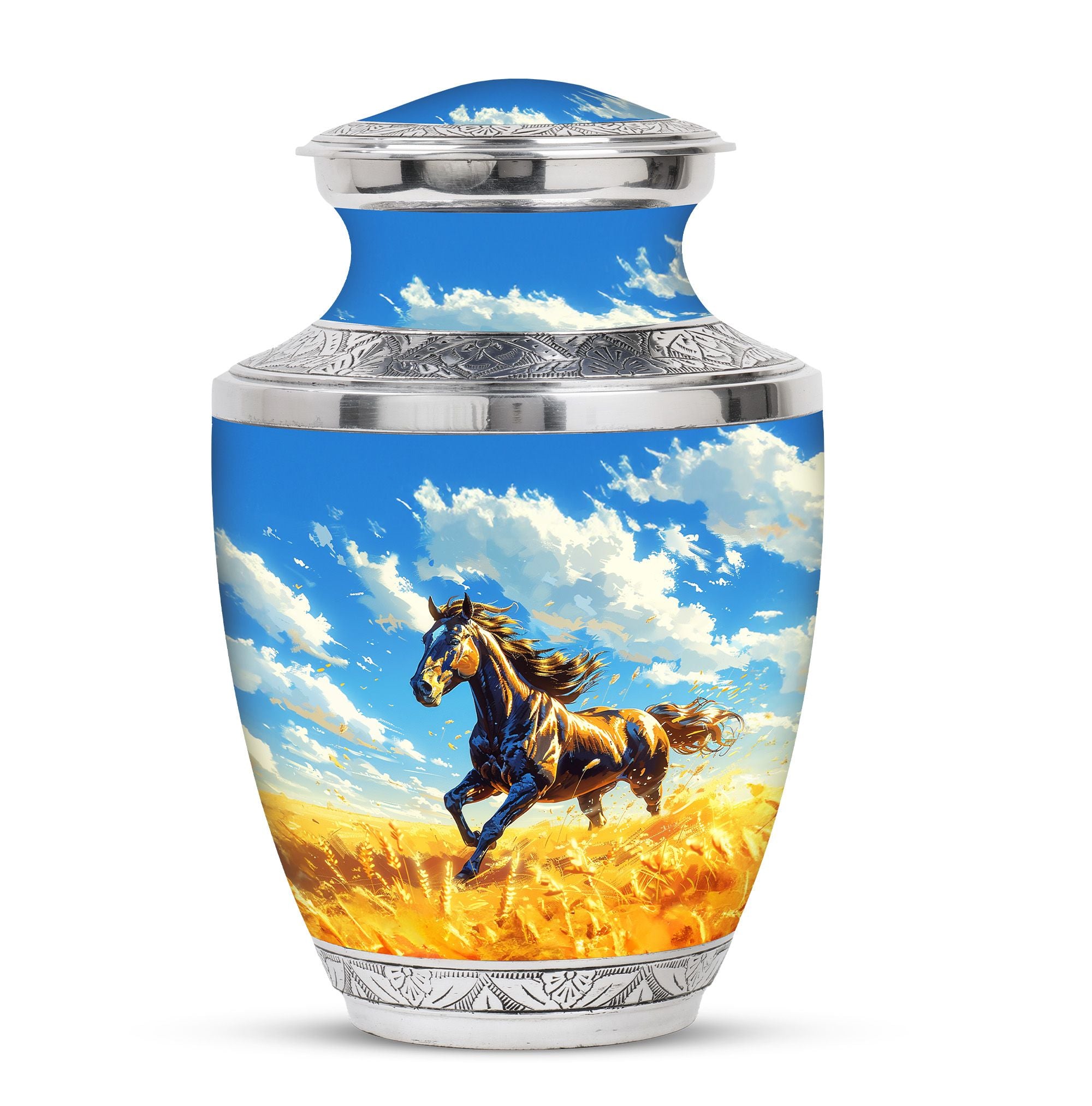 A meaningful tribute to everlasting love, this black horse memorial urn provides a graceful way to honor cherished memories. Designed with compassion, it serves as a beautiful symbol for families seeking burial urns adult female, an urn for human ash adult male, or a memorial for parents such as urns adult male dad.