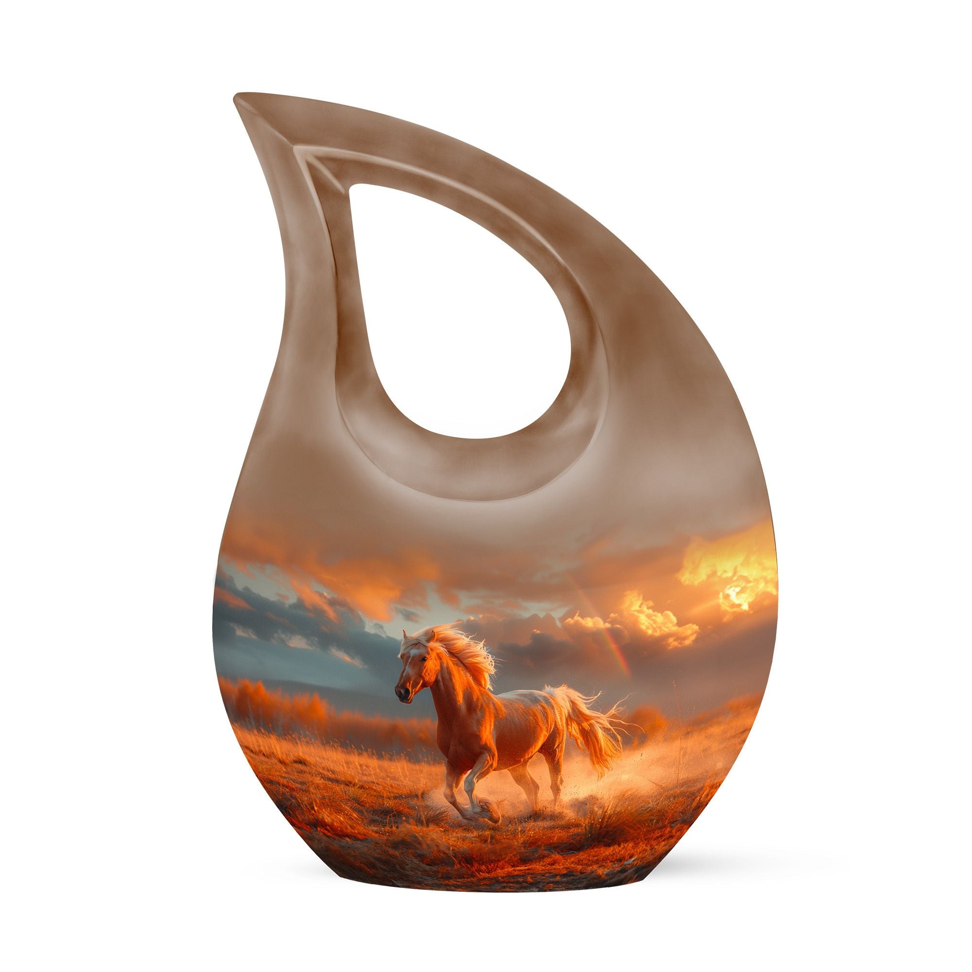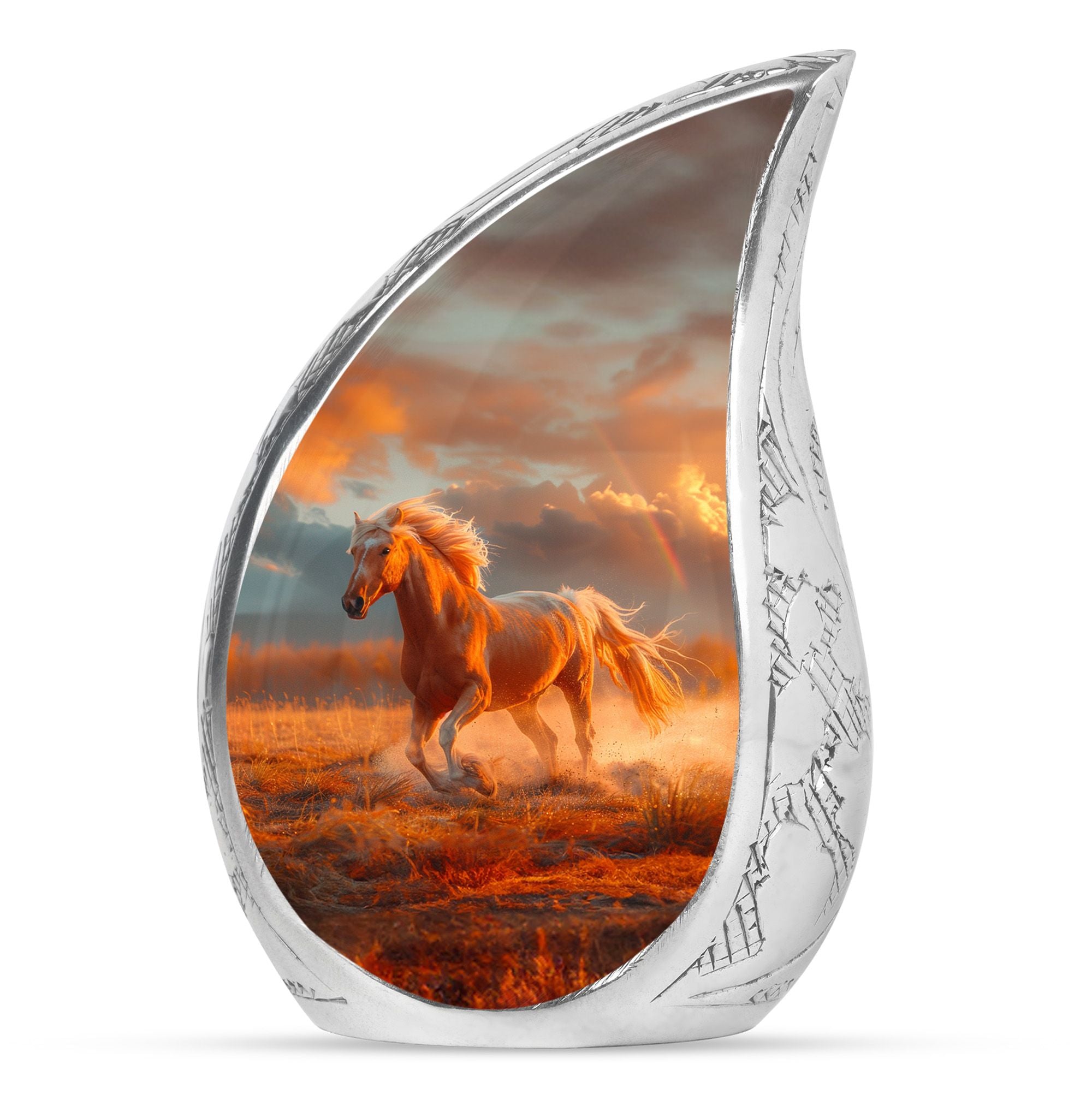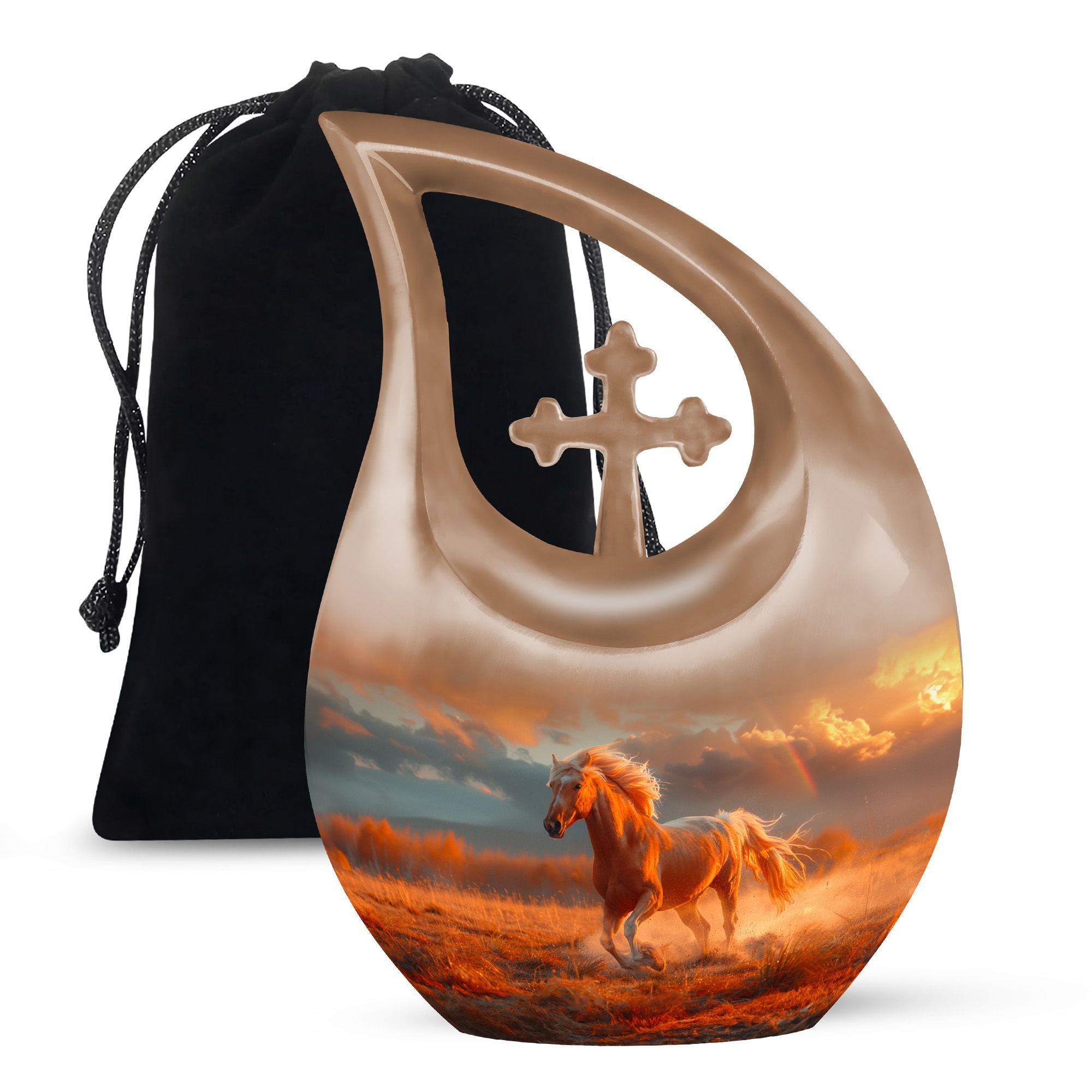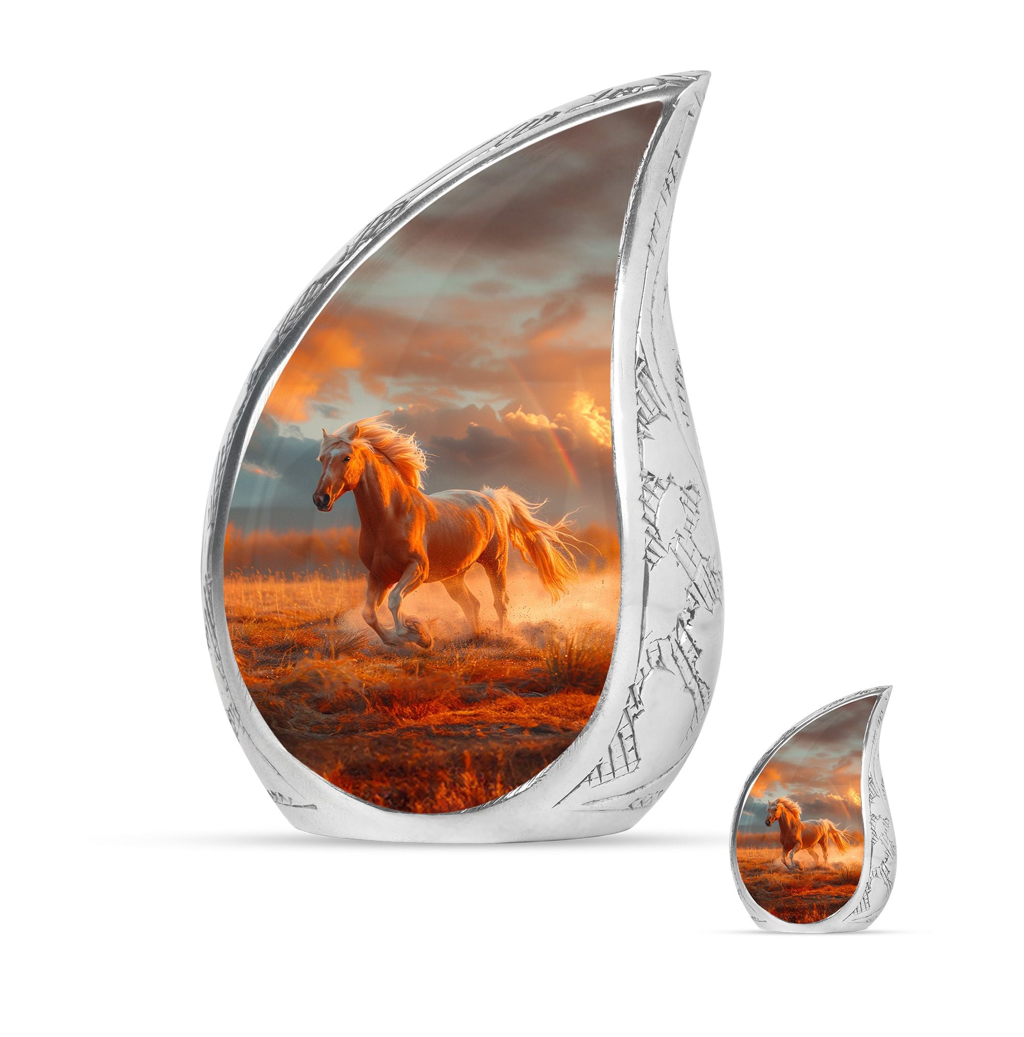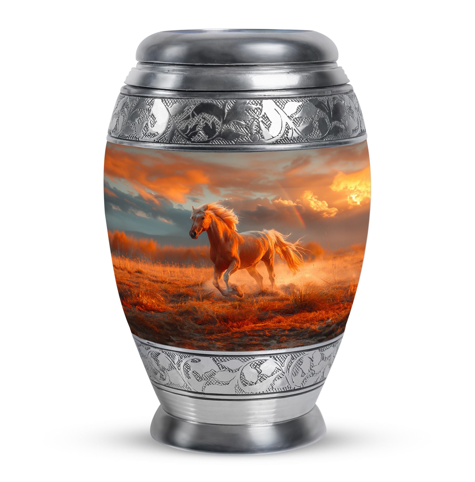 The Running Horse Cremation Urns for Human Ashes capture the strength, freedom, and grace of the horse, symbolizing a life lived with courage and determination. Paired with a sunset adult cremation urns design, these pieces reflect the beauty of life’s journey and provide a dignified resting place for your loved one.