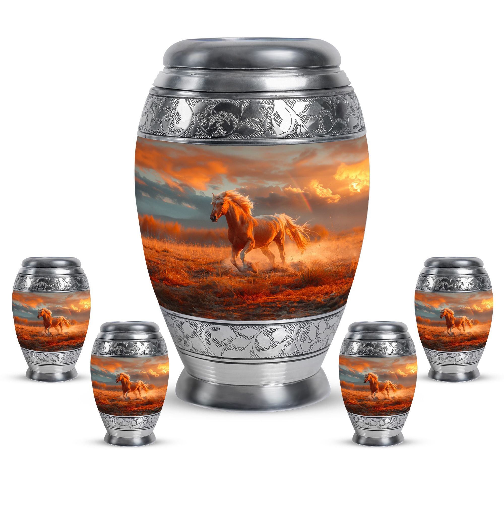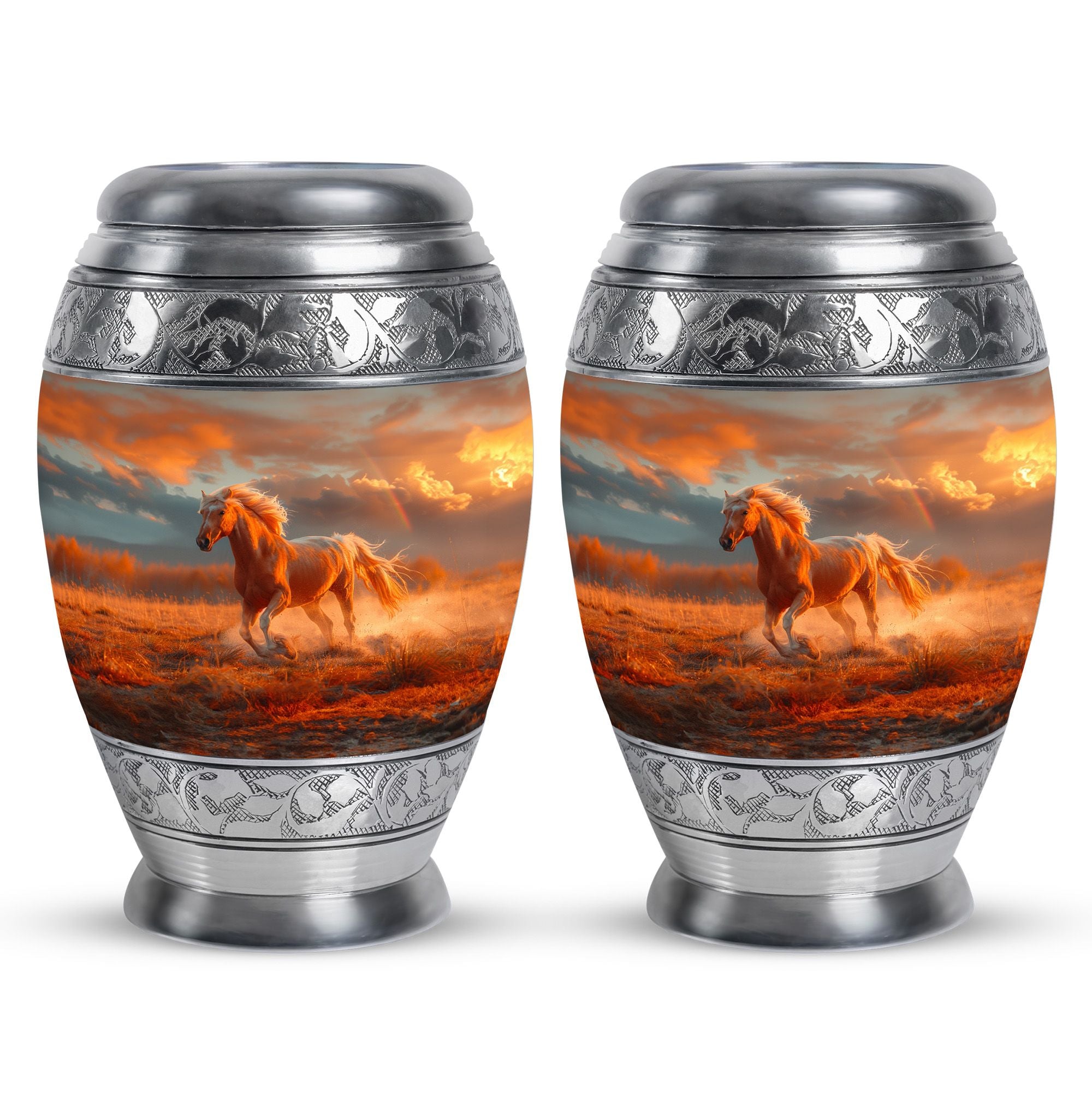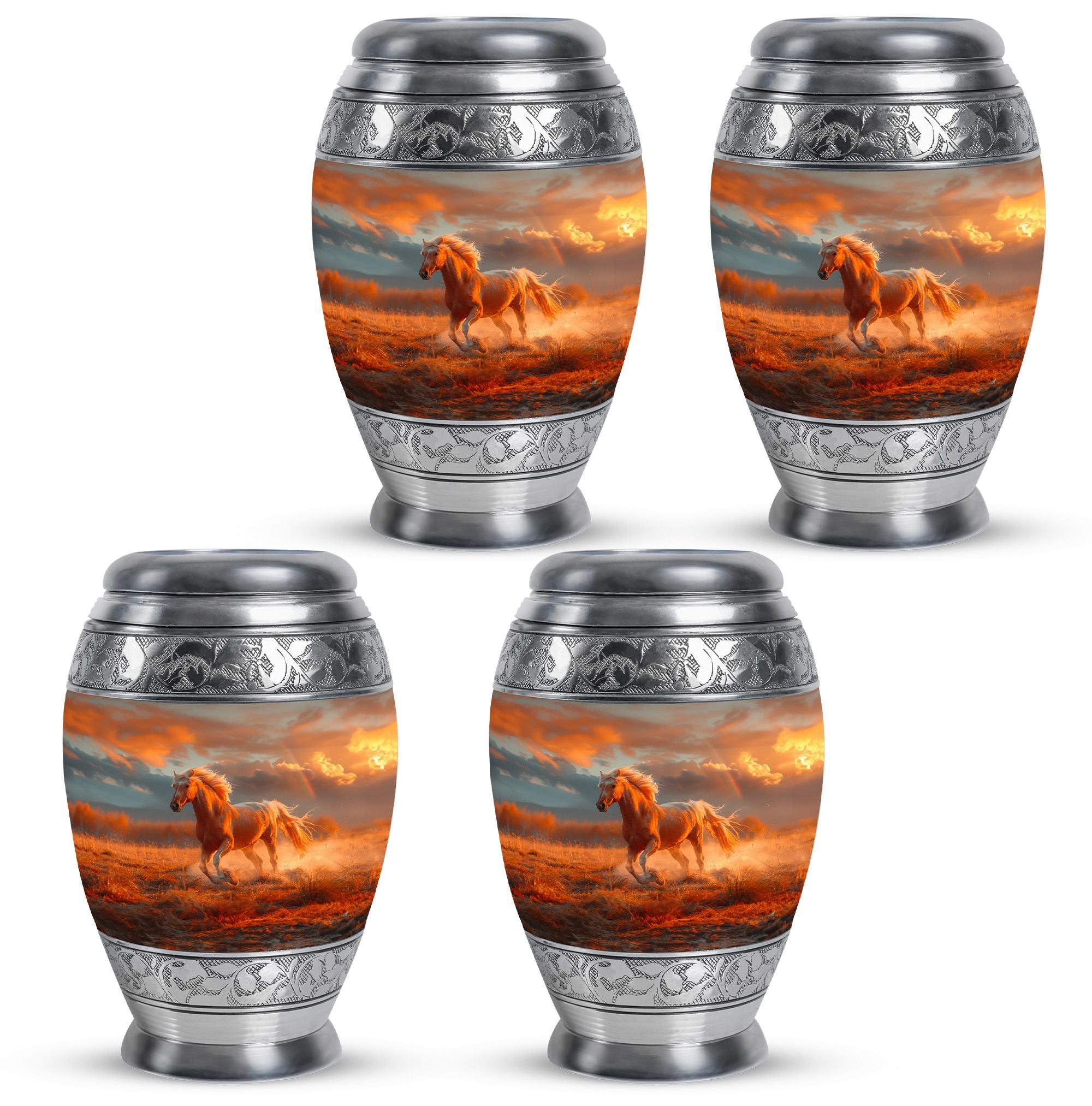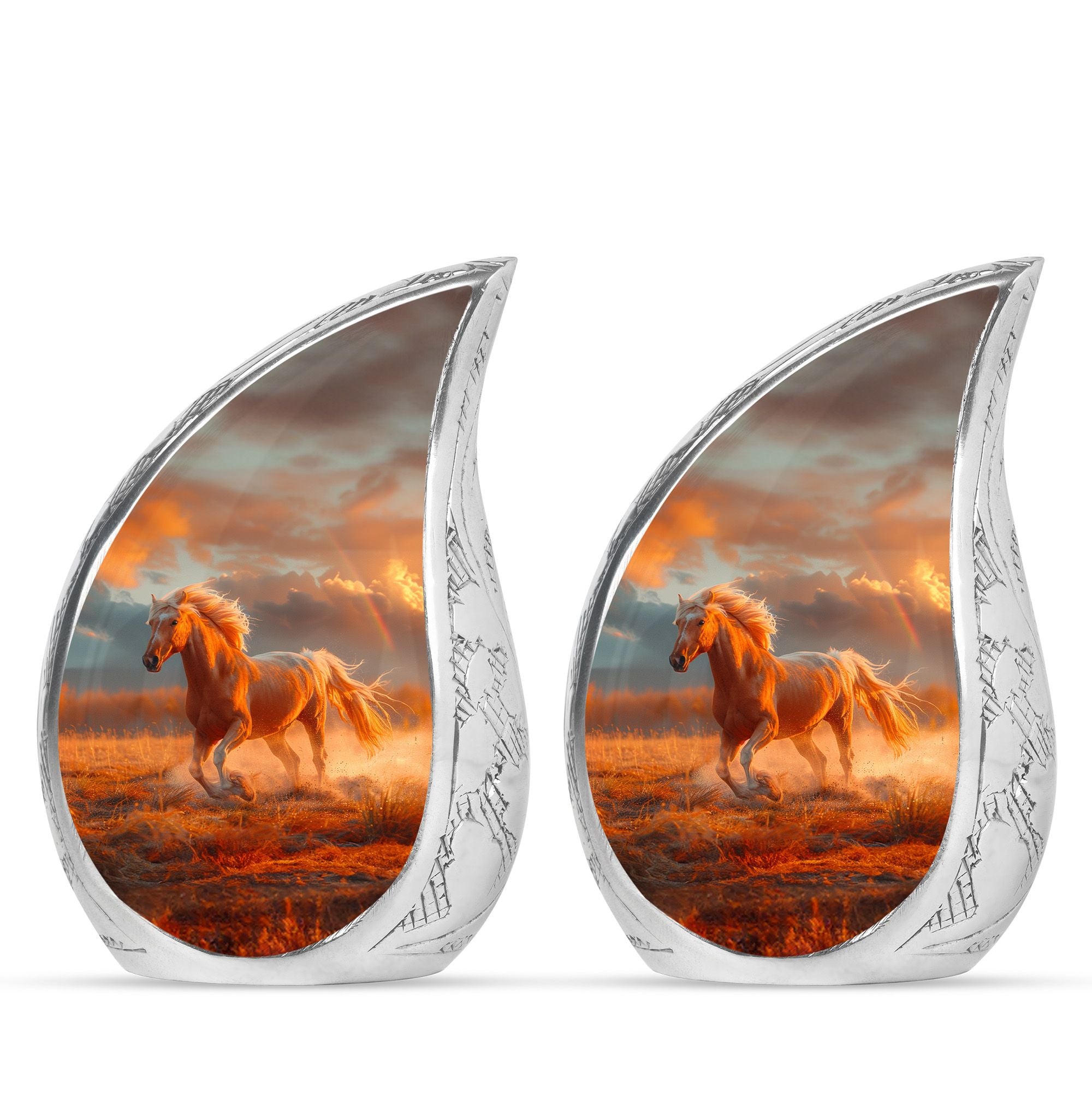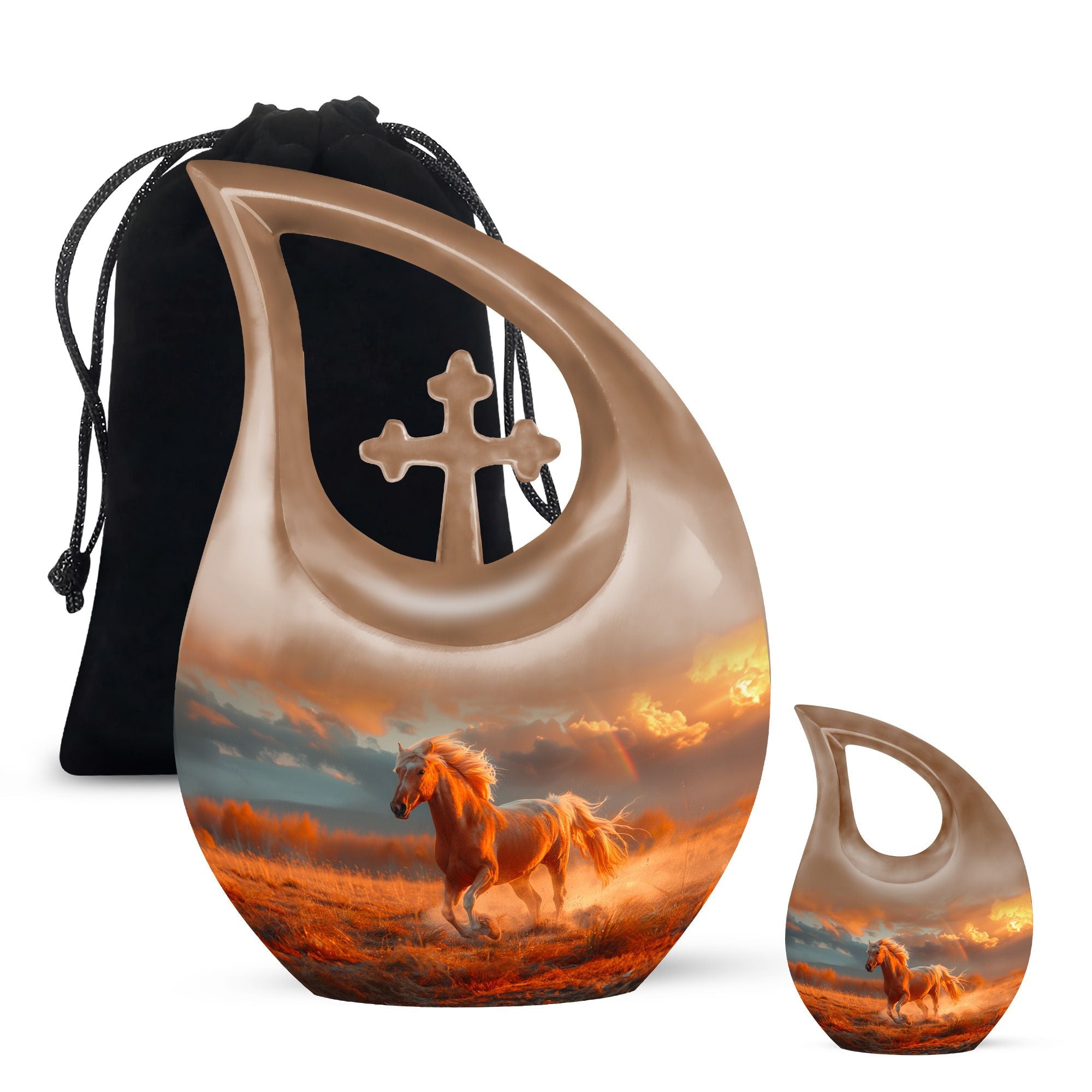 The Running Horse Cremation Urns for Human Ashes capture the strength, freedom, and grace of the horse, symbolizing a life lived with courage and determination. Paired with a sunset adult cremation urns design, these pieces reflect the beauty of life’s journey and provide a dignified resting place for your loved one.