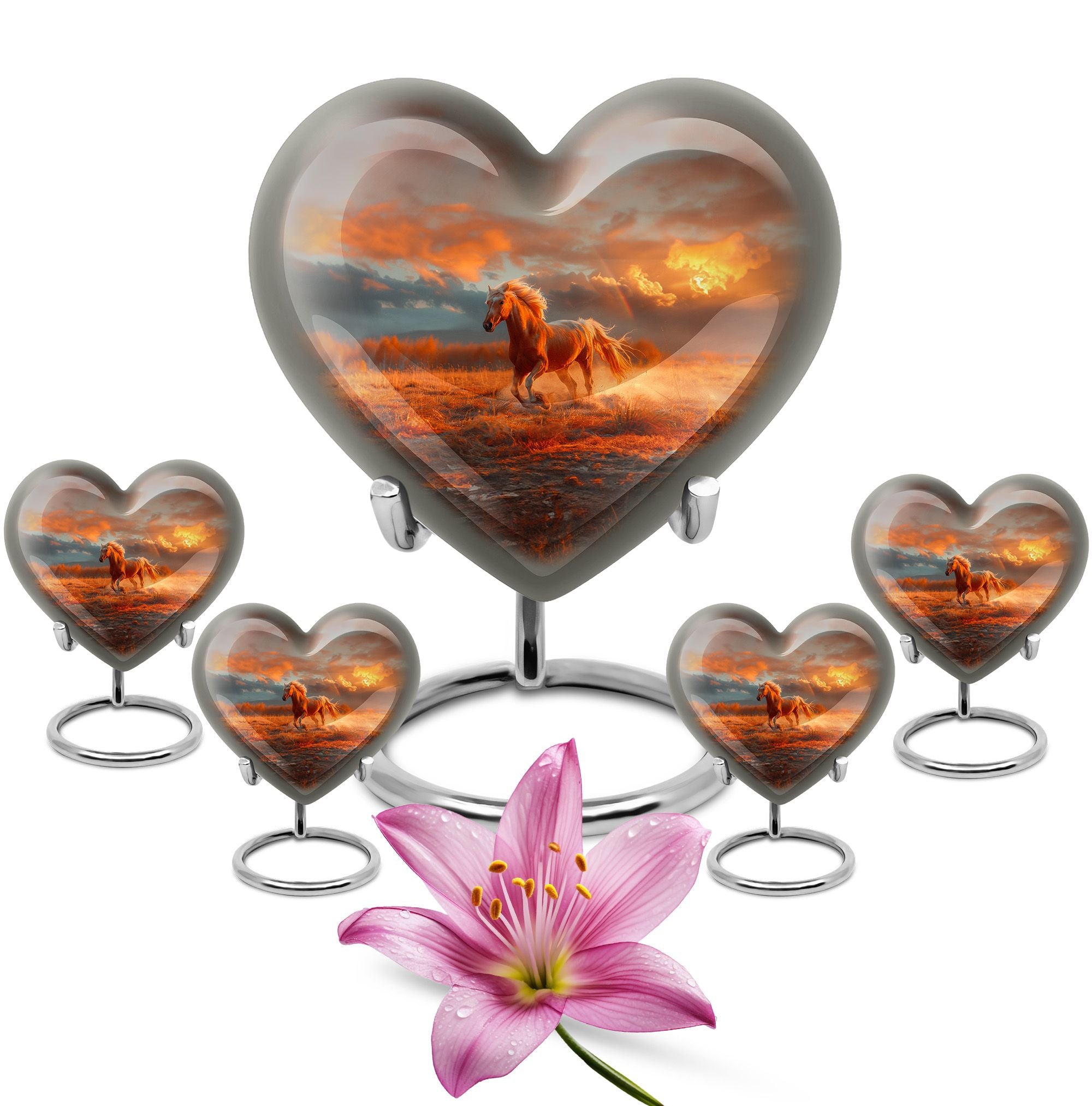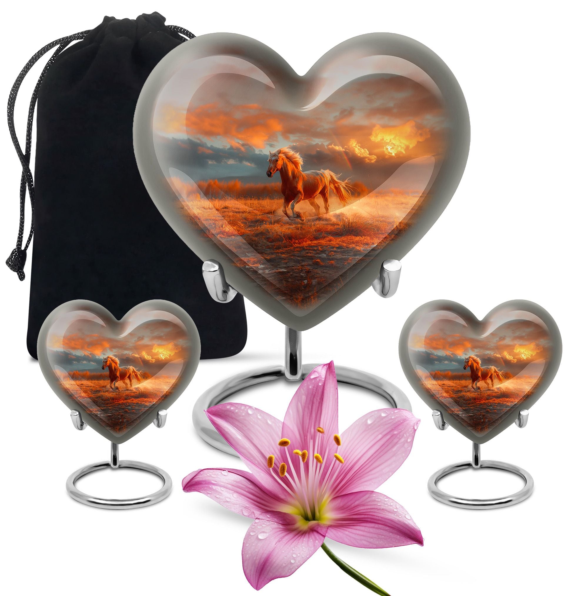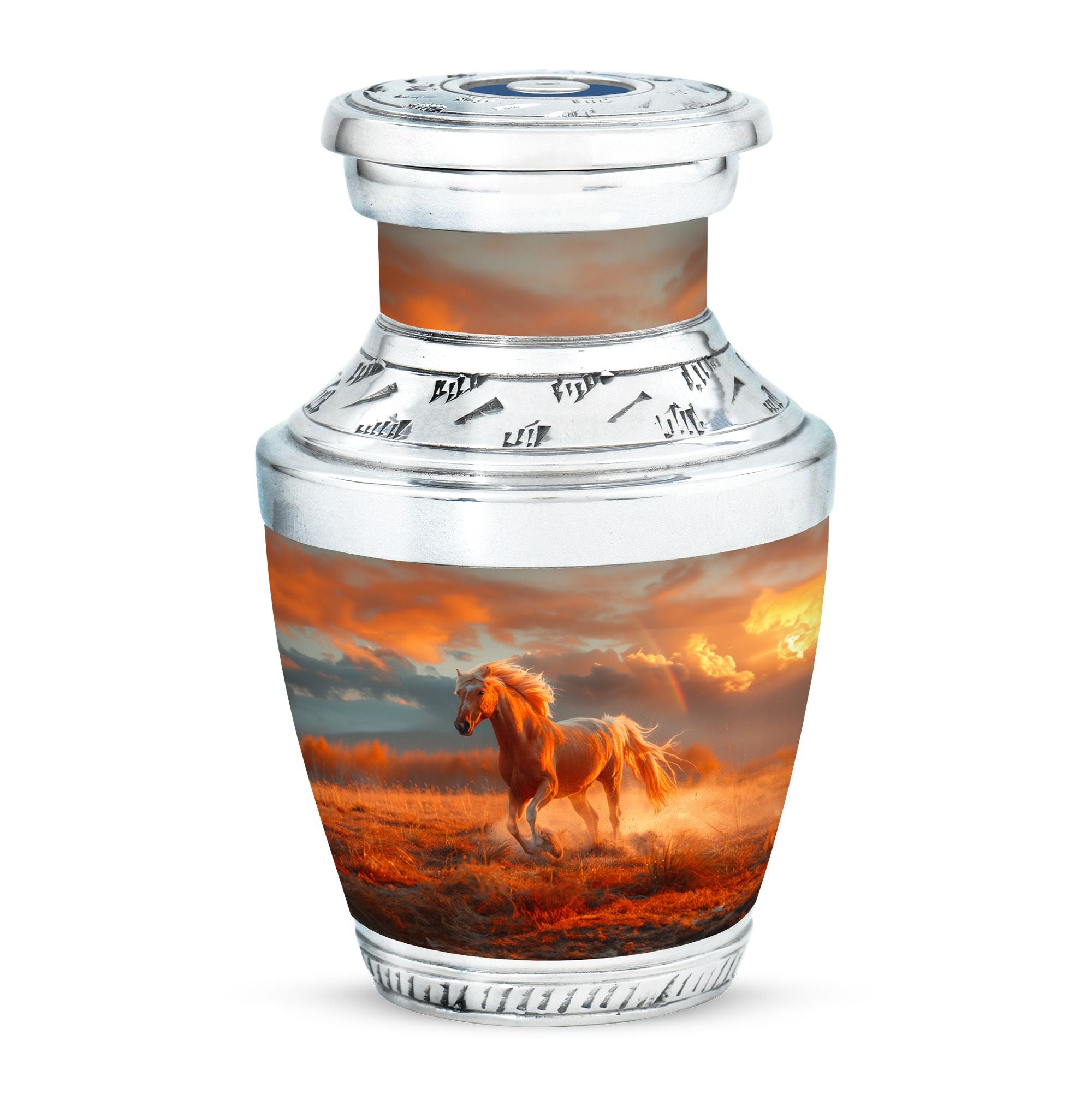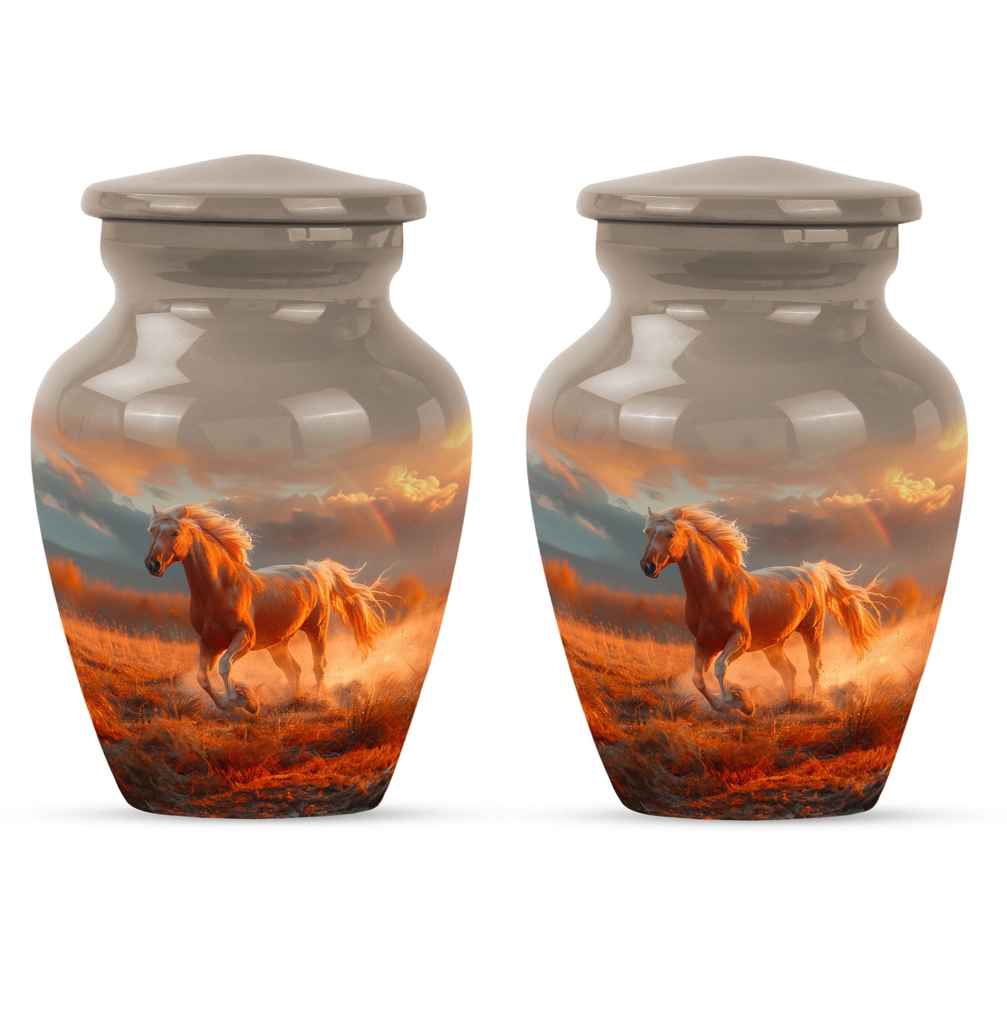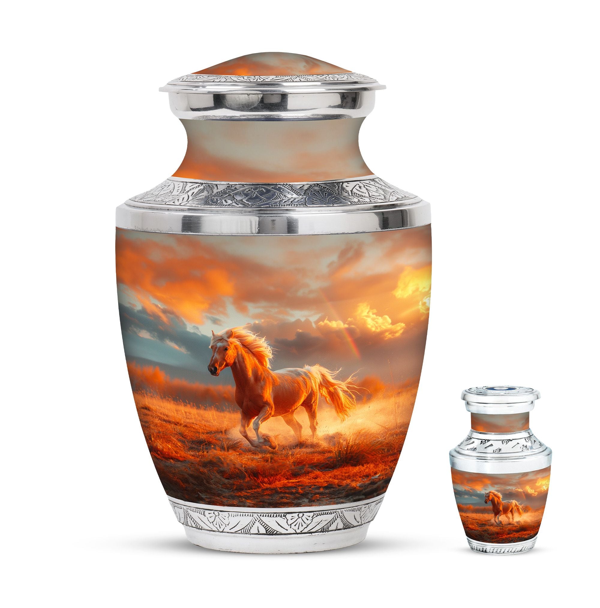 The Running Horse Cremation Urns for Human Ashes capture the strength, freedom, and grace of the horse, symbolizing a life lived with courage and determination. Paired with a sunset adult cremation urns design, these pieces reflect the beauty of life’s journey and provide a dignified resting place for your loved one.