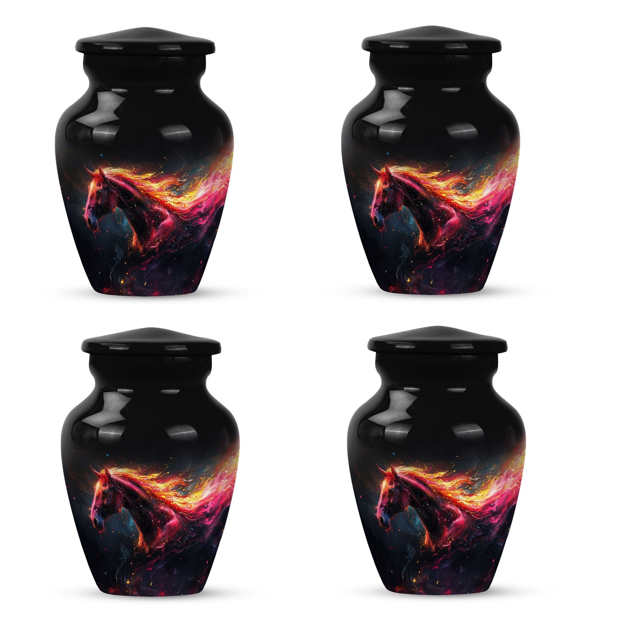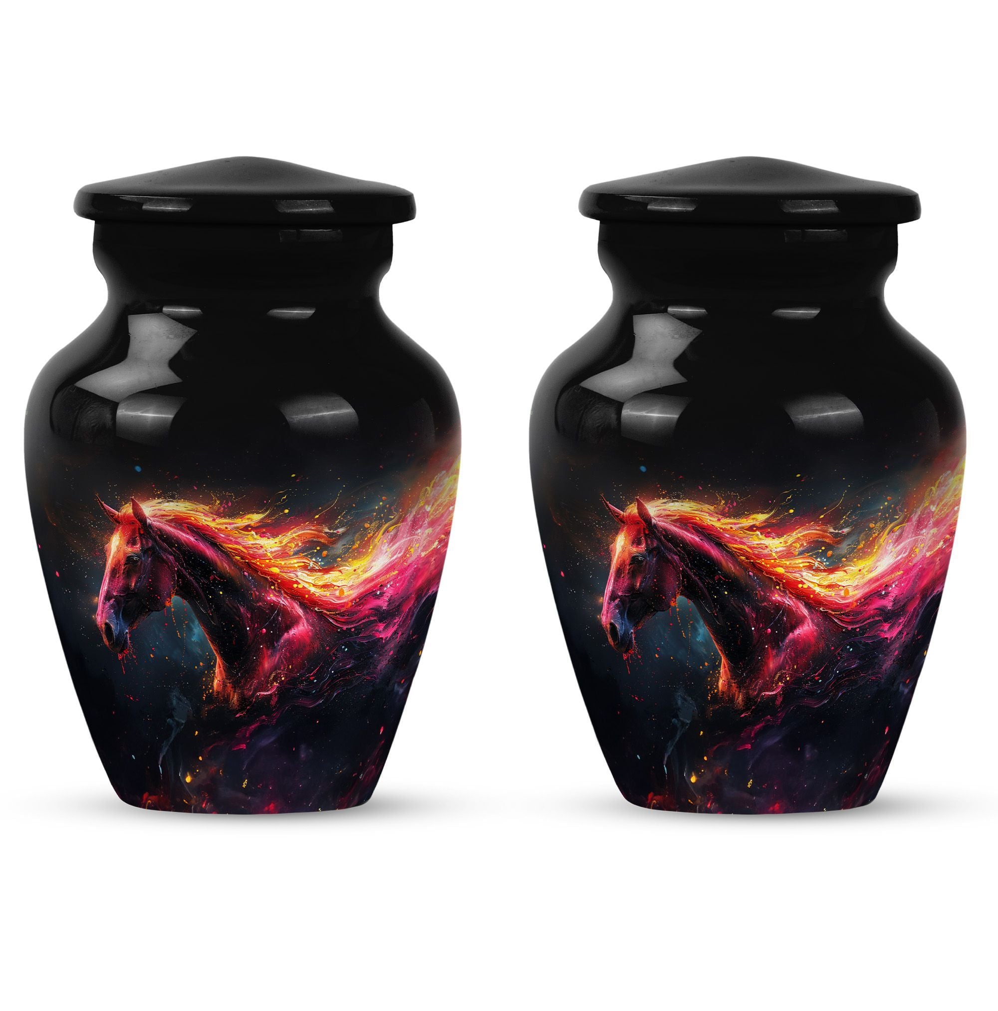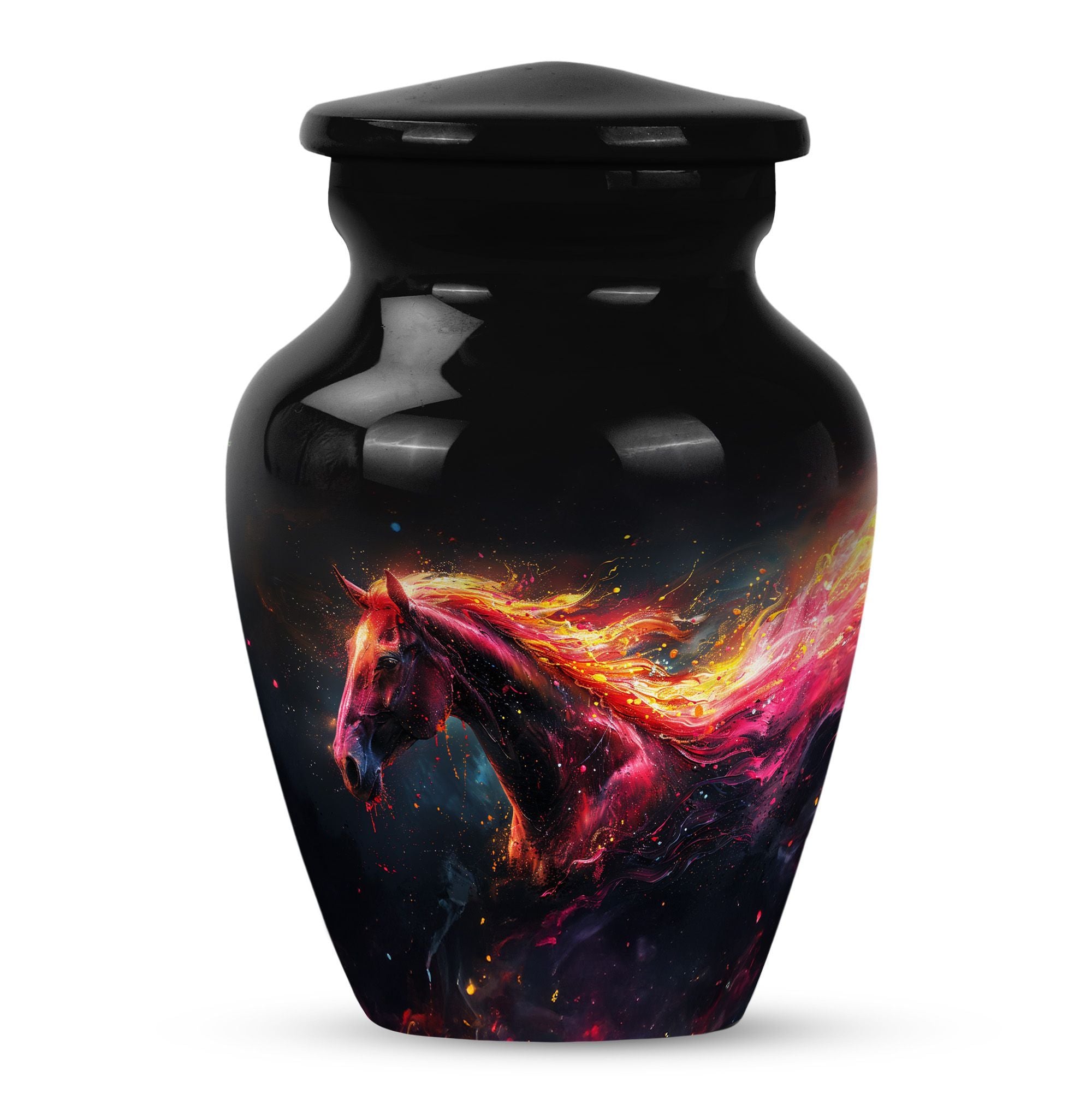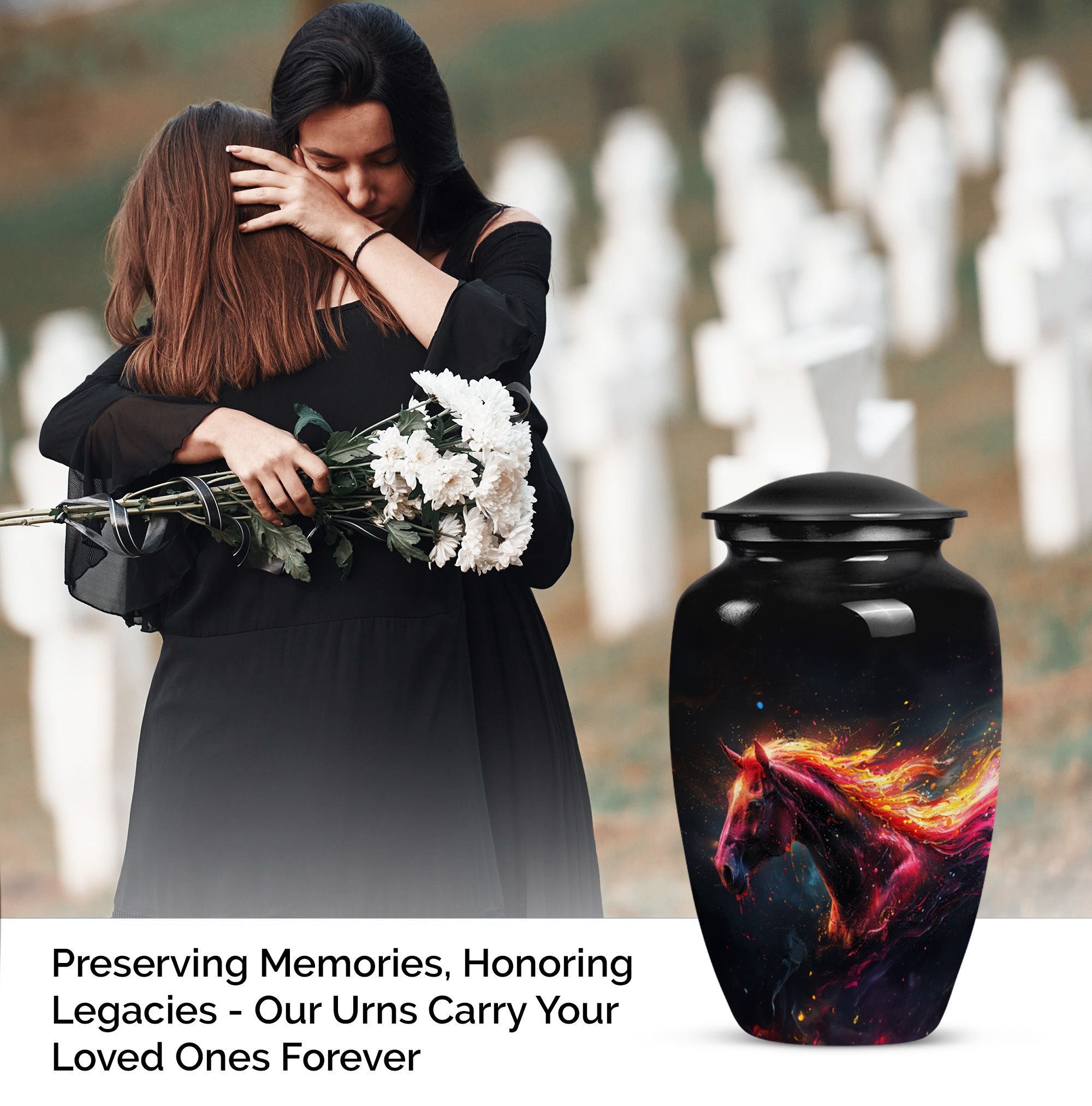 For those seeking closure and grandeur, this 10-inch Horse Urn is a touching and robust testament to your loved one's memories. Crafted from durable Aluminium, this 3.3 pound 'funeral urn for men ashes' provides a fitting vessel for honoring those who lived fully and loved with intensity. Boasting a capacity of 200 cubic inches, it impeccably infuses magnitude and meaning into the mourning process. The abstract theme adds a touch of timeless artistry, making it a stand-out among 'Large Urns.' Every package is complete with a tender velvet pouch to faithfully hold the ashes. We further offer personalized engravings to add a touch of individuality, ensuring every memory is immortalized caring. This 'cremation urn' strikes a sumptuous balance between mourning and celebration, making it an exceptional pick within our 'Adult Urns for Ashes' and 'Decorative Human Ashes Urns' collection. Unleash the freedom of loving memory with the Horse Urn.