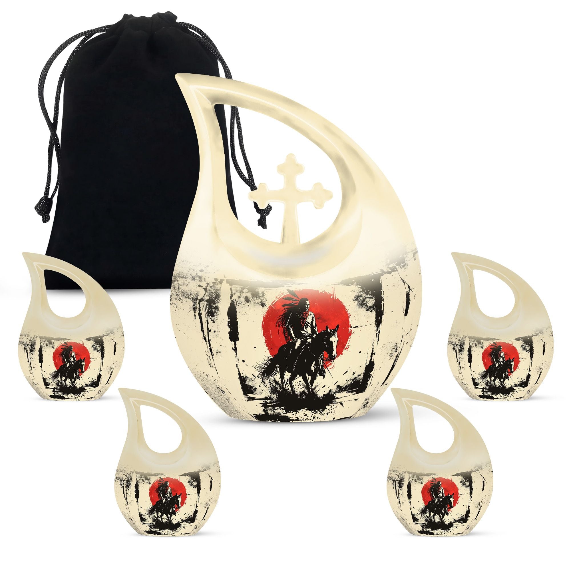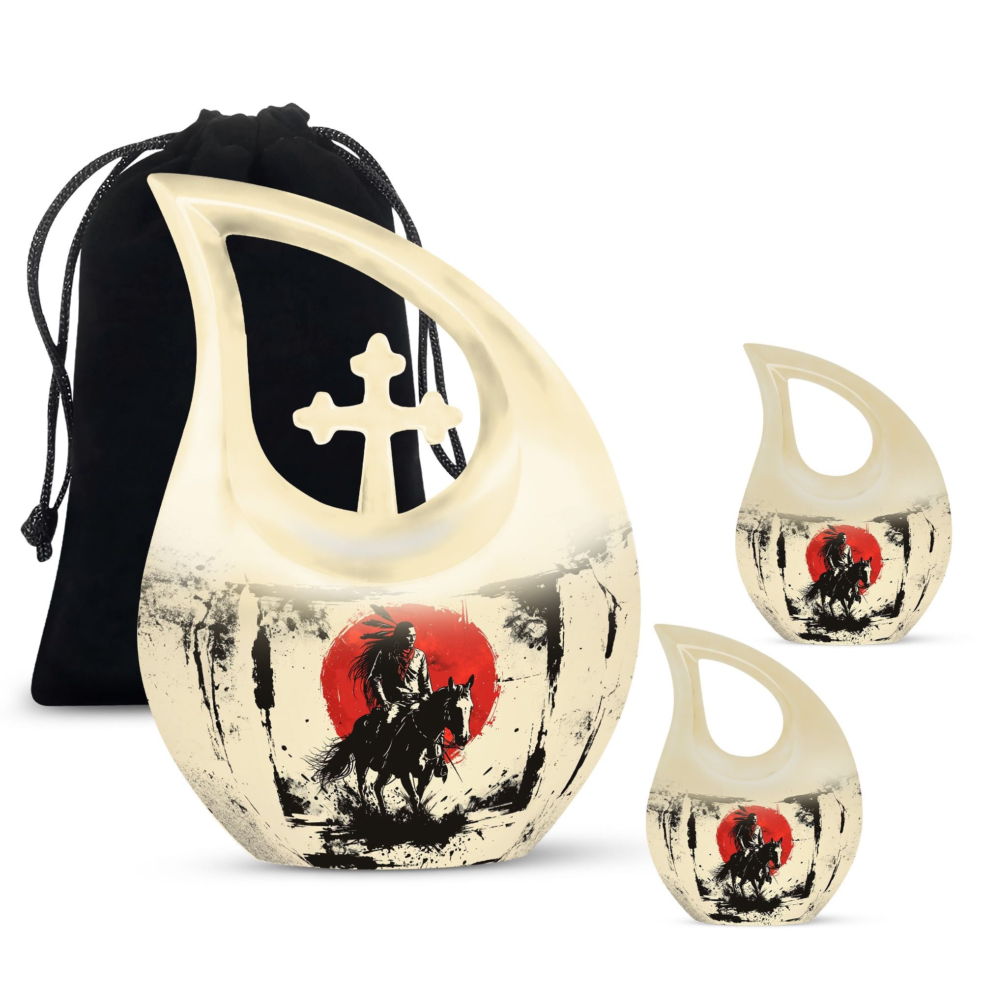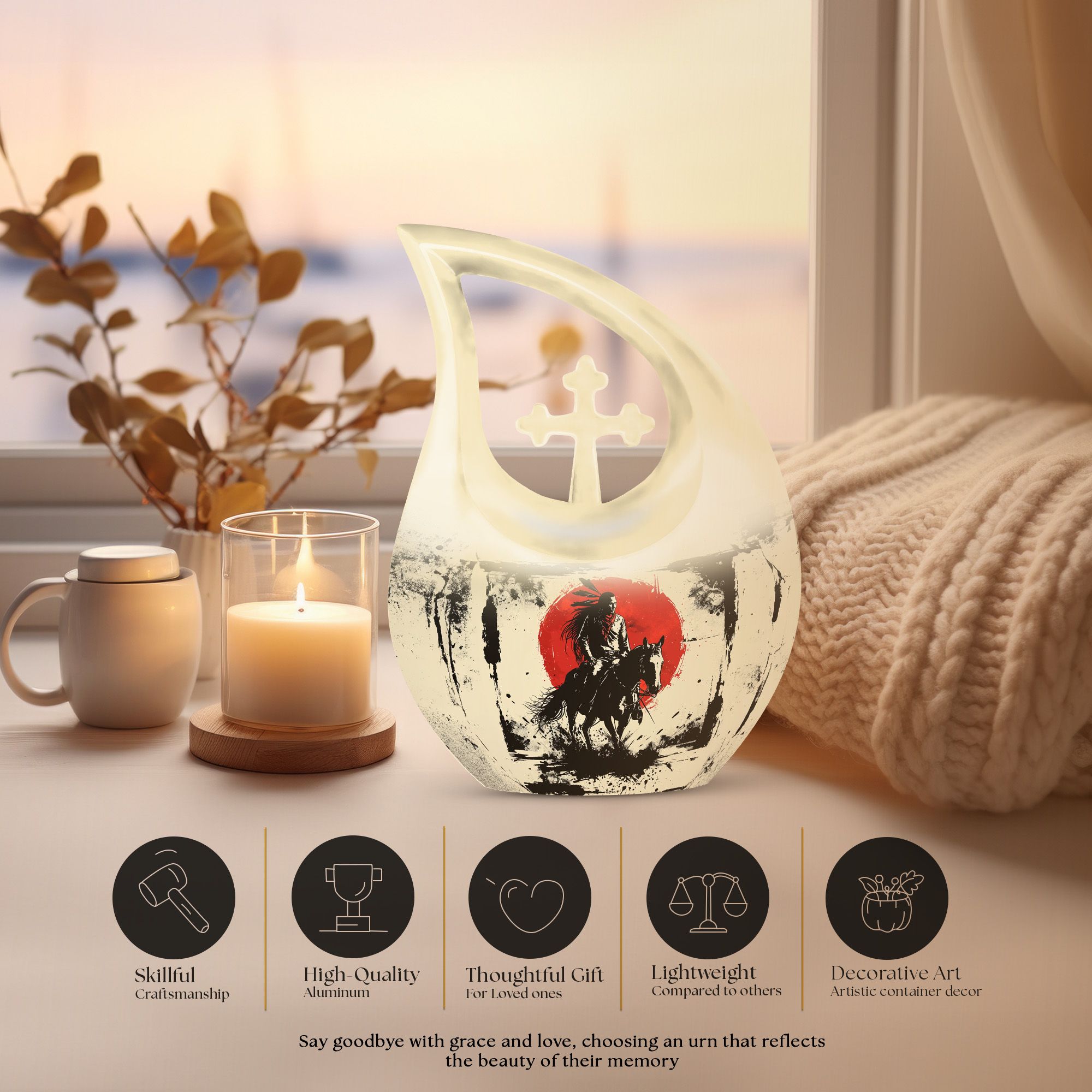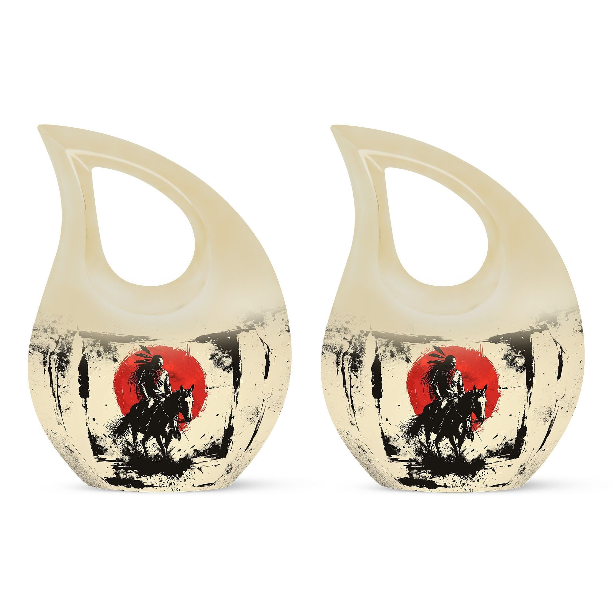 Honor the spirit and strength of your loved one with this Native American Horse Rider Cremation Urn, a meaningful tribute designed to offer peace and remembrance. Its powerful artwork makes it ideal for families seeking unique urns for human ashes or a beautifully detailed funeral ashes urn that reflects courage, heritage, and eternal connection.