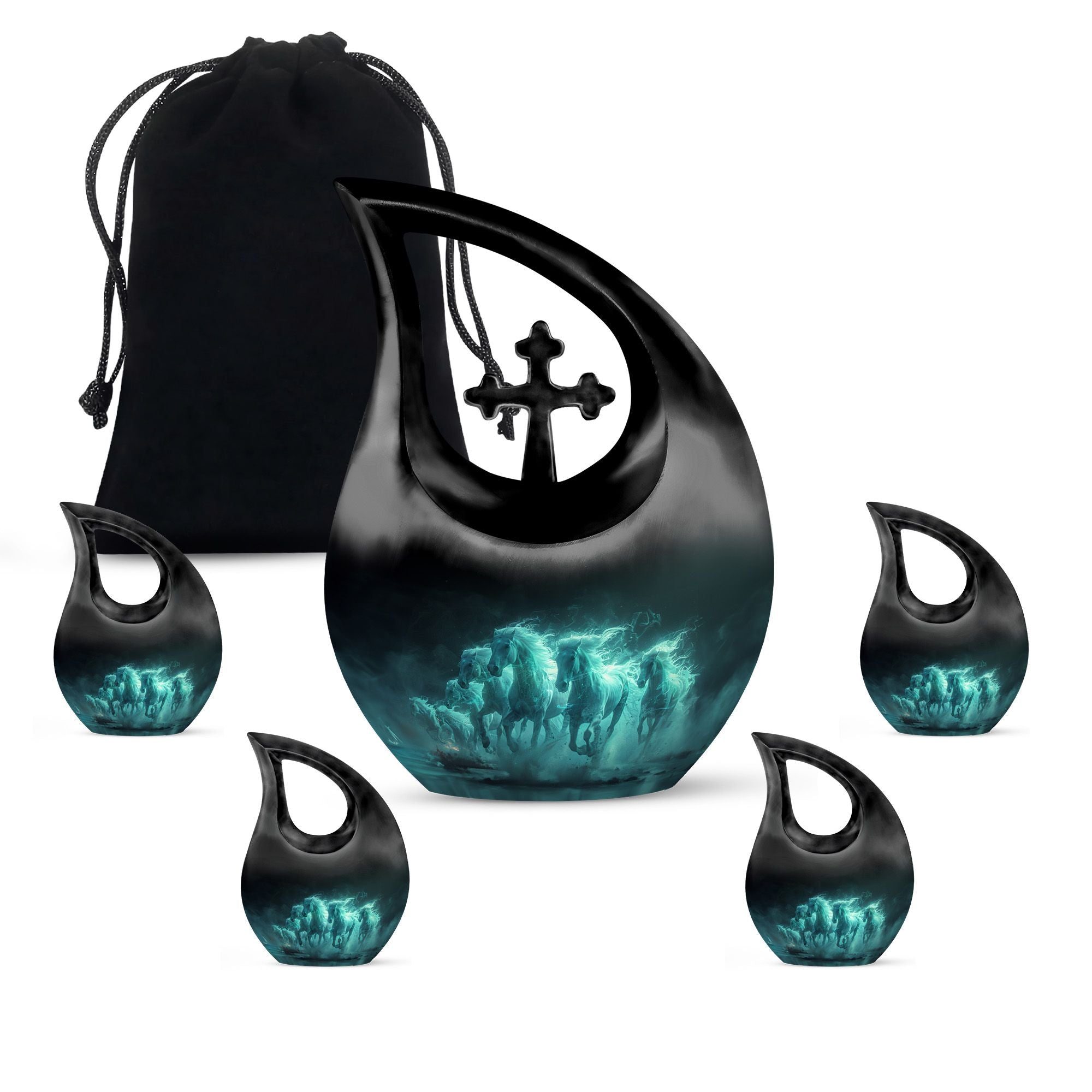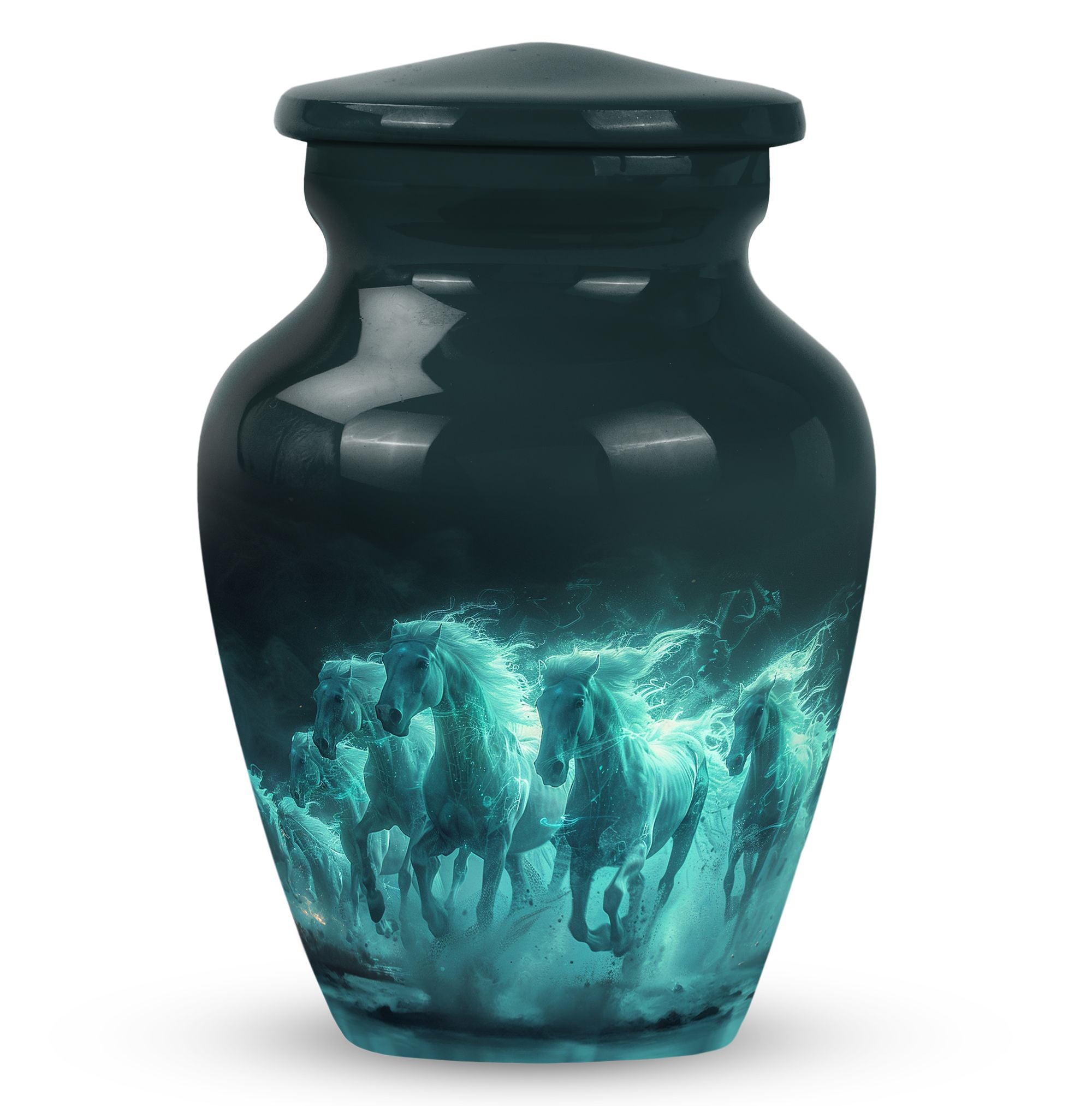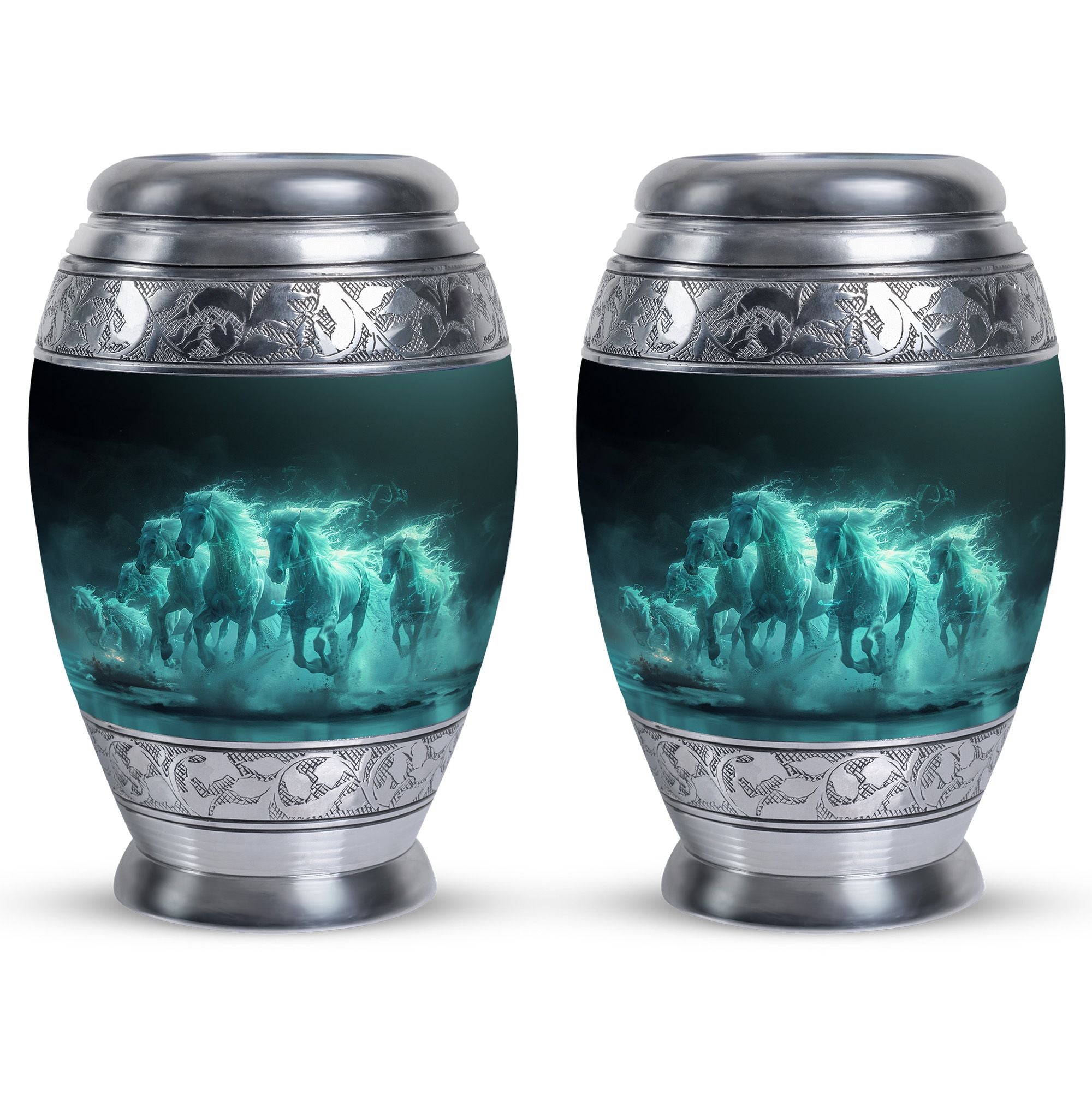 Choosing this cremation urn means giving a loved one a dignified resting place that reflects their spirit. Whether you are looking for funeral urns for men, funeral urns for women, or a symbolic urn for women & men, the Mist Horses design offers beauty, strength, and heartfelt remembrance.