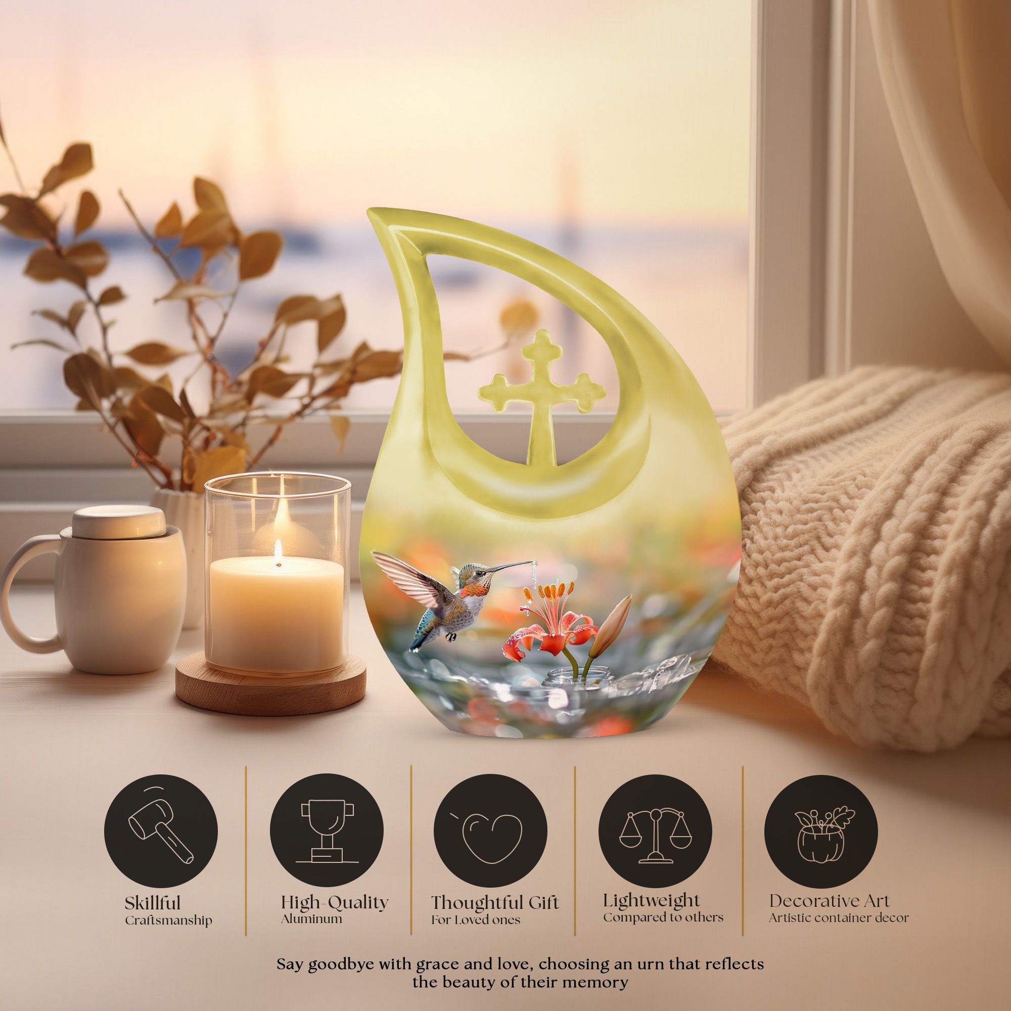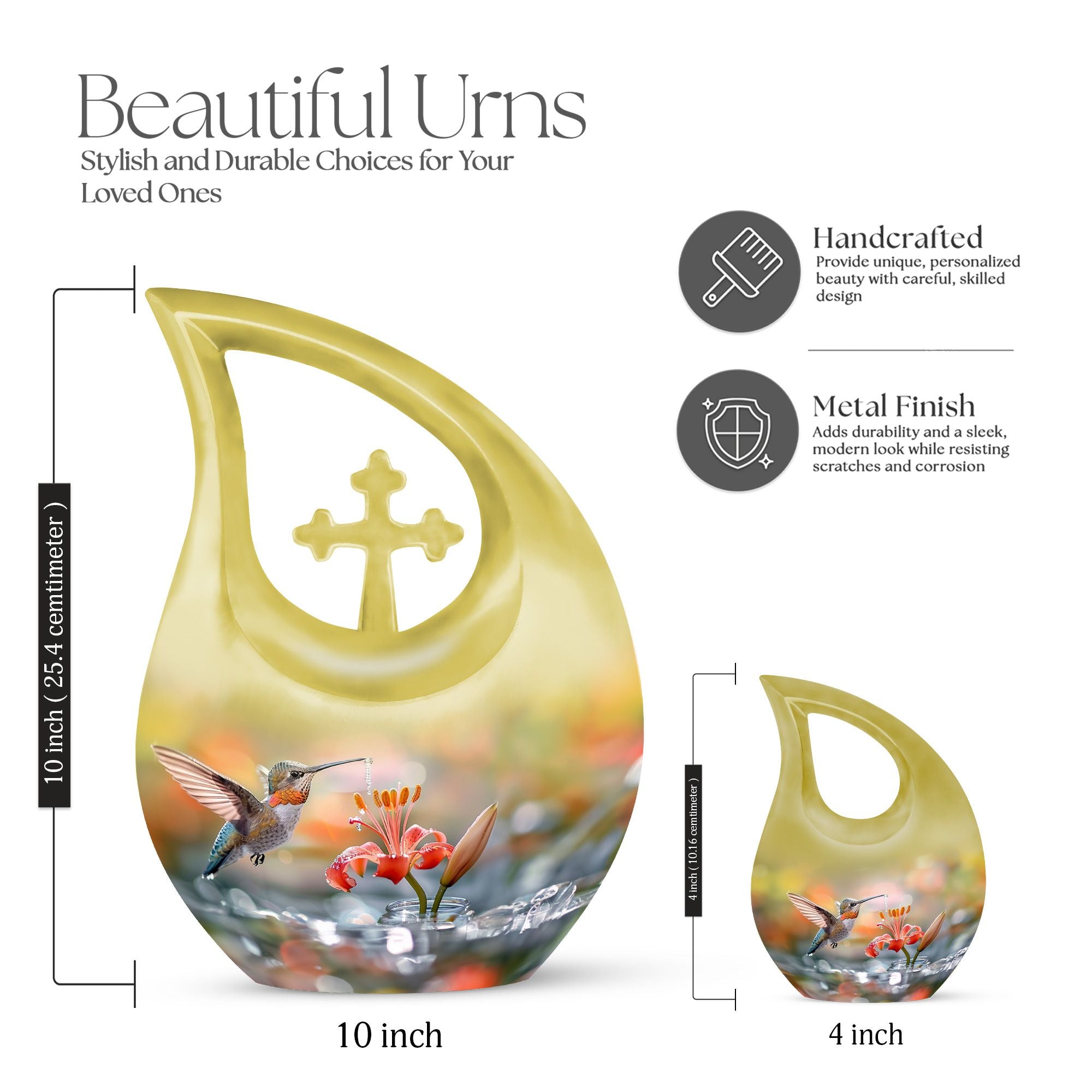 Humming Bird Memorial Urn - 10 Inch Aluminium Cremation Urn For Adult