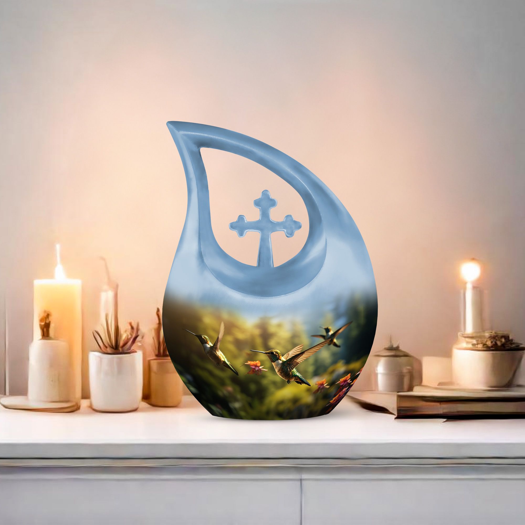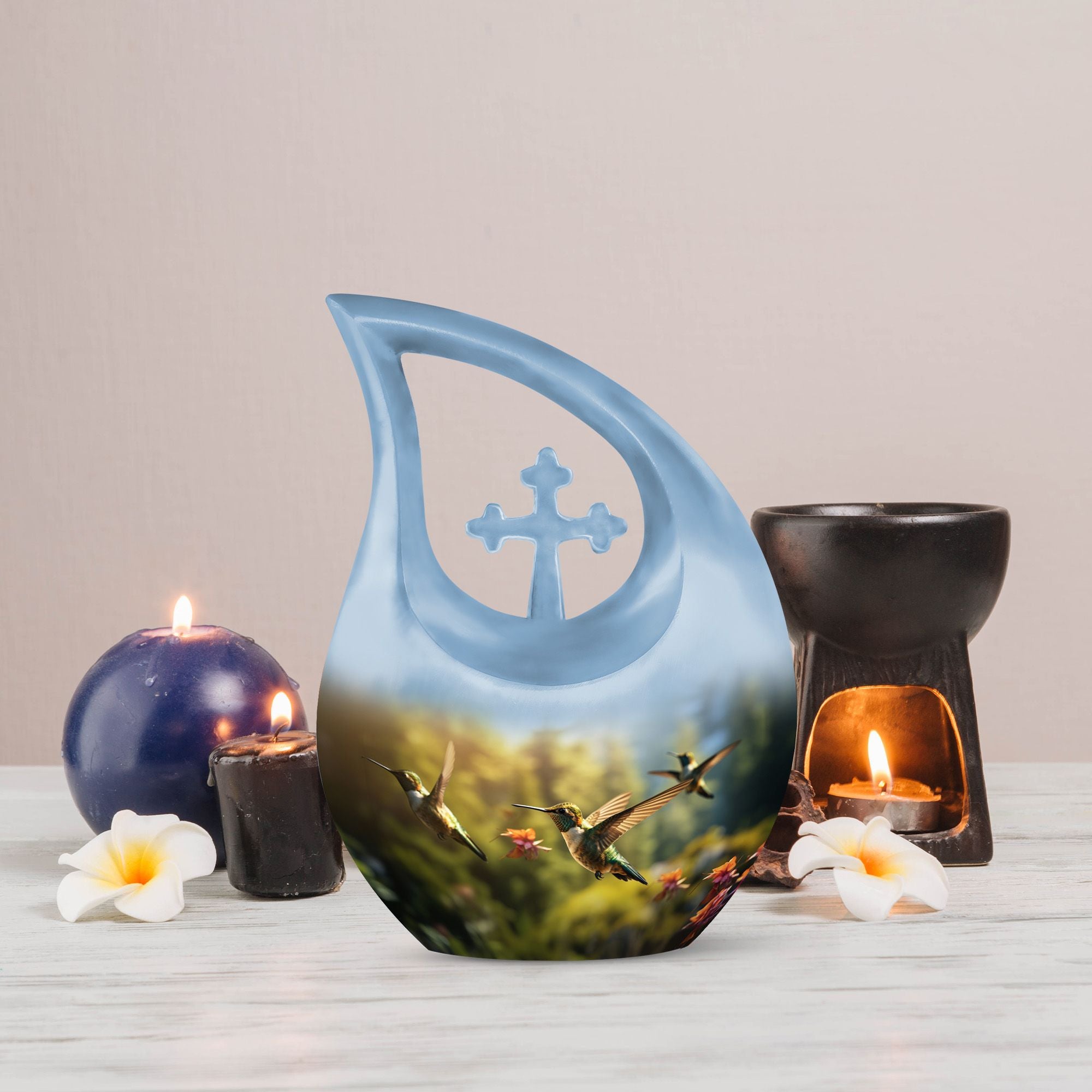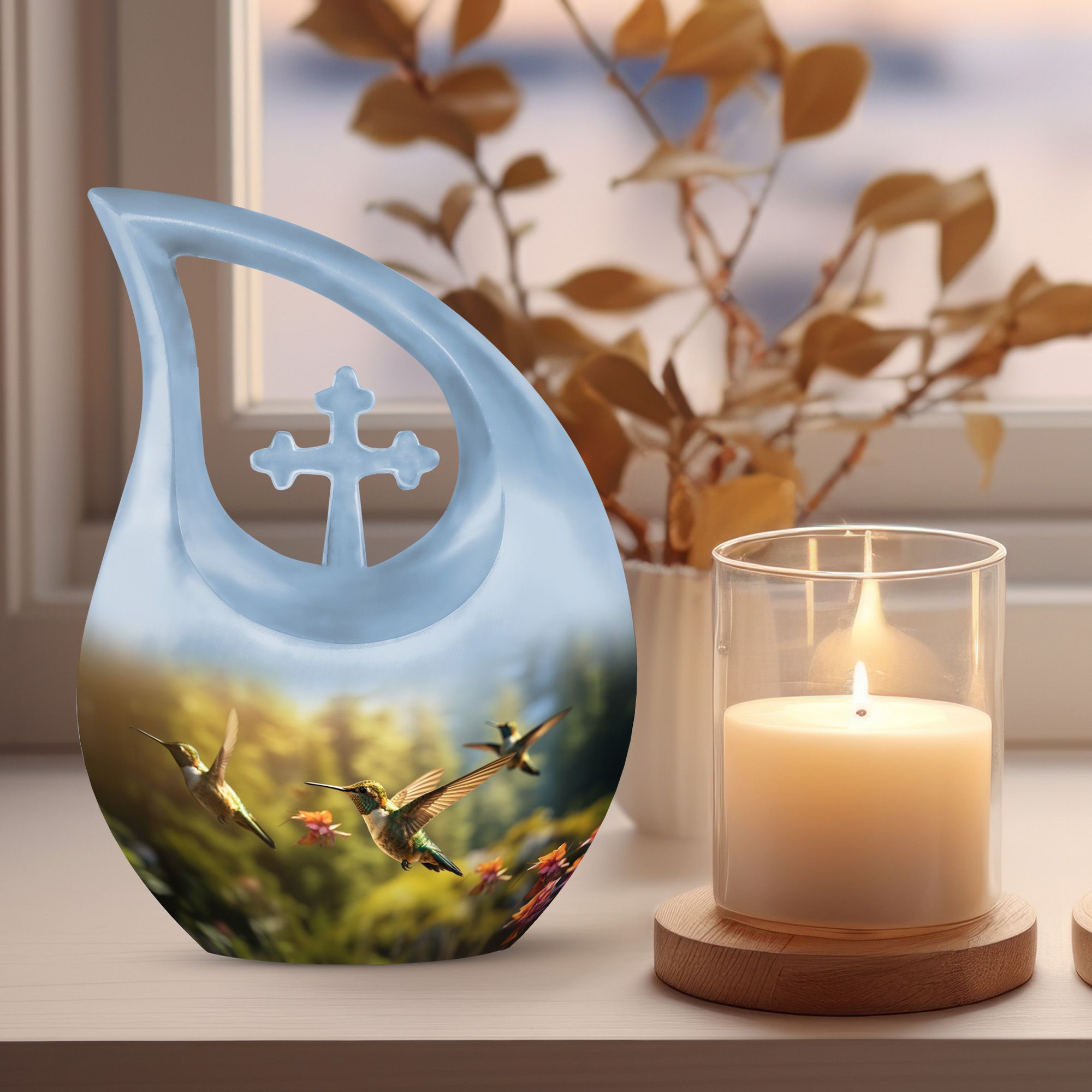 Honor the life and legacy of your loved one with the Flying Humming Bird Family Scenic Urn, a timeless piece symbolizing love, freedom, and remembrance. This beautifully detailed urn embodies peace and serenity, making it a heartfelt choice for families seeking large urns for human ashes or cremation urns large adult to preserve cherished memories with grace.