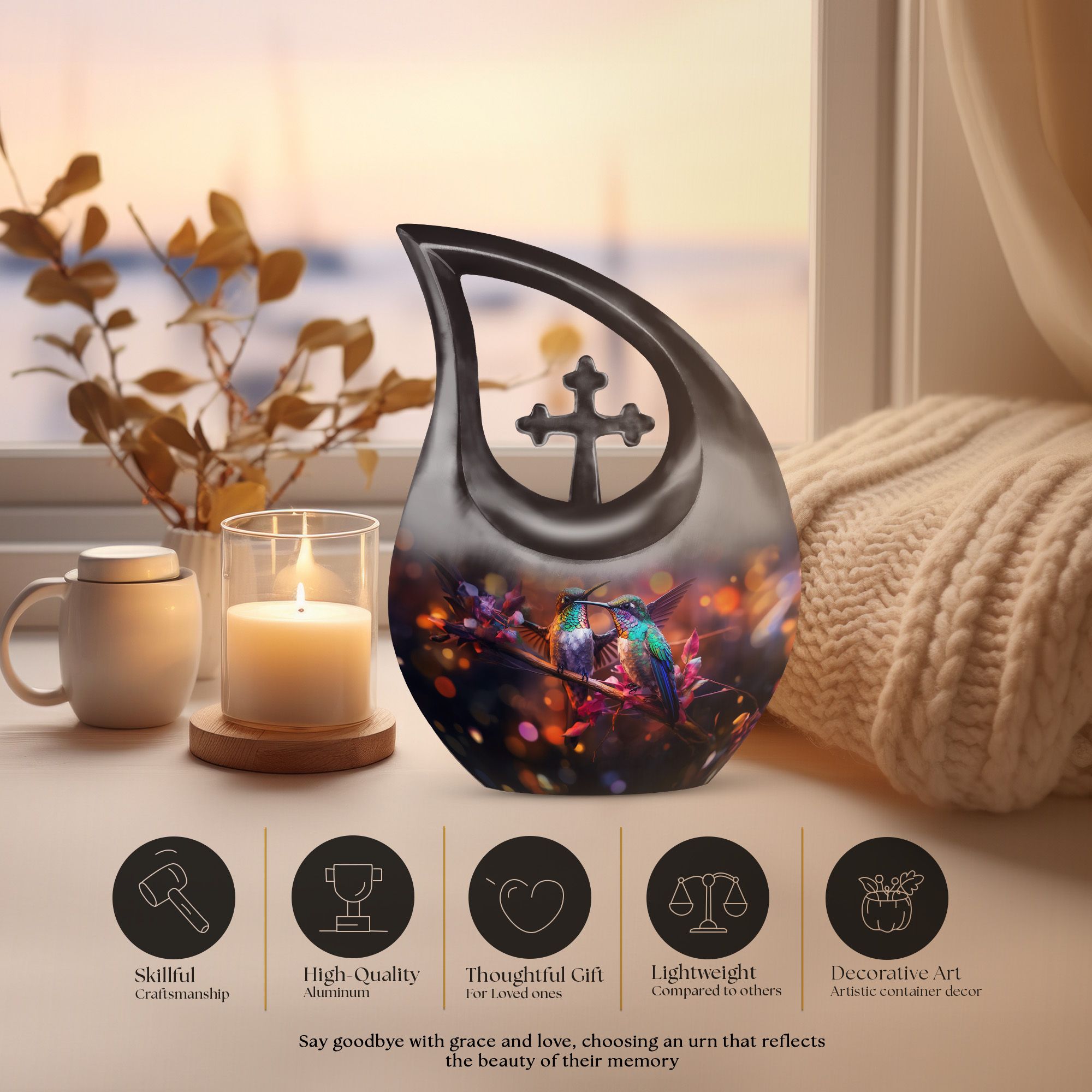 The Colorful Humming Bird Urn offers a peaceful and uplifting way to honor a cherished life. Designed to bring comfort through its vibrant hummingbird artwork, it is a meaningful choice for families seeking an urn for men & women or cremation urns for ashes for women that reflect love, hope, and joyful remembrance.