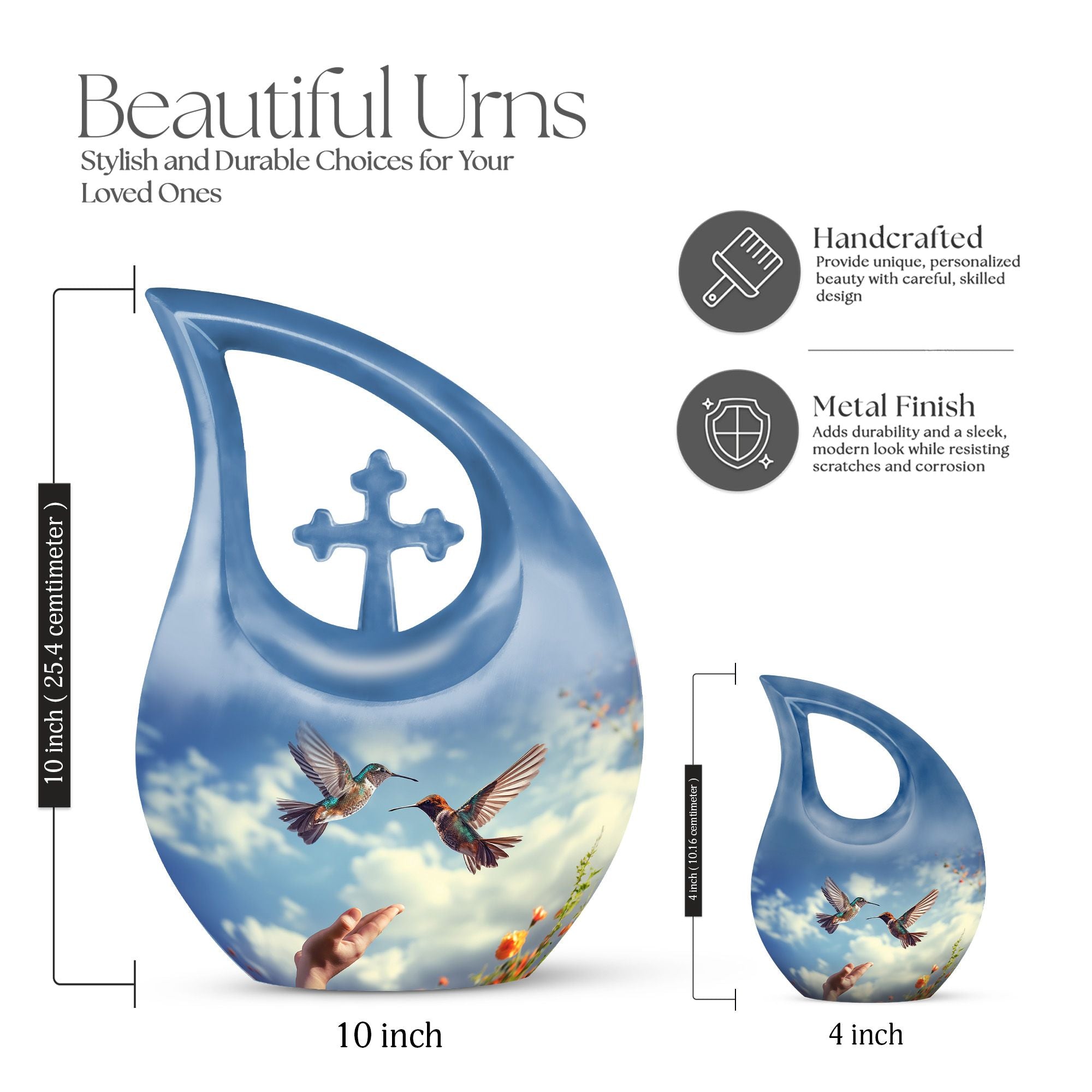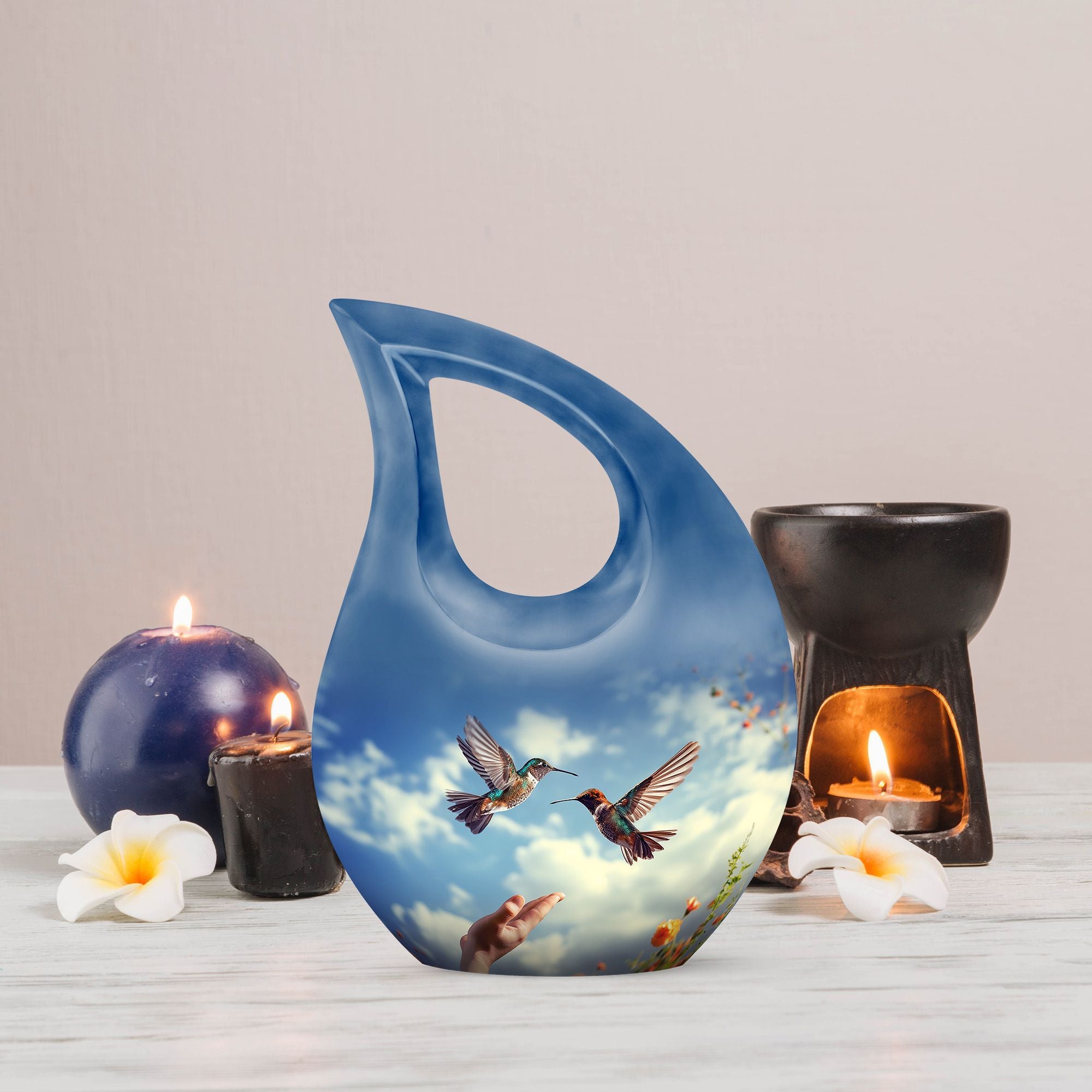 This Humming Bird Pair Memorial Urn offers a peaceful and heartfelt way to honor a loved one, symbolizing unity, love, and the eternal bond between souls. Its serene artwork and gentle colors bring comfort to families seeking a dignified tribute, especially those needing a large urn for ashes adult male or a beautifully crafted large urn for ashes for women.