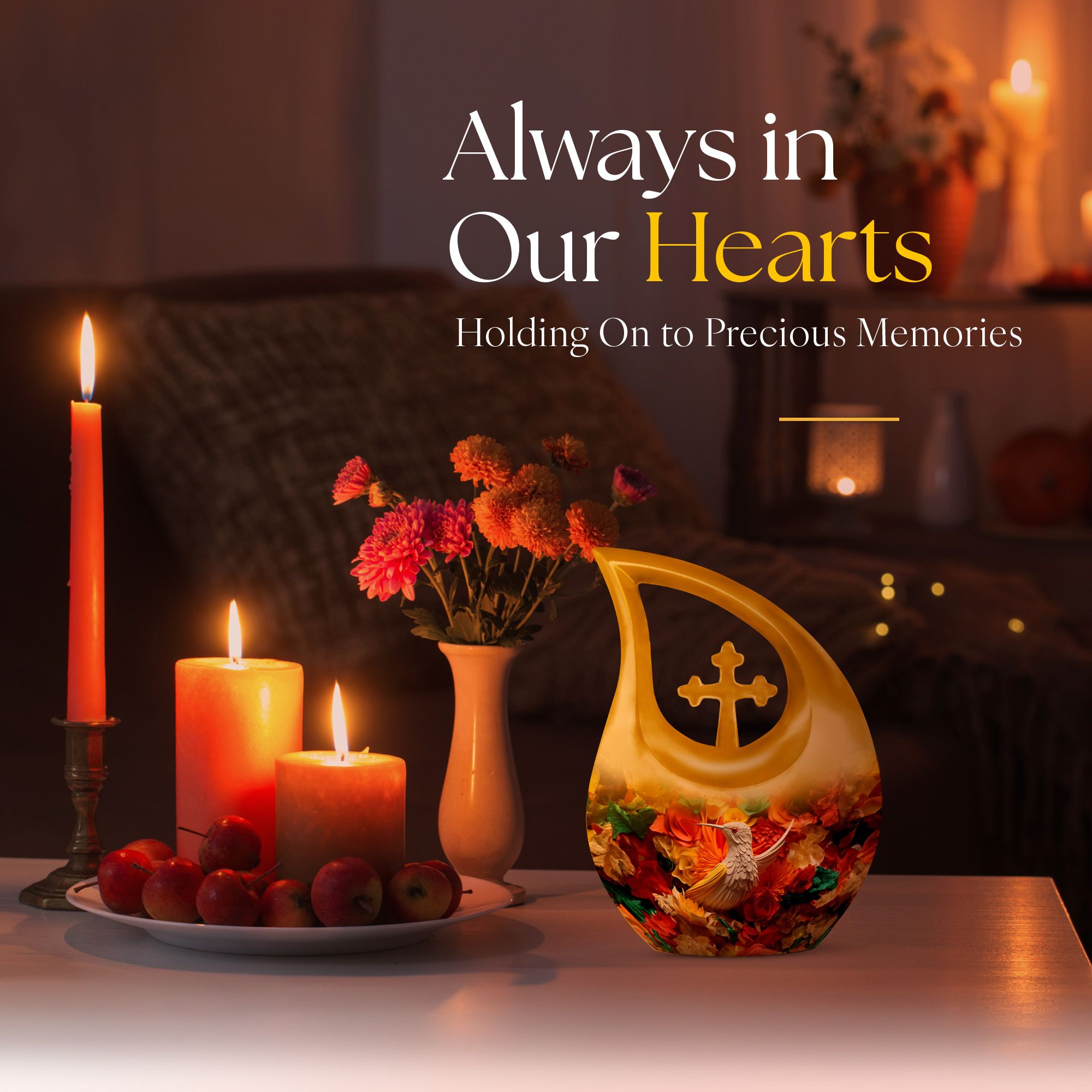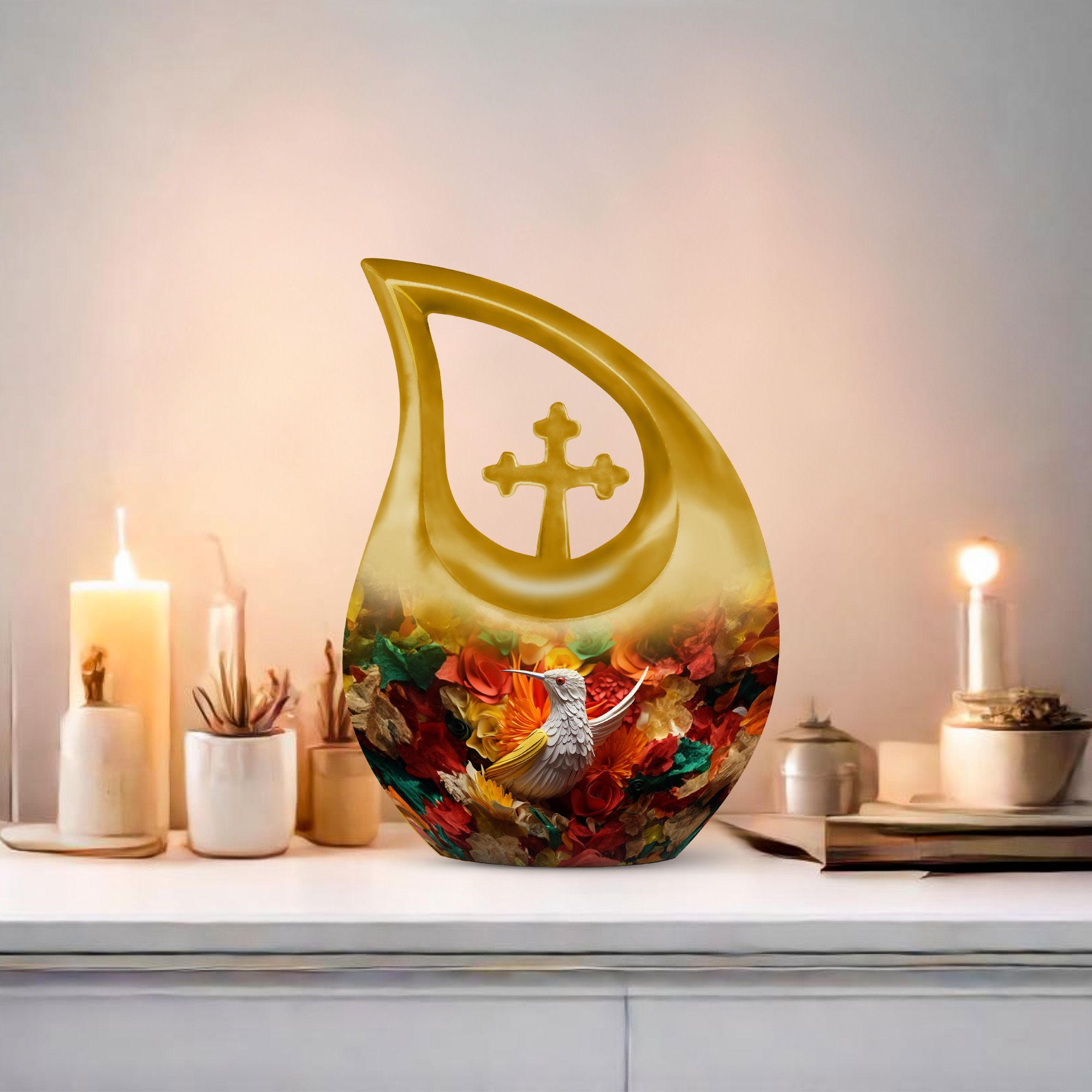 This humming bird memorial urn offers a touching combination of beauty, symbolism, and peace—perfect for families seeking a heartfelt tribute. Its vibrant colors and delicate design create a comforting reminder of love that continues to bloom.