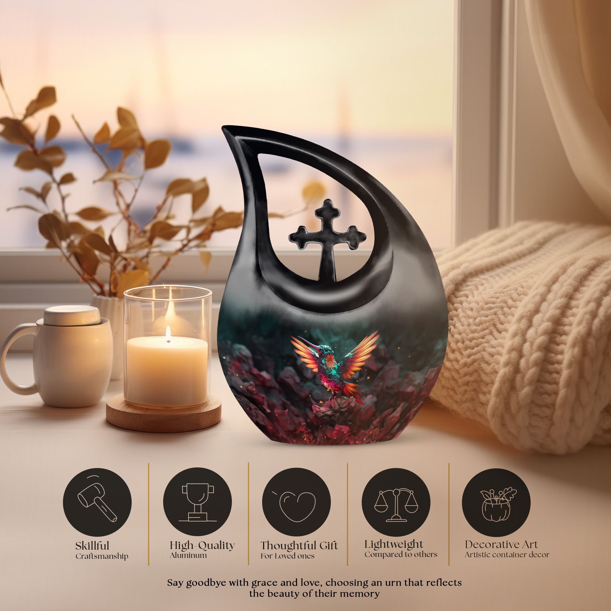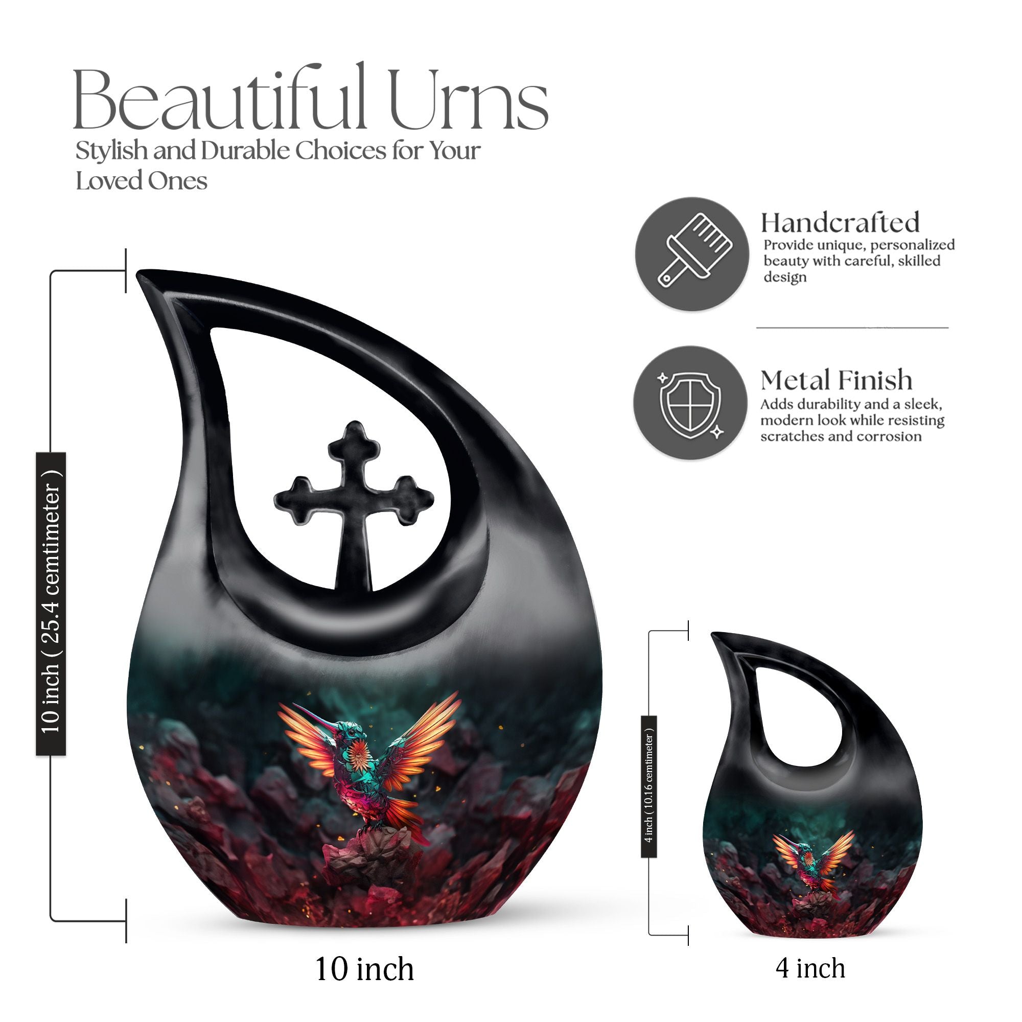 Designed with exquisite detailing, this urn features a stunning hummingbird motif symbolizing hope and spiritual connection. Made to serve as a large urn for ashes for women, as well as large urns for human ashes adult female, it is crafted from high-quality aluminum to ensure lasting protection. Its polished finish, secure structure, and elegant shape make it one of the most beautifully designed large cremation urns for display or memorial arrangements. Whether you need urns for ashes adult male large, large human ashes urn, or urns for ashes large, this piece blends beauty with durability effortlessly.