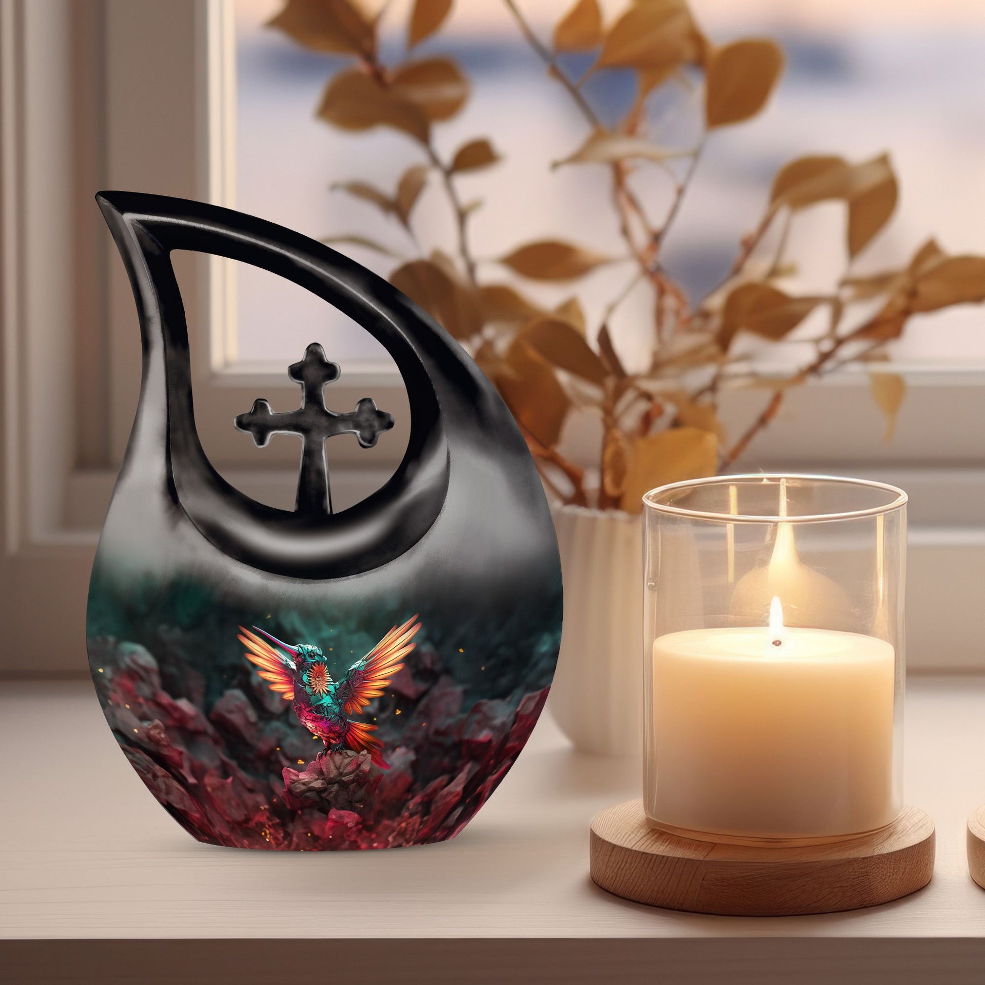 With its symbolic hummingbird design, this large urn for human ashes brings comfort, reminding families that love continues to soar beyond physical presence. Perfect for creating a serene remembrance space, it helps keep cherished memories close while maintaining a dignified and heartfelt tribute.