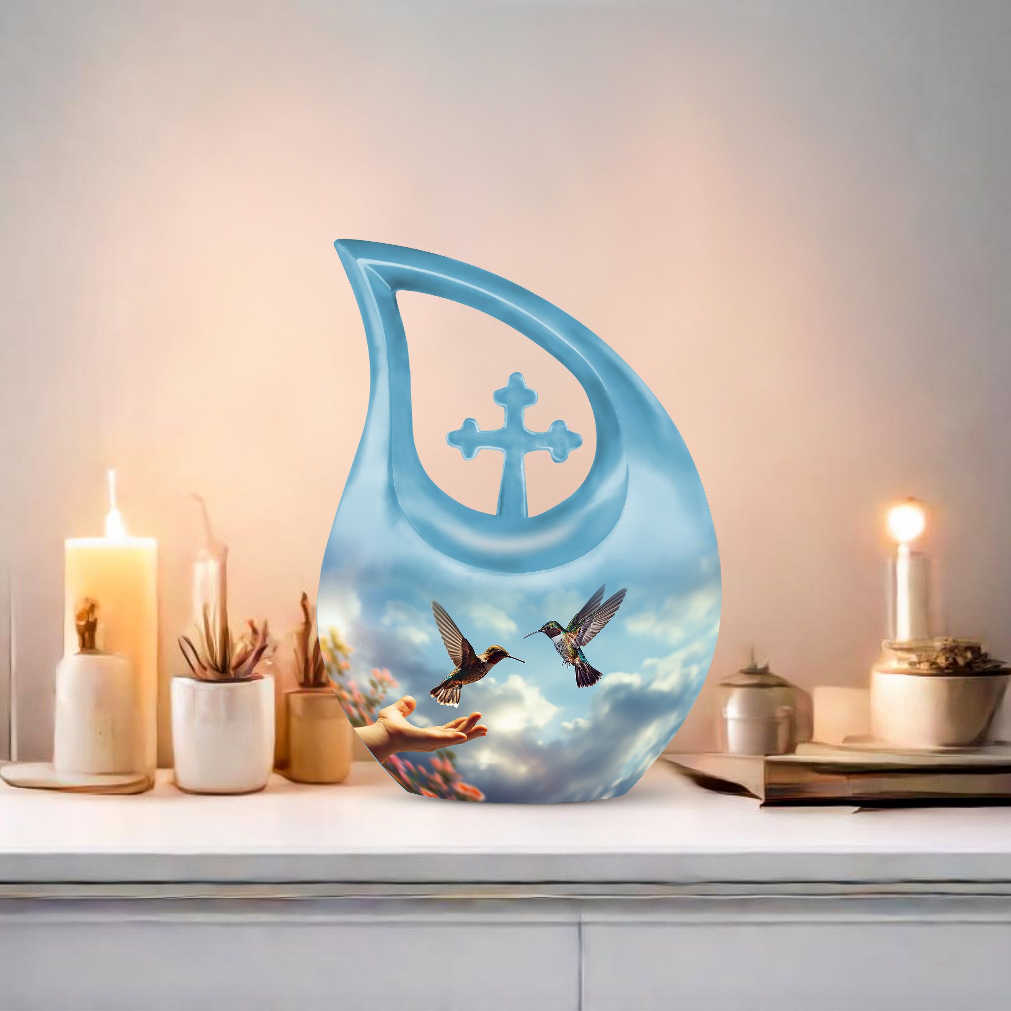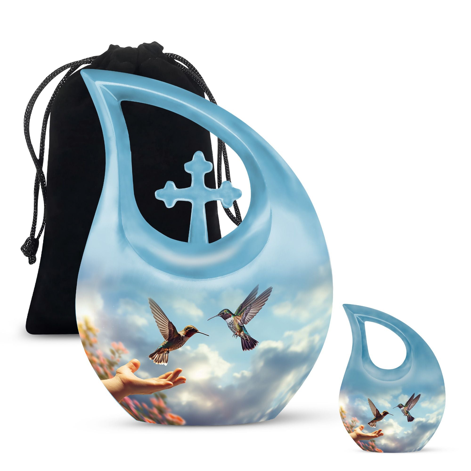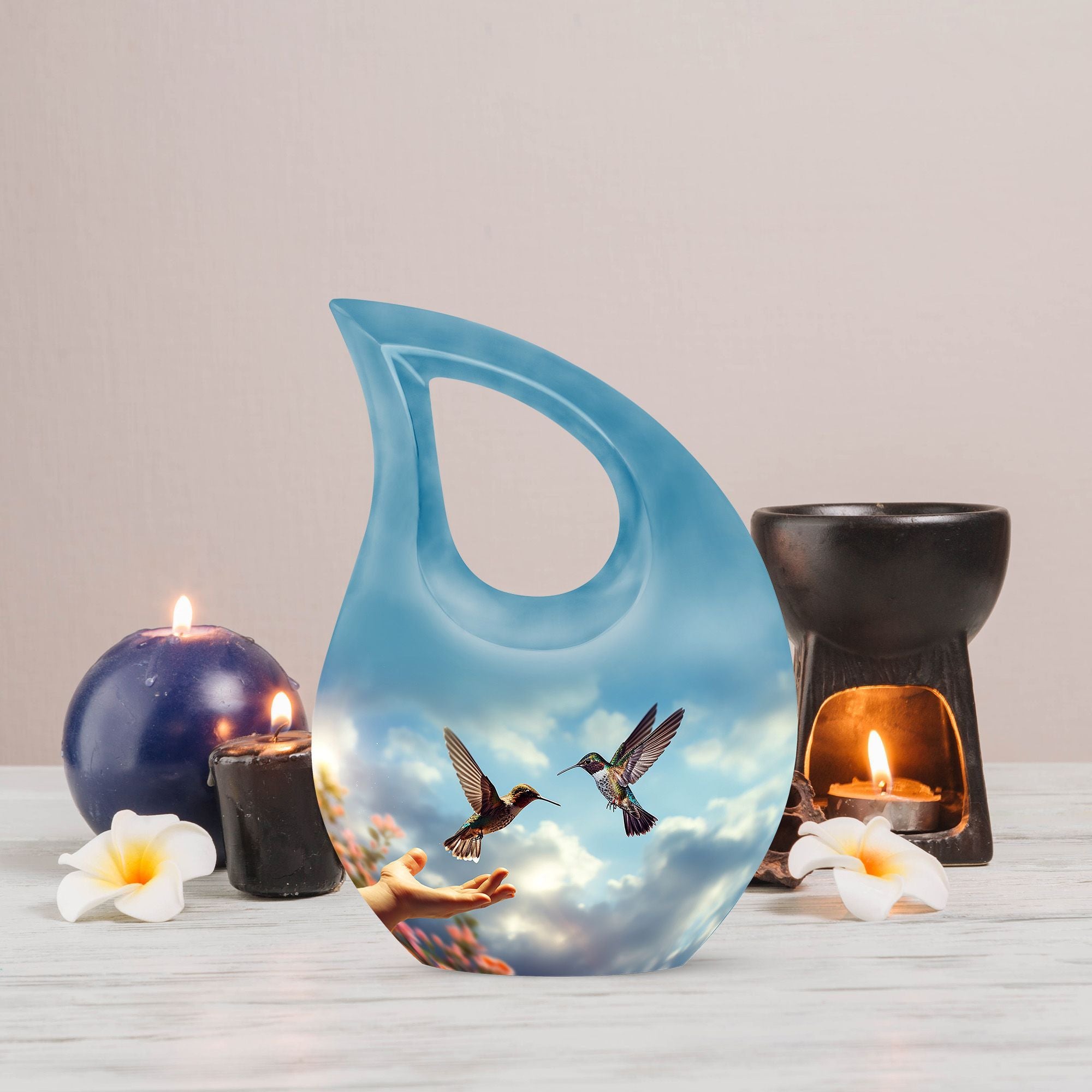 This Hummingbird Memorial Urn offers a peaceful and uplifting way to honor a loved one, symbolizing freedom, grace, and enduring love. Designed for both men and women, it provides a heartfelt tribute for families seeking small cremation urns, meaningful cremation ashes keepsakes, or a beautiful memorial to keep close.