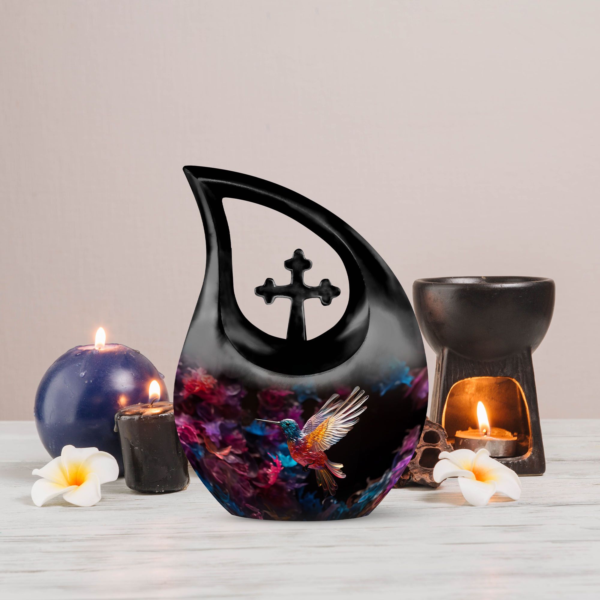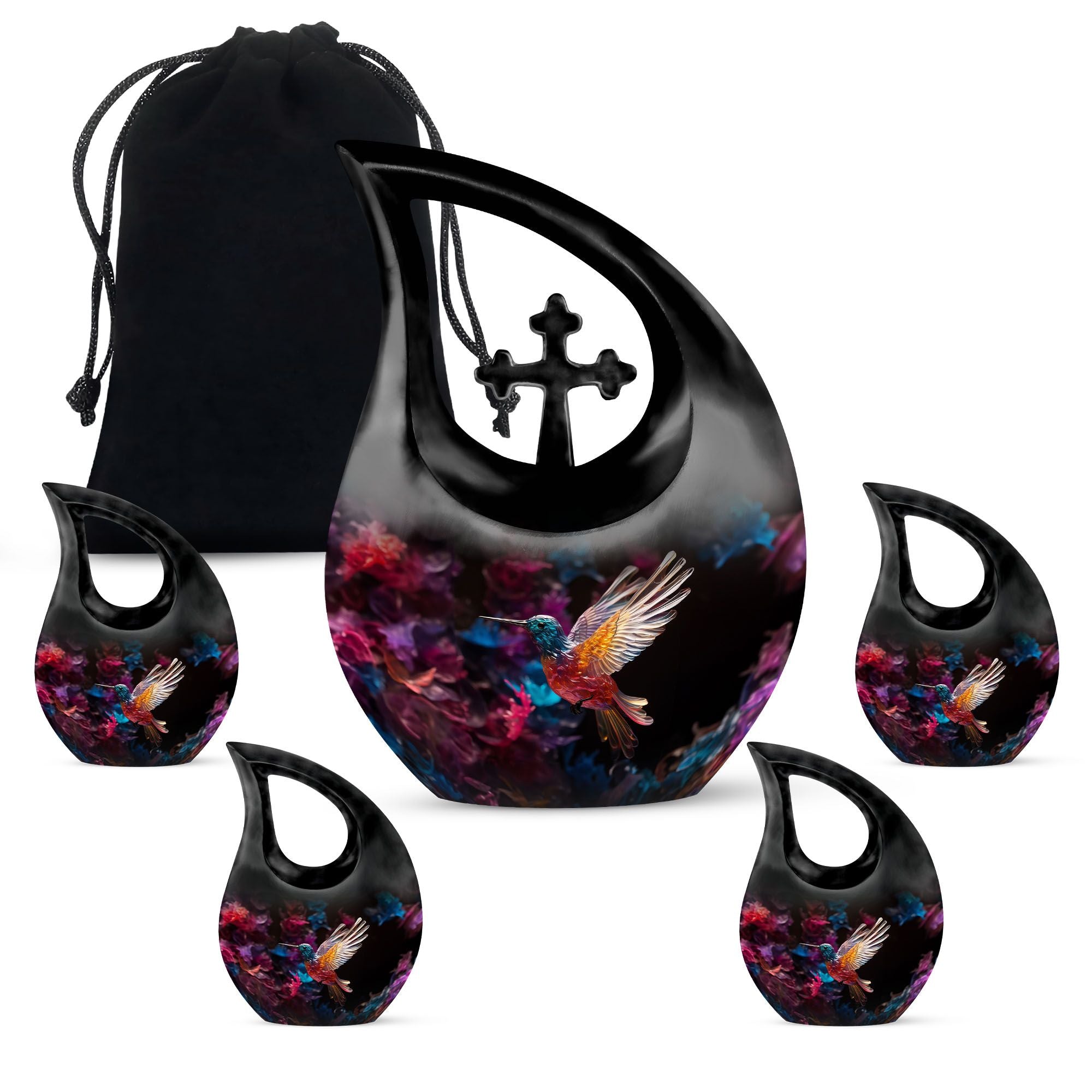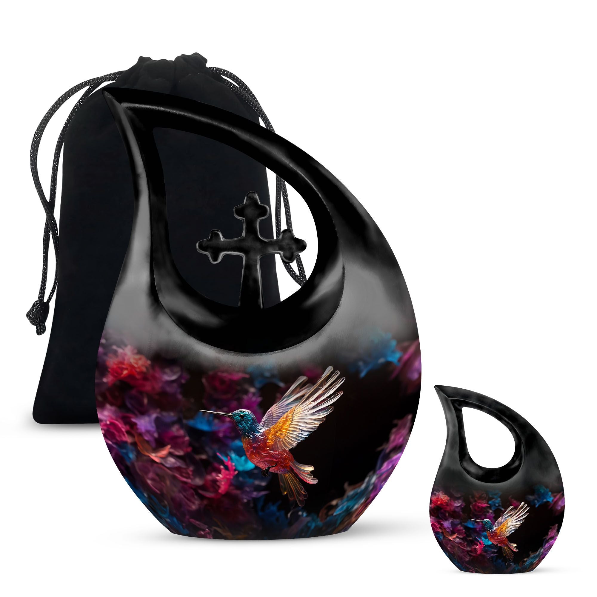 Expertly handcrafted from premium aluminium, this large decorative urn features a shimmering crystal-inlaid hummingbird surrounded by soft floral accents on a serene background. The polished finish enhances its brilliance, while the secure screw-top lid ensures ashes are safely preserved. Designed for both men and women, it’s a timeless choice among urns for cremation ashes female and urns for adult female mom collections.