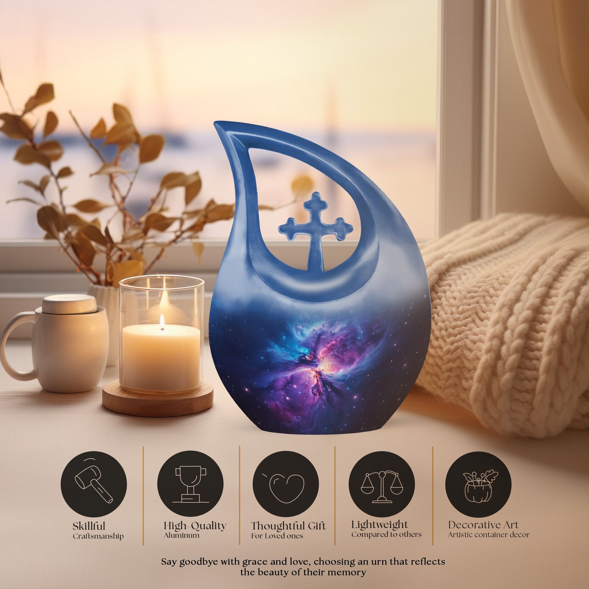 A symbol of eternity, light, and everlasting love, this Galaxy Memorial Urn offers a peaceful resting place for men and women. Its radiant cosmic design makes it meaningful for families seeking Cremation Urns, a beautiful Cremation Urn Human Ashes, or coordinated large and small urn options for shared remembrance.