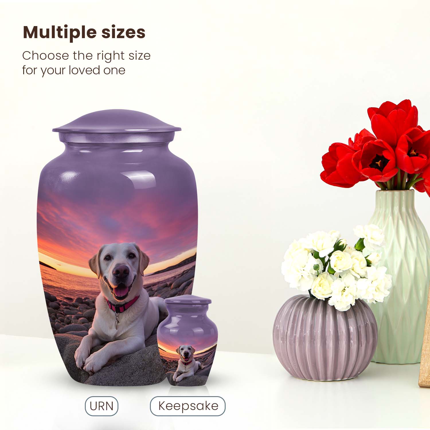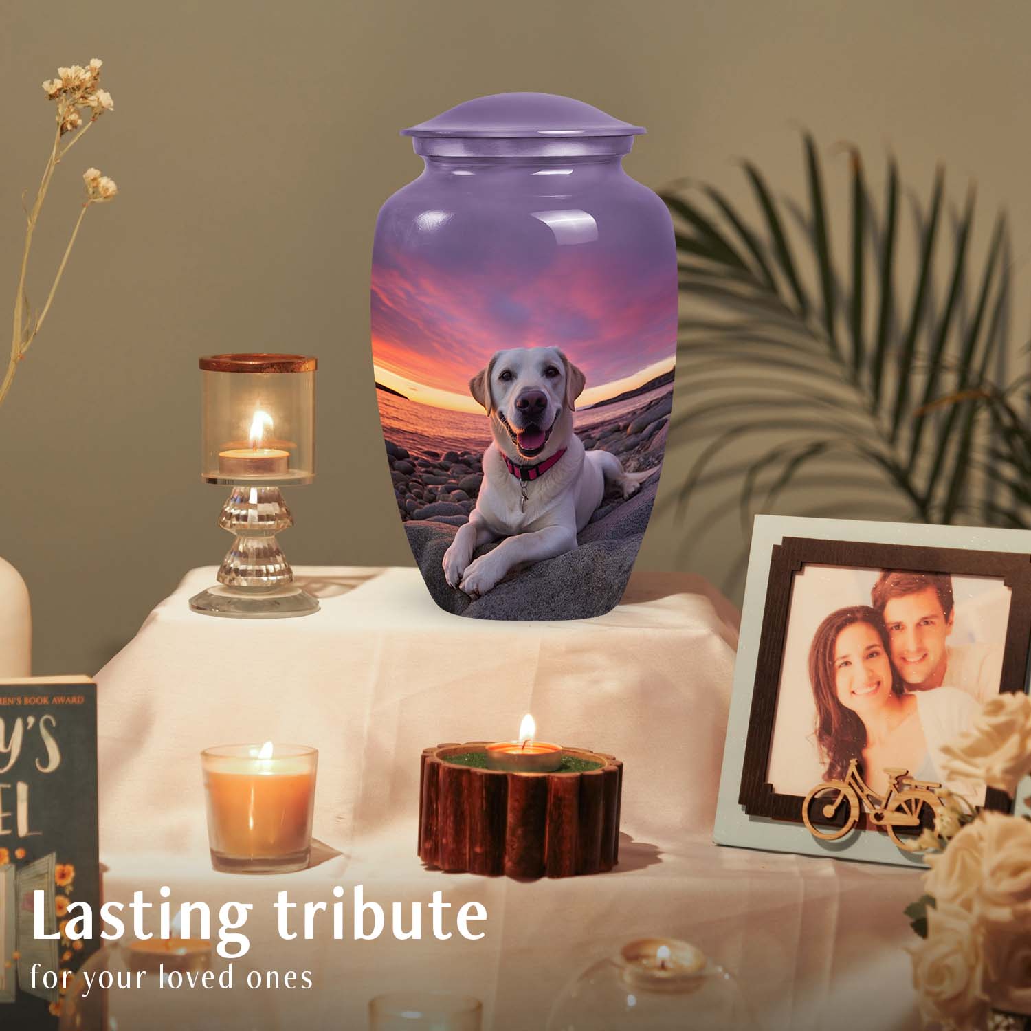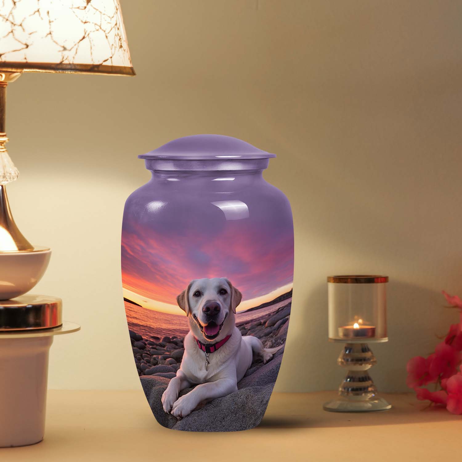 Your Labrador’s loyalty and love will forever warm your heart like the glow of a sunset. This Labrador Dog Sunset Memorial Urn – Large Pet Cremation Urn for Ashes captures that beautiful emotion, offering a dignified and serene resting place for your cherished friend. Thoughtfully designed as a Custom Pet Urn, it embodies both artistry and remembrance—an elegant tribute to a life well loved.