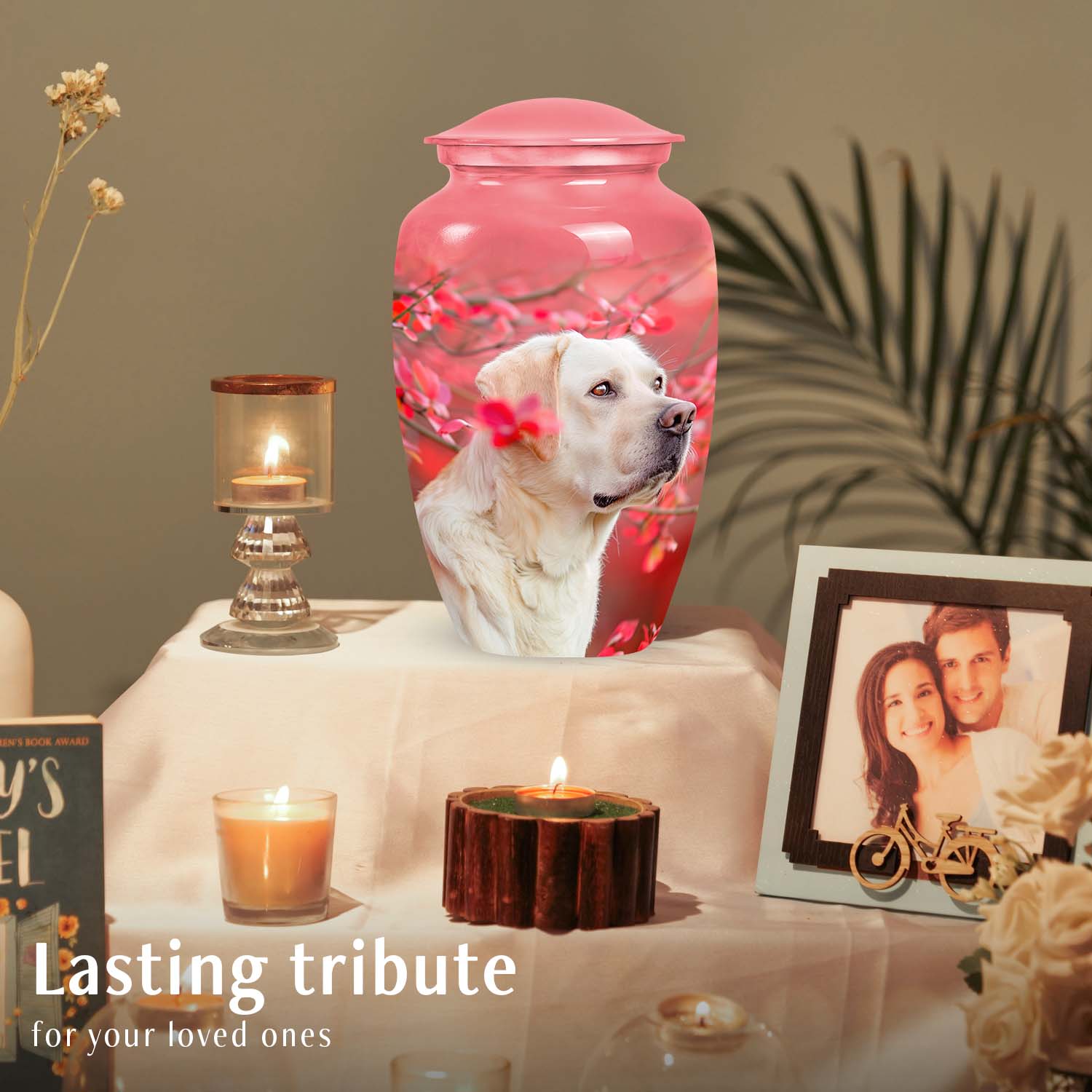 The love of a Labrador is as gentle and enduring as a blooming flower. This Pet Memorial Urn with Pink Floral Design – Labrador Dog Pet Cremation Urn captures that feeling of warmth and devotion, offering a comforting way to remember your cherished companion. Designed with care, it stands among the Best Pet Urns, blending beauty, meaning, and quality craftsmanship into one timeless tribute.