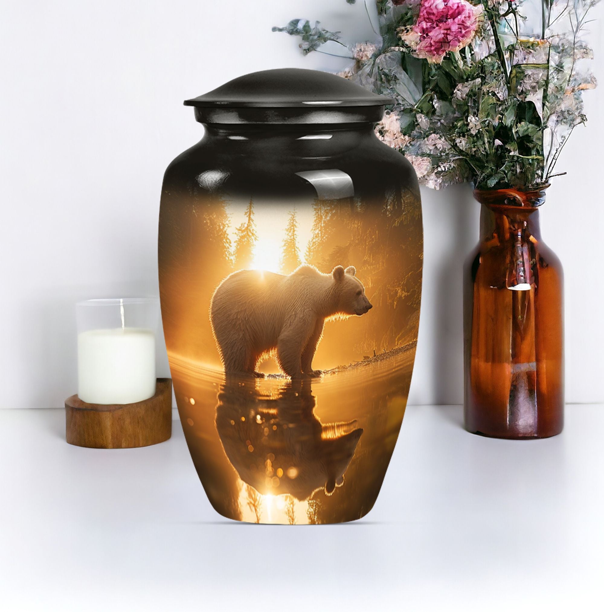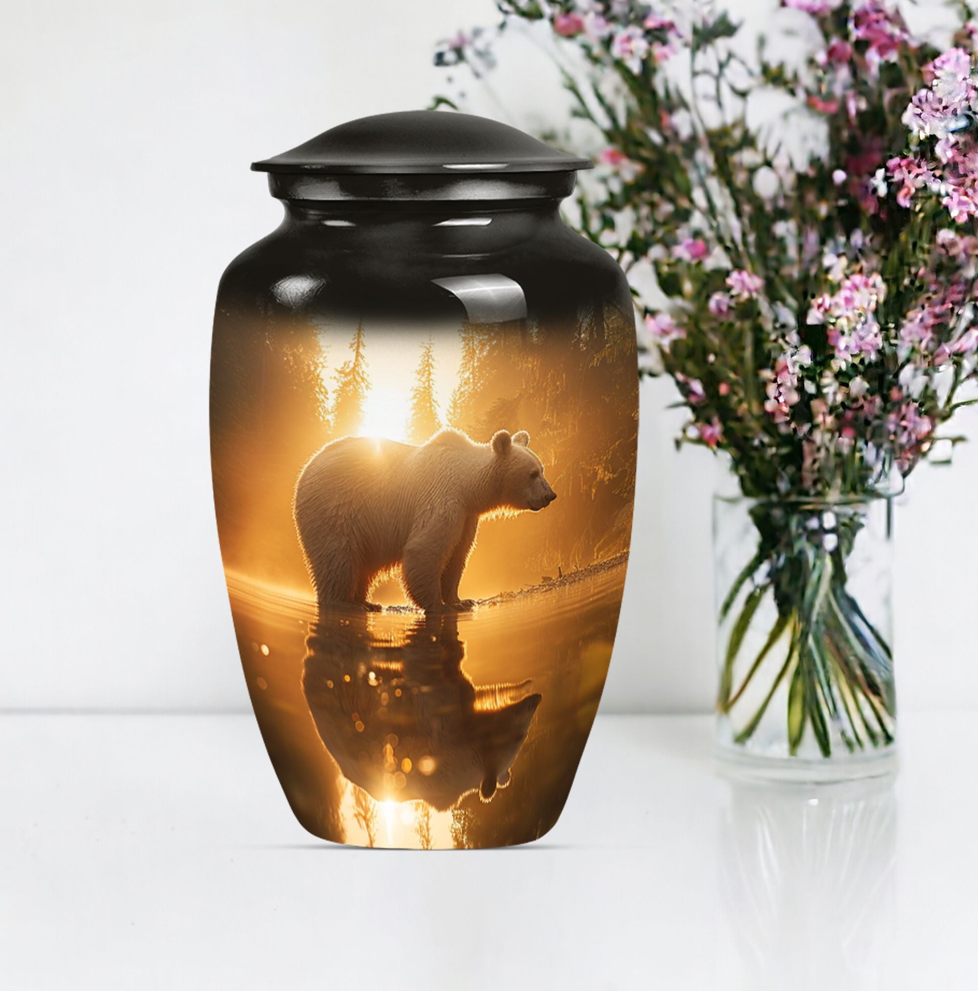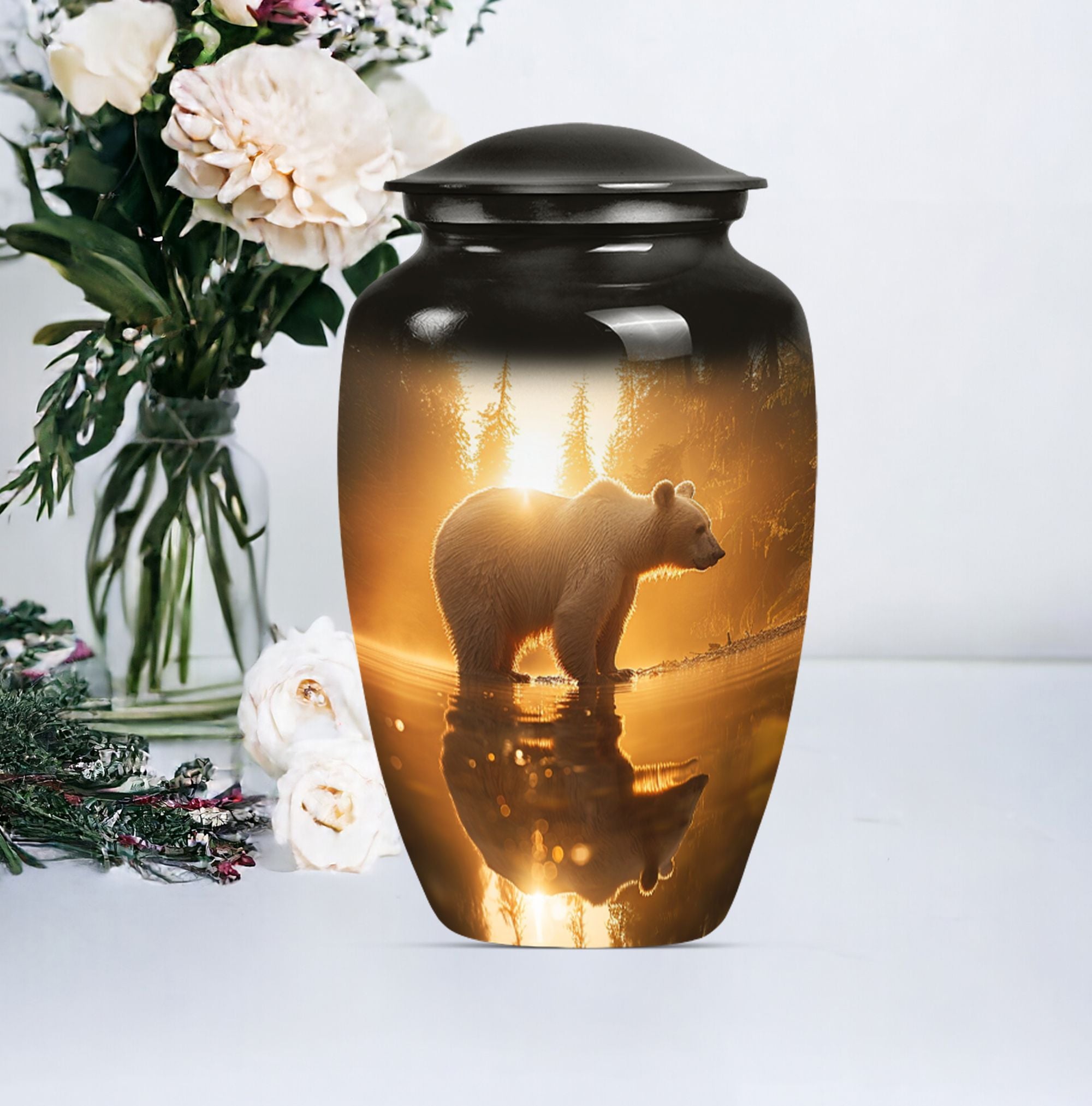 Provide a comforting homage to your dearly departed with our bear urn, a loving receptacle for cremated remains. Precisely 10 inches in height, this funeral urn can contain up to 200 cubic inches of ashes, making it suitable for adult human ashes. Crafted to perfection, this sturdy and lightweight urn weighs just 3.3 pounds. The aluminium construction ensures robustness and durability, adding a timeless quality to this cherished keepsake. The urn also presents the option for personal engravings, allowing you to inscribe loved ones' names, making it an even more special and personalized tribute. The package also includes a velvet pouch, providing a dignified containment for the ashes. The butterfly theme adds a layer of hope and revival, comforting the bereaved with thoughts of life's cyclical nature. This urn is an excellent choice for those seeking inventive modern urns for human ashes. Celebrate the eternal bond with your loved ones with this classic, large urn, embodying the highest standards of refinement and warmth.