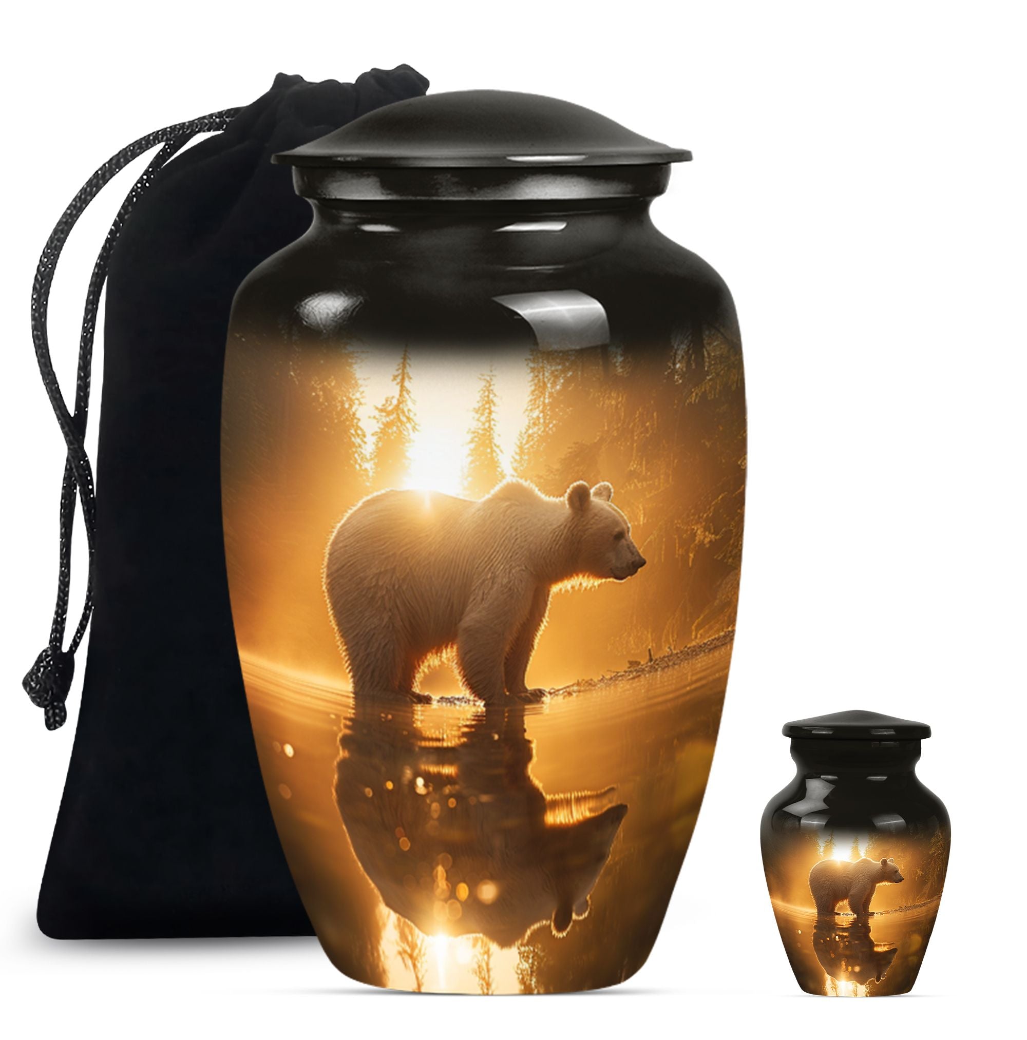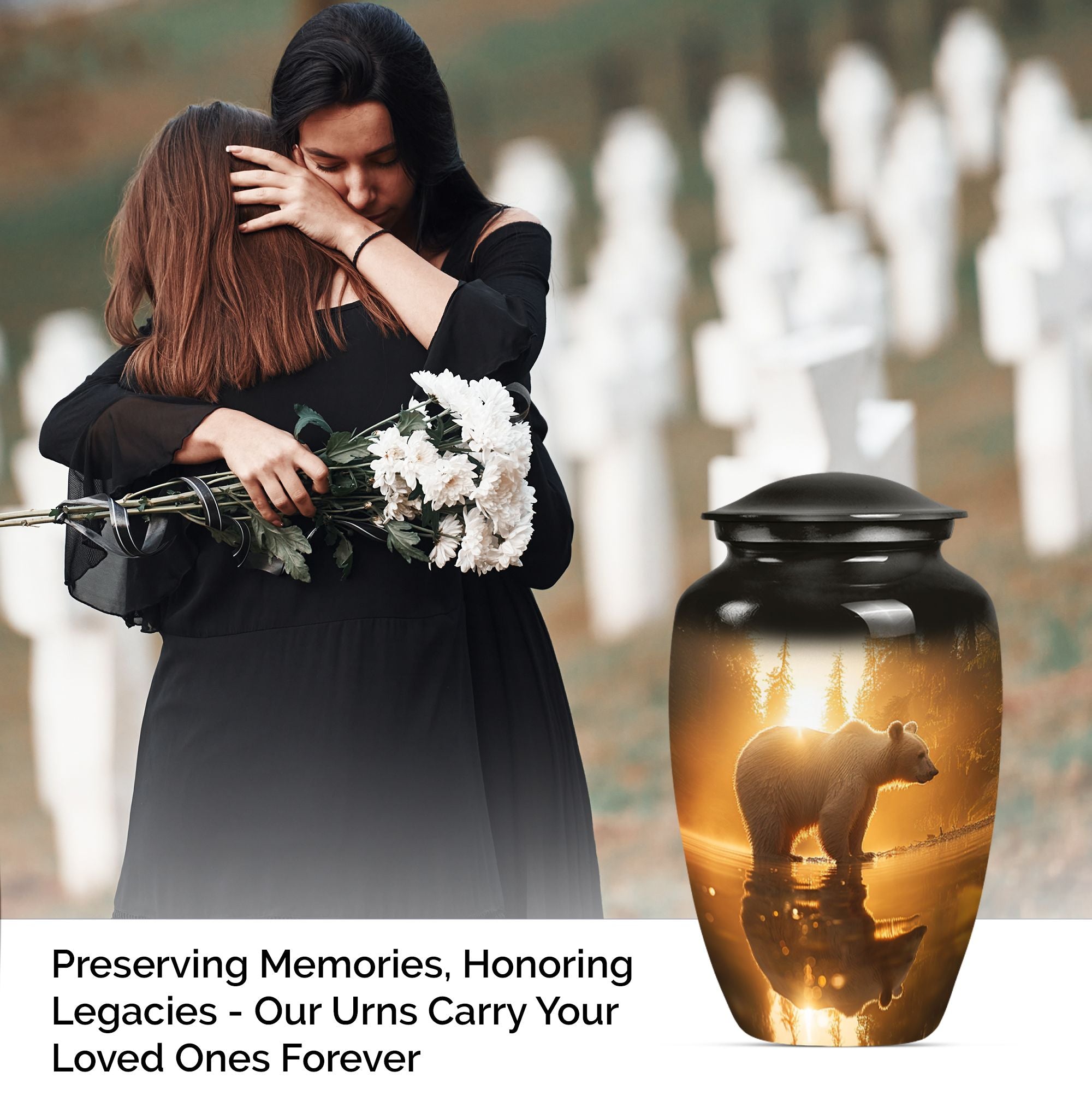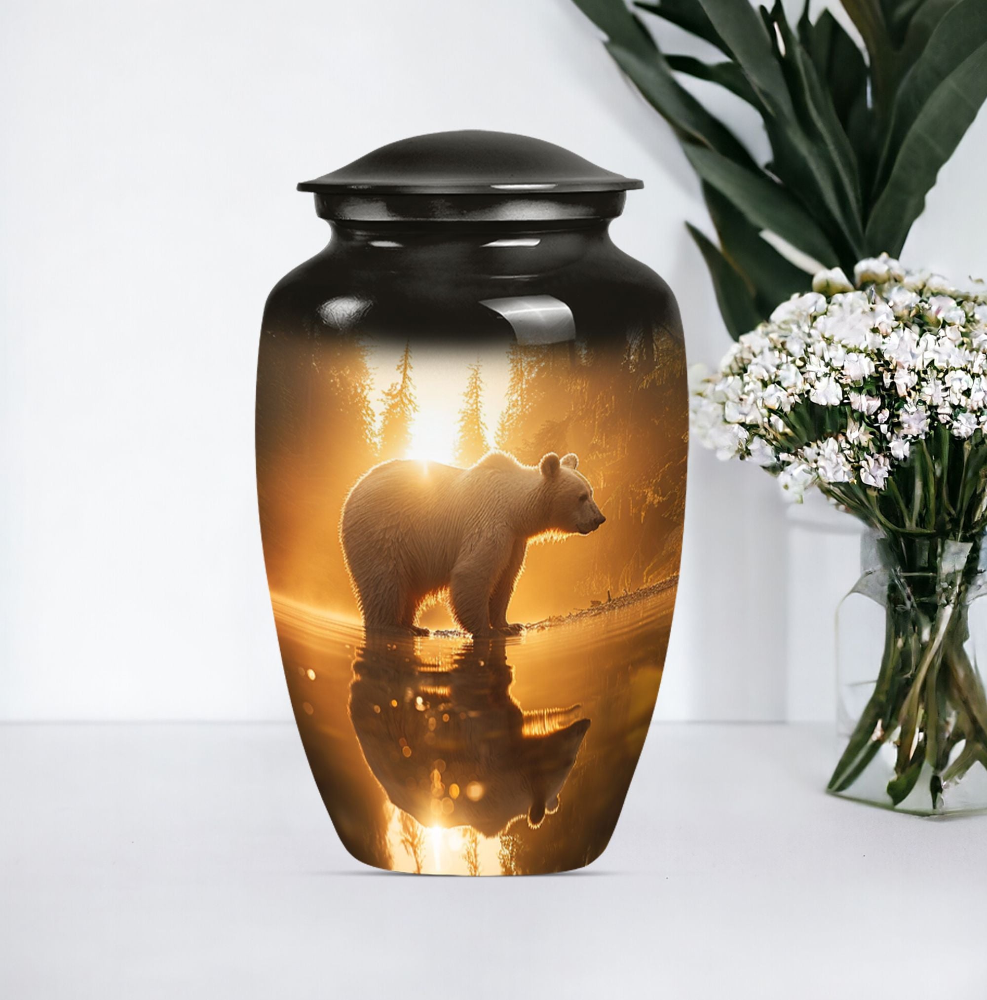 Provide a comforting homage to your dearly departed with our bear urn, a loving receptacle for cremated remains. Precisely 10 inches in height, this funeral urn can contain up to 200 cubic inches of ashes, making it suitable for adult human ashes. Crafted to perfection, this sturdy and lightweight urn weighs just 3.3 pounds. The aluminium construction ensures robustness and durability, adding a timeless quality to this cherished keepsake. The urn also presents the option for personal engravings, allowing you to inscribe loved ones' names, making it an even more special and personalized tribute. The package also includes a velvet pouch, providing a dignified containment for the ashes. The butterfly theme adds a layer of hope and revival, comforting the bereaved with thoughts of life's cyclical nature. This urn is an excellent choice for those seeking inventive modern urns for human ashes. Celebrate the eternal bond with your loved ones with this classic, large urn, embodying the highest standards of refinement and warmth.