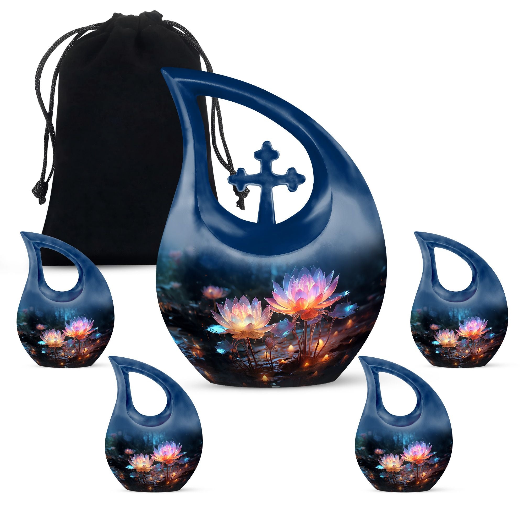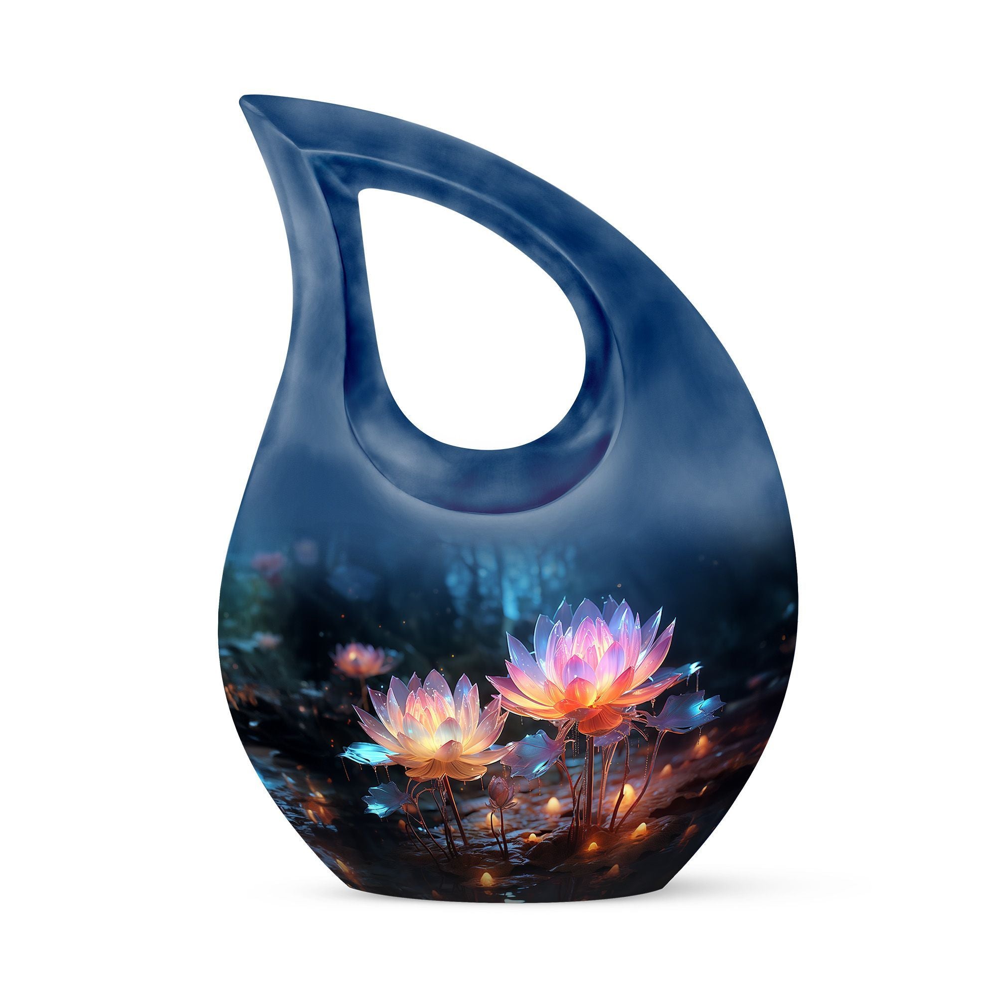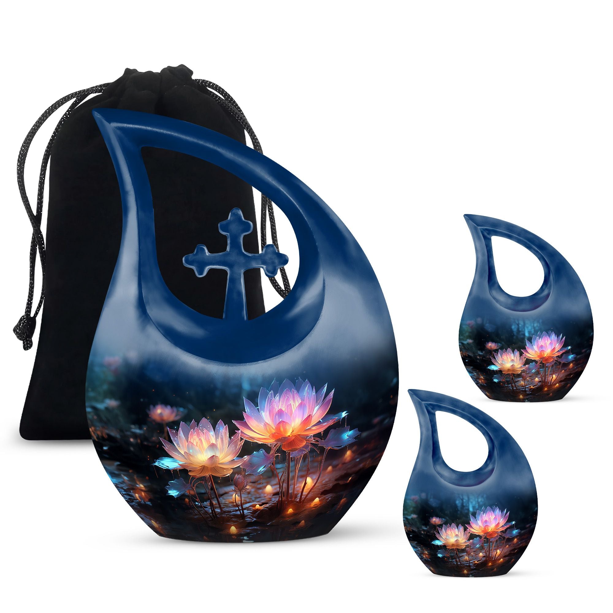Celebrate a life of love, light, and faith with our Blue Teardrop Cremation Urn for Human Ashes, adorned with a Glowing Lotus Flower and Cross design. This graceful urn embodies peace and rebirth — the lotus symbolizing purity and the cross reflecting eternal faith. Perfect as a large urn for ashes adult male or a radiant memorial for women, it offers a deeply meaningful way to honor a cherished soul.