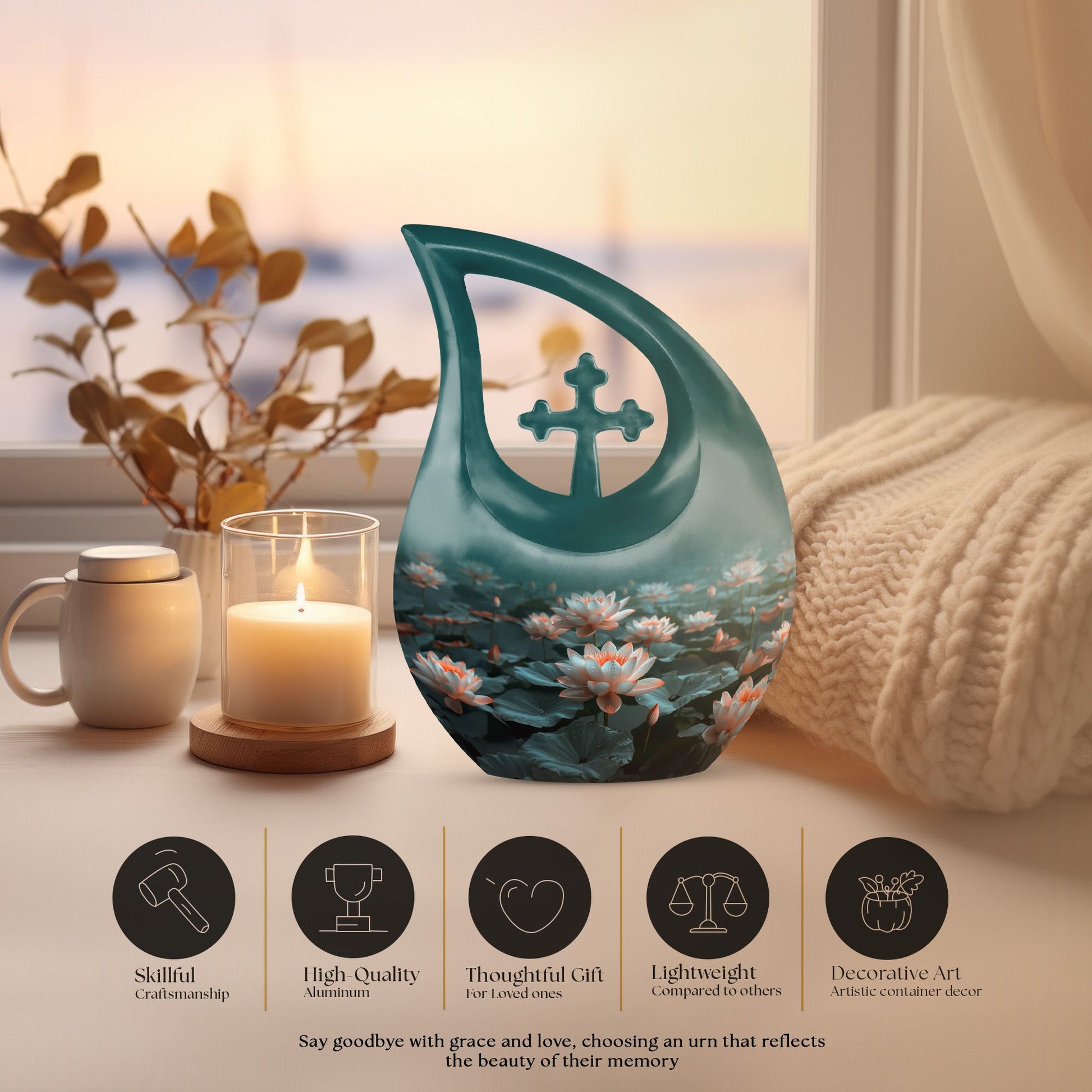 This Lotus Funeral Urn offers a serene and heartfelt way to honor a cherished life. Designed for families seeking an Urn For Men & Women or Funeral Urns For Women, it provides a peaceful resting place adorned with a symbolic lotus inspired by purity, renewal, and eternal love.