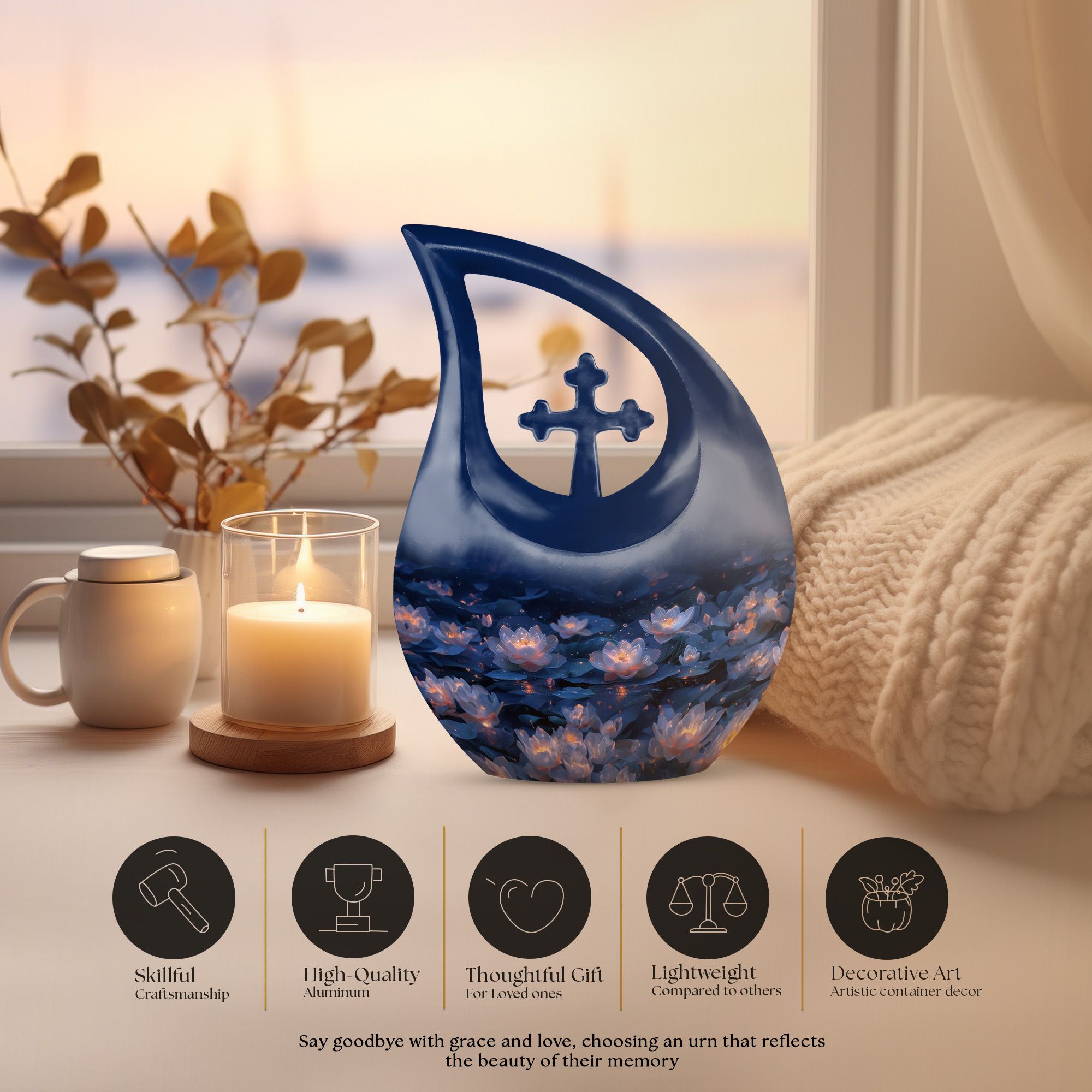 The Lotus Cremation Urn symbolizes purity, peace, and spiritual renewal—offering a tender and uplifting way to honor a cherished life. Designed to bring comfort and serenity, it is ideal for families seeking a human cremation urn, a personalized tribute, or meaningful cremation ashes keepsake options that celebrate everlasting love.