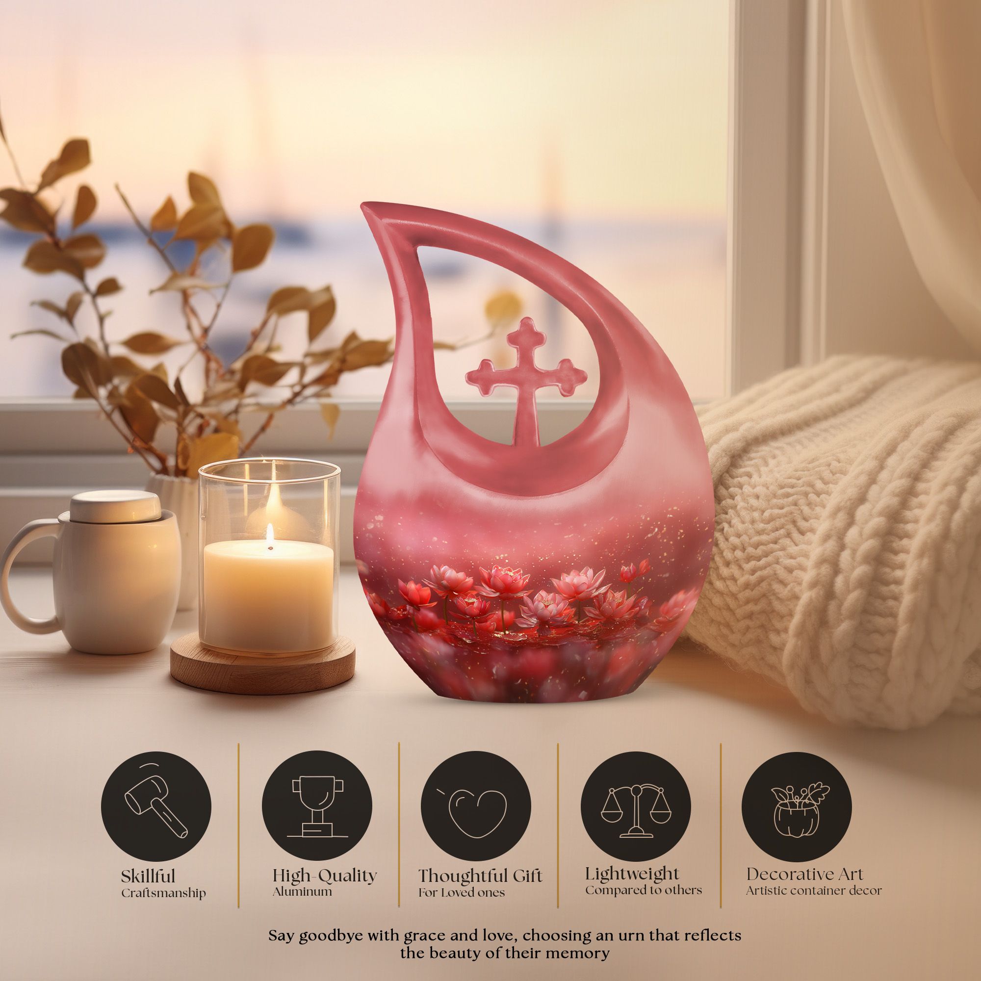 This Lotus Memorial Urn provides a peaceful and heartfelt way to honor a cherished life. Perfect for families seeking a Large Urn For Adult Ashes or a gentle tribute for mothers and loved ones, its lotus design symbolizes purity, renewal, and everlasting love. Whether chosen as a Large Human Urn or Urn Mom Ashes Large, it offers a comforting presence in any memorial space.