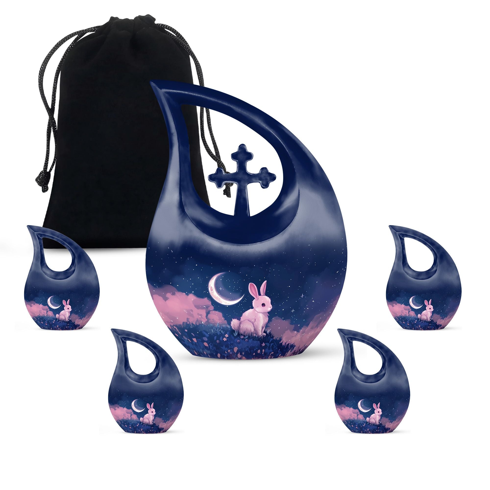 Unveil the enigmatic allure of the cross drop 'Lunar Blossom Watch Urn,' a burial-ready vessel built for enduring respect and remembrance. Crafted from sturdy, high-grade aluminium, this 10-inch large urn manifests resilience and significance making it an ideal choice for a commemorative ceremony. It weighs a modest 3.3 pounds, indicating its reliability in safekeeping your cherished one's memory. Its accommodating capacity of 200 cubic inches ensures sufficient room for containment of ashes and other sentimental keepsakes. The urn comes impeccably packaged in a plush velvet pouch adding an extra layer of protection and reverence. For an intimate touch, you have the option to personalize the urn with engraved names, ensuring continuity of their memory etched in perpetuity. Our 'Lunar Blossom Watch Urn' combines commemoratory purpose with an artful theme, creating an unparalleled symbol of love and remembrance, ideal for maintaining your cherished one's presence. Aesthetic utility merged with solemn respect, makes our urn a standout in the category of religious urns, memorial urns, and keepsake cremation urns.