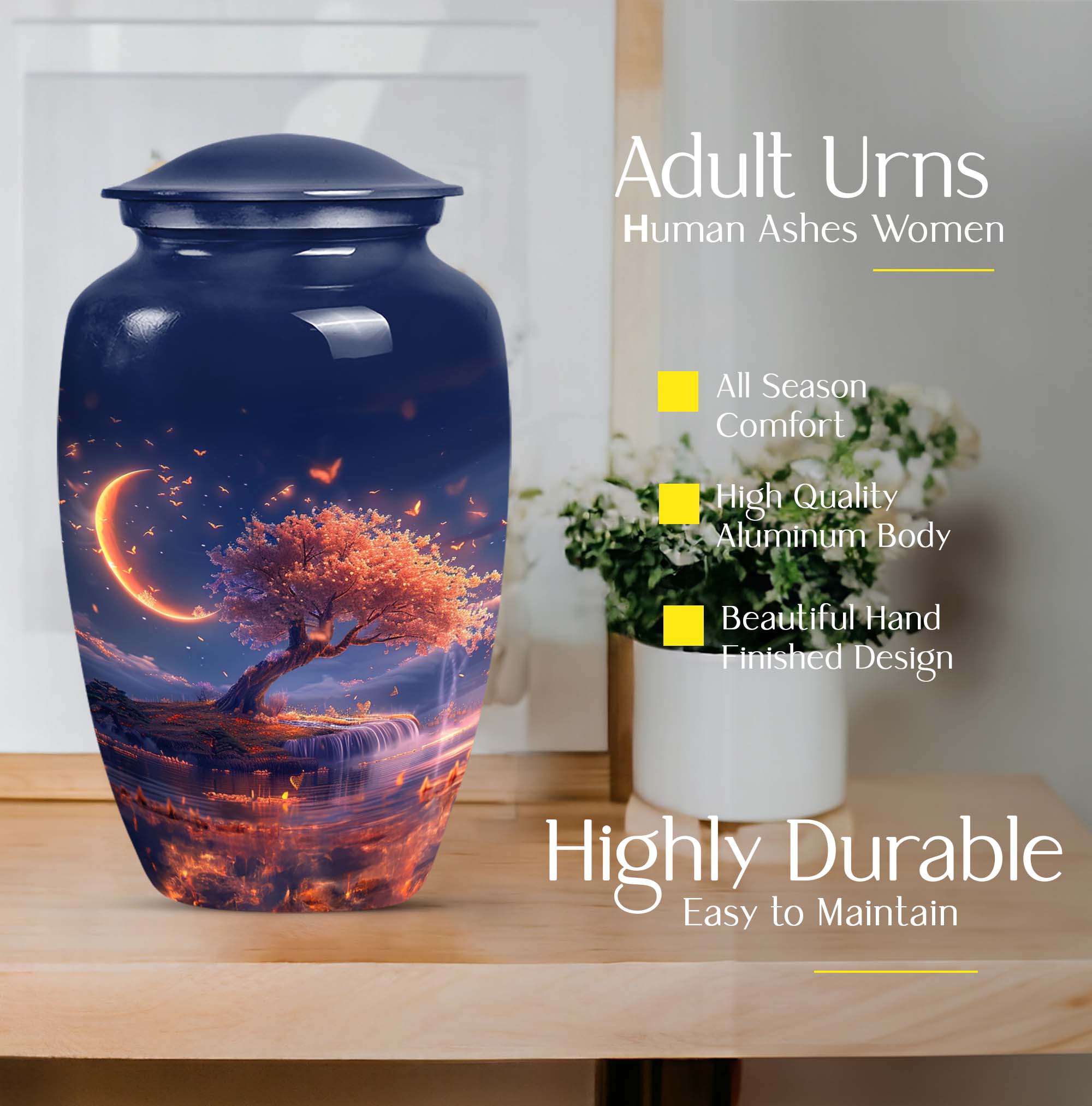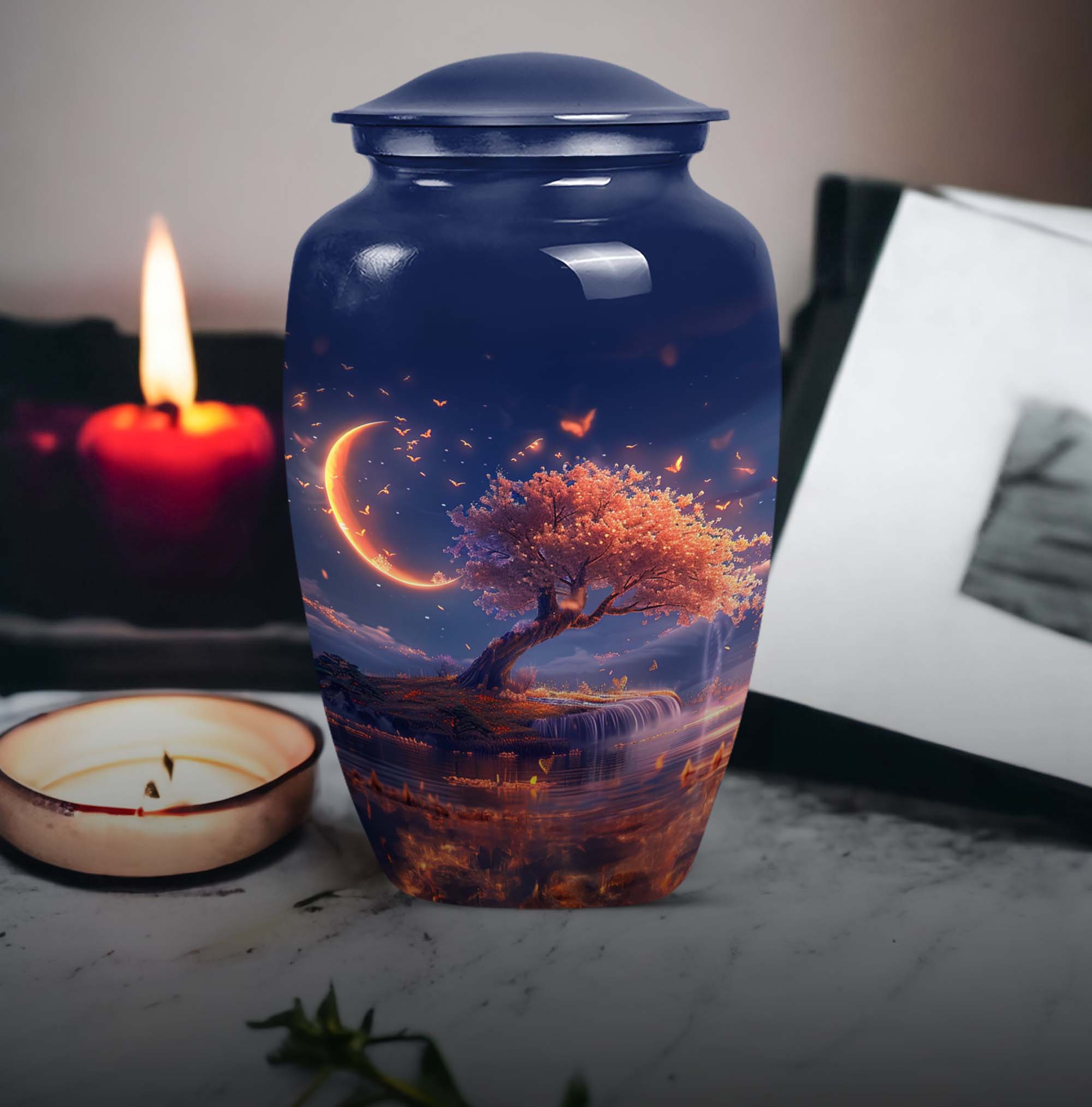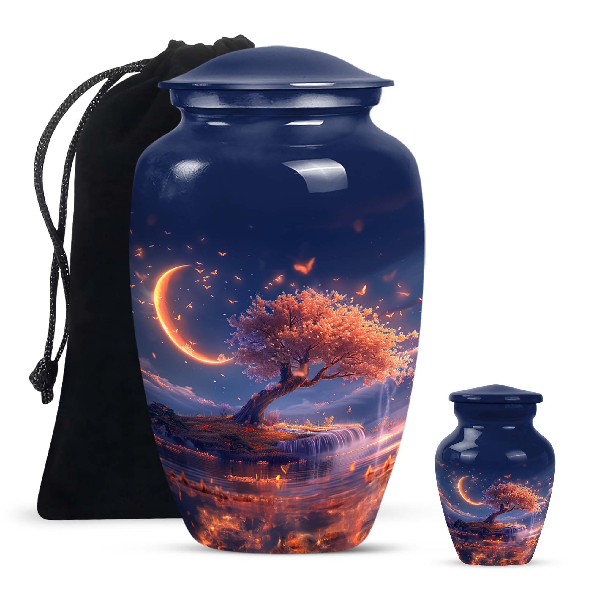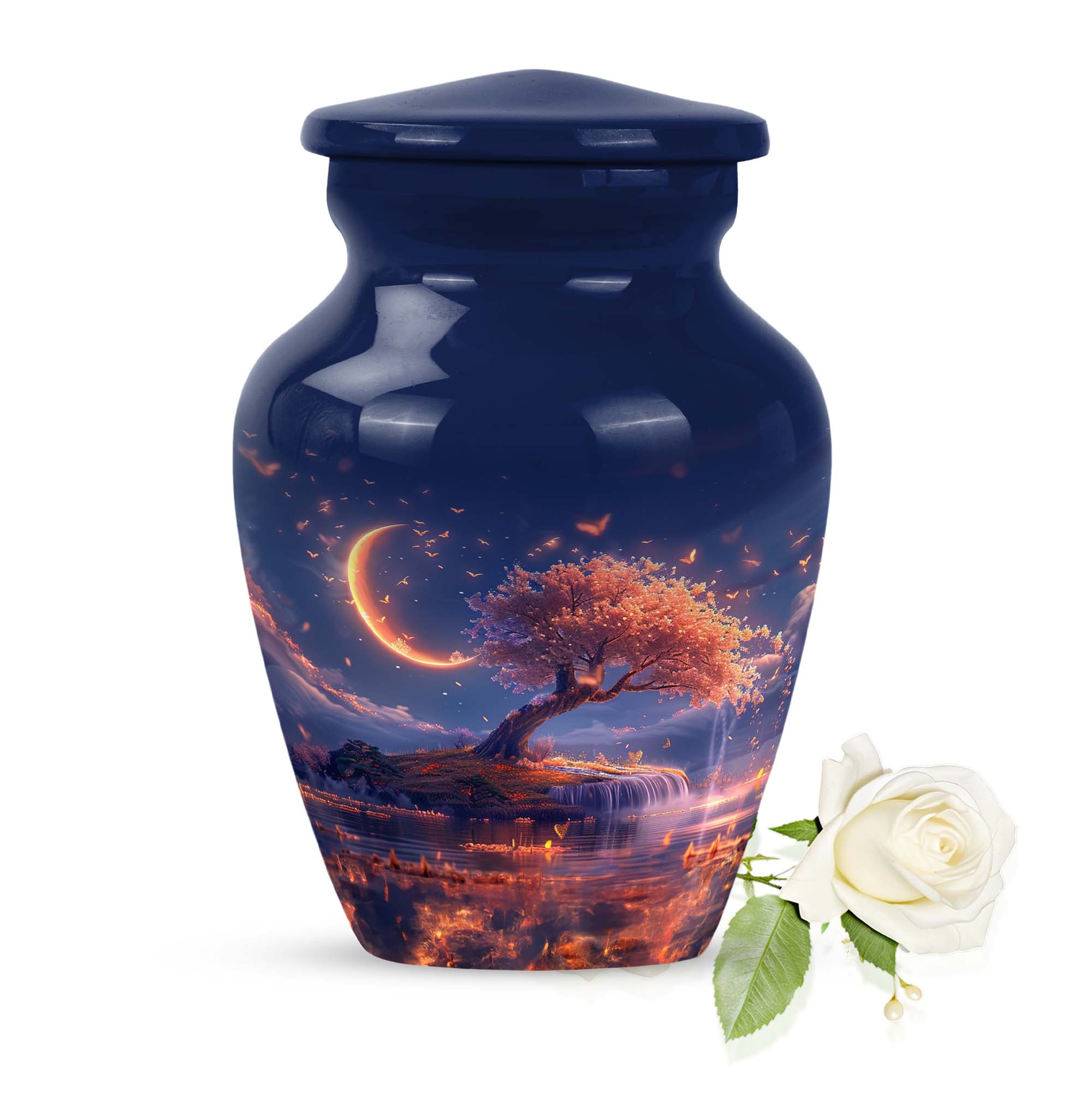Immerse yourself in contemplation and remembrance with the Lunar Urn, a profound piece from our range of memorial urns. Crafted meticulously from robust and enduring aluminium, this large urn stands tall at 10 inches, making it perfect for a dignified resting place of your loved one. It carries an impressive capacity of 200 cubic inches, suited to hold the ashes of adult women and men alike. The urn weighs 3.3 pounds, offering a substantial and poignant symbol of remembrance. With an abstract theme running through it, this classic urn aligns the aesthetics with profound emotion. Each urn additionally comes with a velvet pouch for the containment of ashes, providing an added layer of privacy and respect. One may even elect to imprint a mark of personal significance, as this urn permits customization with engraved names. Intensify your reverence and respect, with this piece from our burials and ceremonies supplies, that connects seamlessly to the profoundness of your emotions.