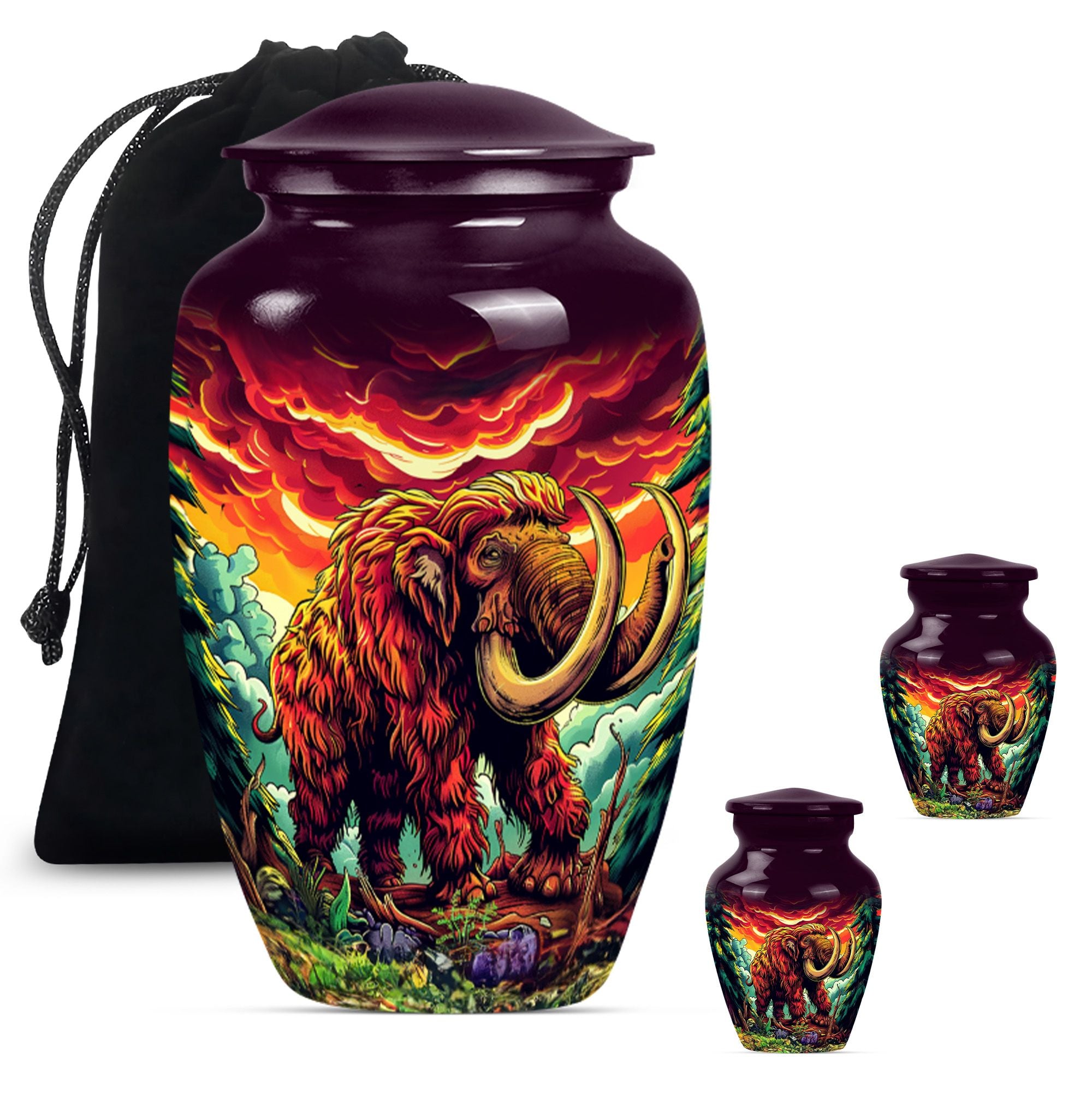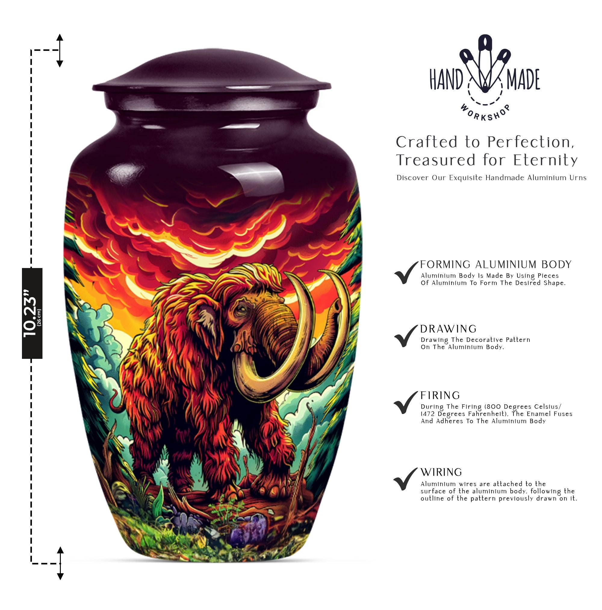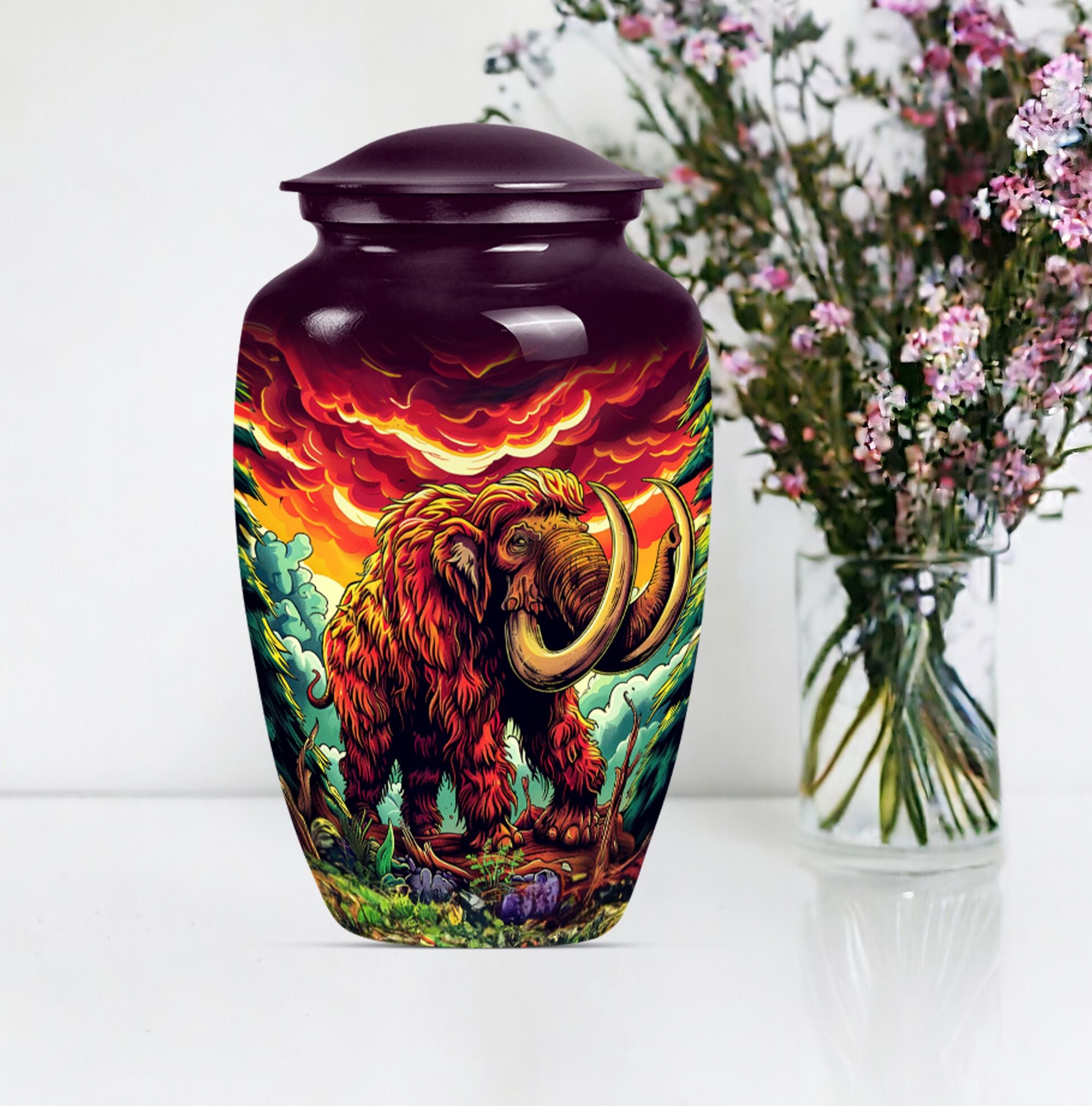 Experience comforting commemoration with our tasteful and elegant 'Mamoth Urn,' a perfect choice in the category of Memorial Ceremony Supplies. Precisely crafted from aluminium, this 10-Inch cremation urn for dad radiates an aura of dignity and tranquillity. Its weight of 3.3 pounds combined with dimensions of 10 inches in height cleverly creates an admirable and grand presence. Further enhancing its characteristics is the capacity of 200 cubic inches, making it suitable for large urn requirements. Drawing a perfect balance between tribute and aesthetic, the urn captures natural beauty with a theme inspired by flowers. Adding a touch of personalization, our urns can be engraved with names, encapsulating memories uniquely. The product arrives snugly packed in a velvet pouch, ensuring secure containment of the cherished ashes. One can also find valuable attributes in 'Burial urns for adult men ashes', 'human urns', 'affordable urns', and 'large urn iridescent metal'. Reflect your sincere sentiments with this delicately designed cremation urn that harmoniously combines functionality and elegance. Honor your loved ones in a profound manner with our Mamoth Cremation Urn.