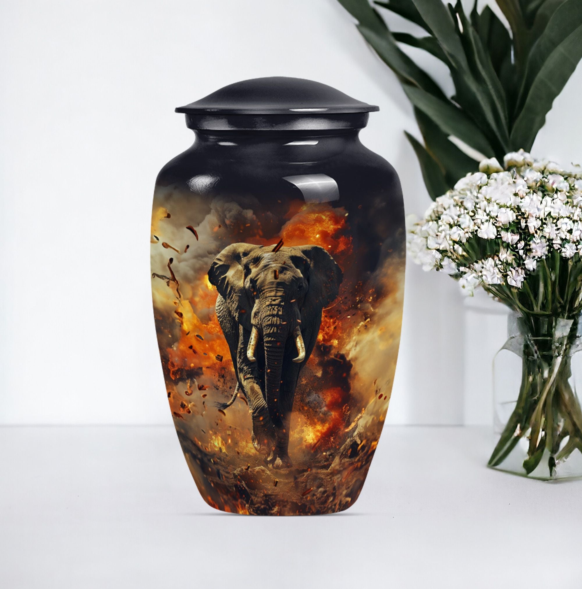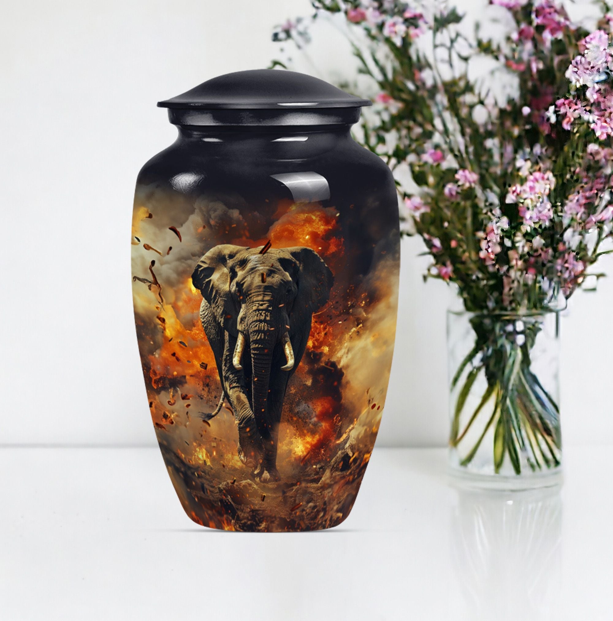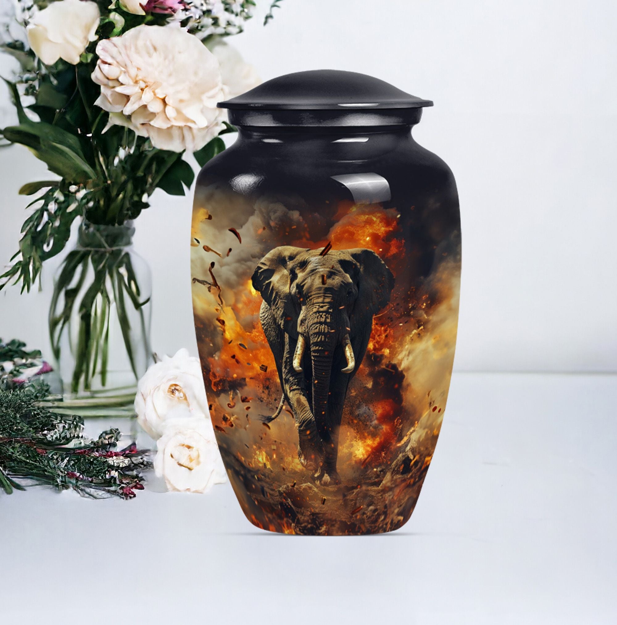 Unveiling our premium Mammoth Urn, specially crafted to serve as a dignified resting place for the treasured ashes of your loved ones. Retaining the essence of traditional style, our large urn is molded with quality aluminium, adding a touch of elegance and durability to it. Sized at 10 inches and with a weight of 3.3 pounds, this modern-day creme creation urn brings an ample capacity of 200 cubic inches, effectively containing adult male human ashes. Its customizable feature lets you personalize it to carry engraved names, making it more than just a keepsake. The cremation urn is also bundled with a velvet pouch, a cozy containment for the ashes. Indulge in the soothing theme of flowers which enhances the aesthetic appeal. Our cremation urn, standing tall in its classic design, serves as a solemn tribute to the departed, effortlessly complementing any burial medium size urns or funeral urns for women. It is not just about bidding farewell. It is about cherishing memories, one urn at a time.