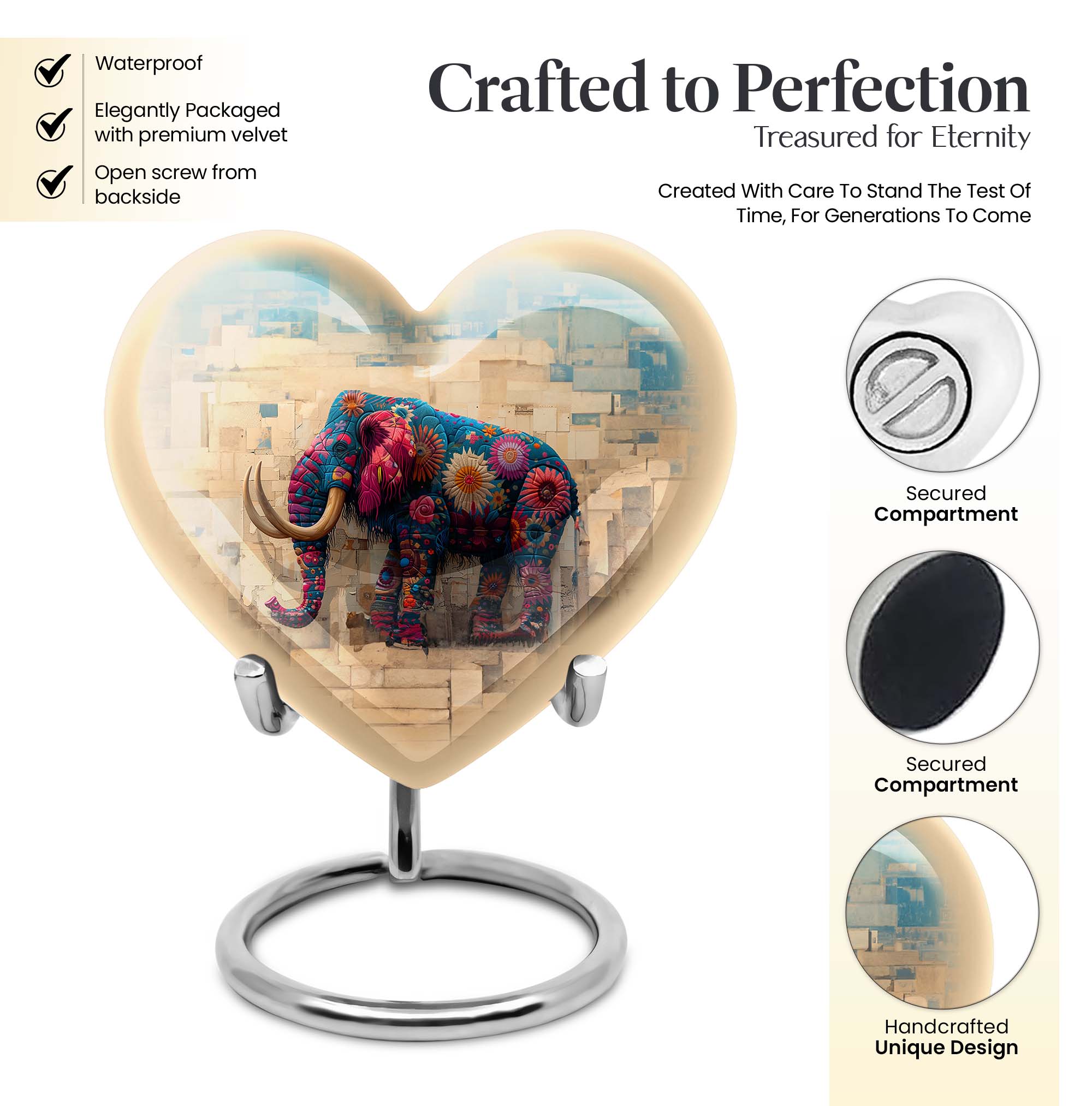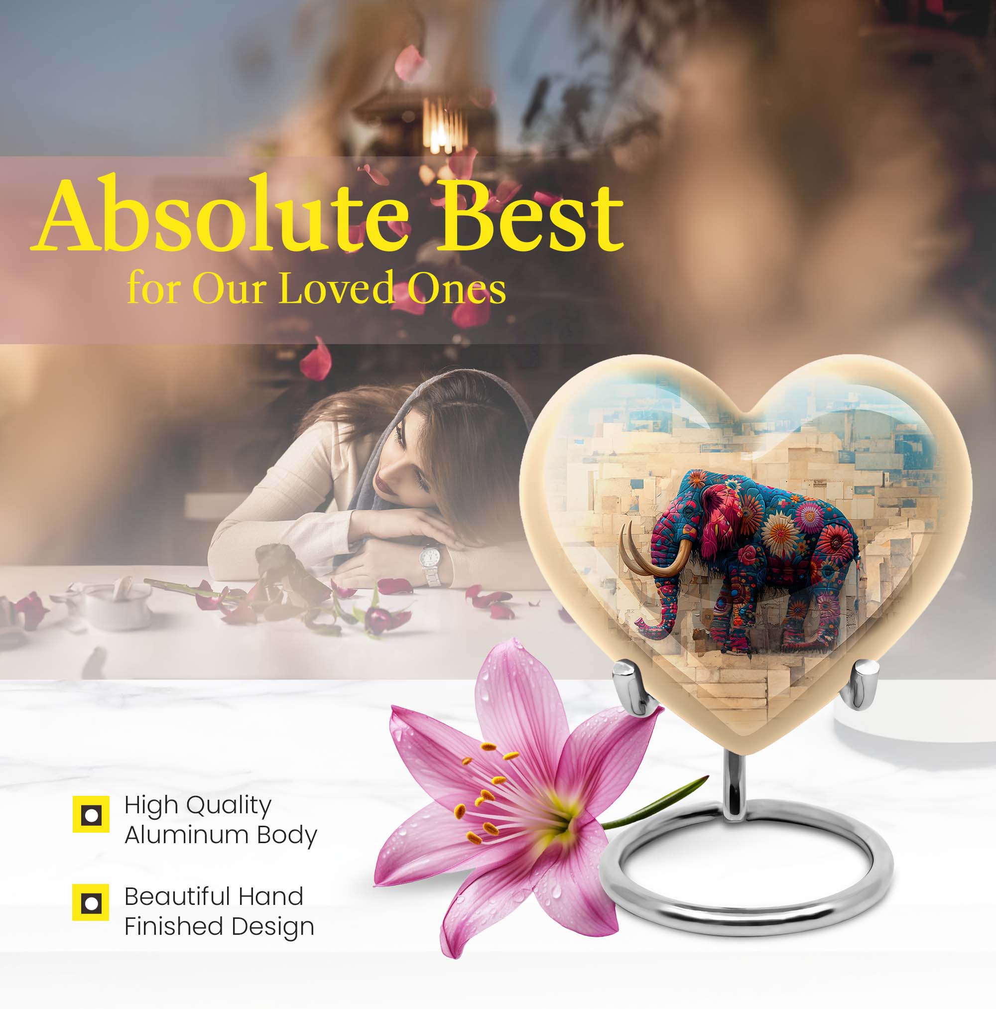 Pay your respects in a dignified and heartfelt way, with our premium-quality, large Wolf Howling themed mammoth urn. Made from robust aluminum, this burial medium-sized urn is perfect to store up to 200 cubic inches of precious remains comfortably. Height measures at a convenient 10 inches and the urn's total weight clocks in at 3.3 pounds, resulting in a substantial yet manageable vessel. Versatile in nature, this cremation urn expands its appeal not just to women, but also suits as ash adult urn for ashes. This Artistic urn uniquely integrates the concept of 'Heart Urn' into its design, providing a tender touch to an otherwise somber object. Metal urns are proven to stand the test of time when buried in the ground, and this particular urn reinforces that reliability. You have the added option to personalize the urn with engraved names on outer surface, fostering a deep connection with your beloved. In addition, a velvet pouch is provided for secure containment of ashes. So, remember your loved ones in your own special way with our high-quality, memorial urns.